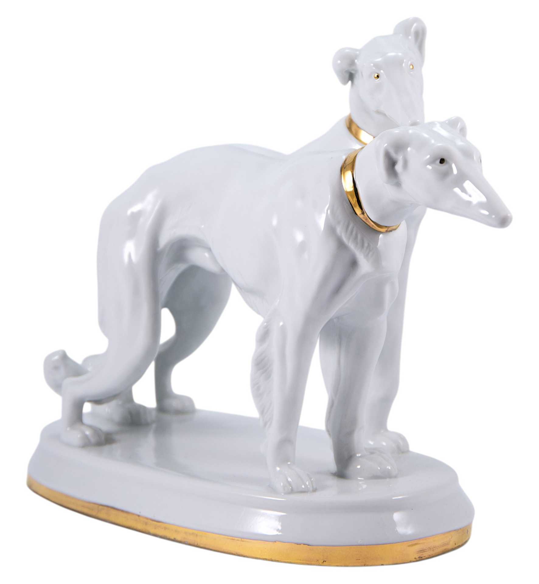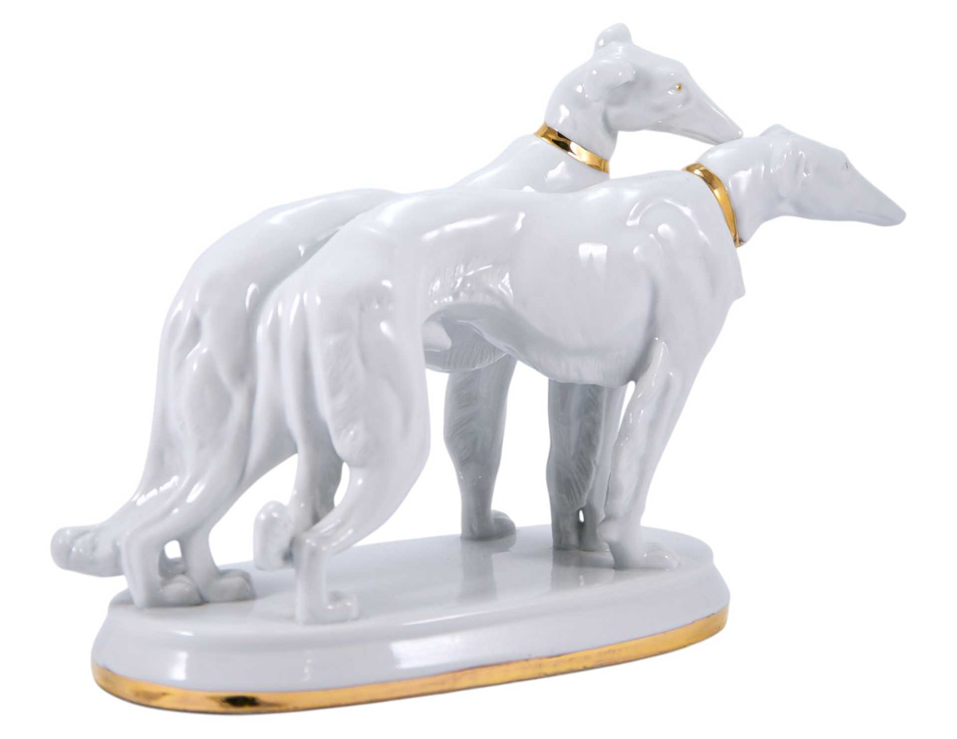Скульптура Борзые фарфор Голдшейдер (Goldscheider) Австрия пер. пол. ХХ в. Н-26 см. Художественное ателье Голдштейдара 1938-1960 гг.(?)