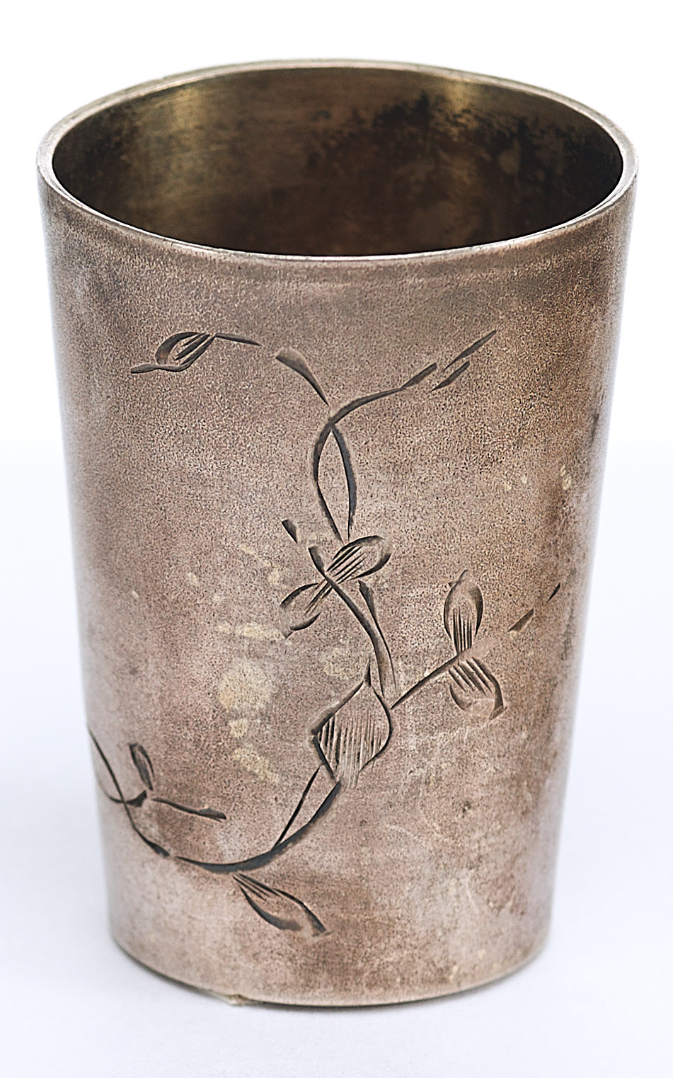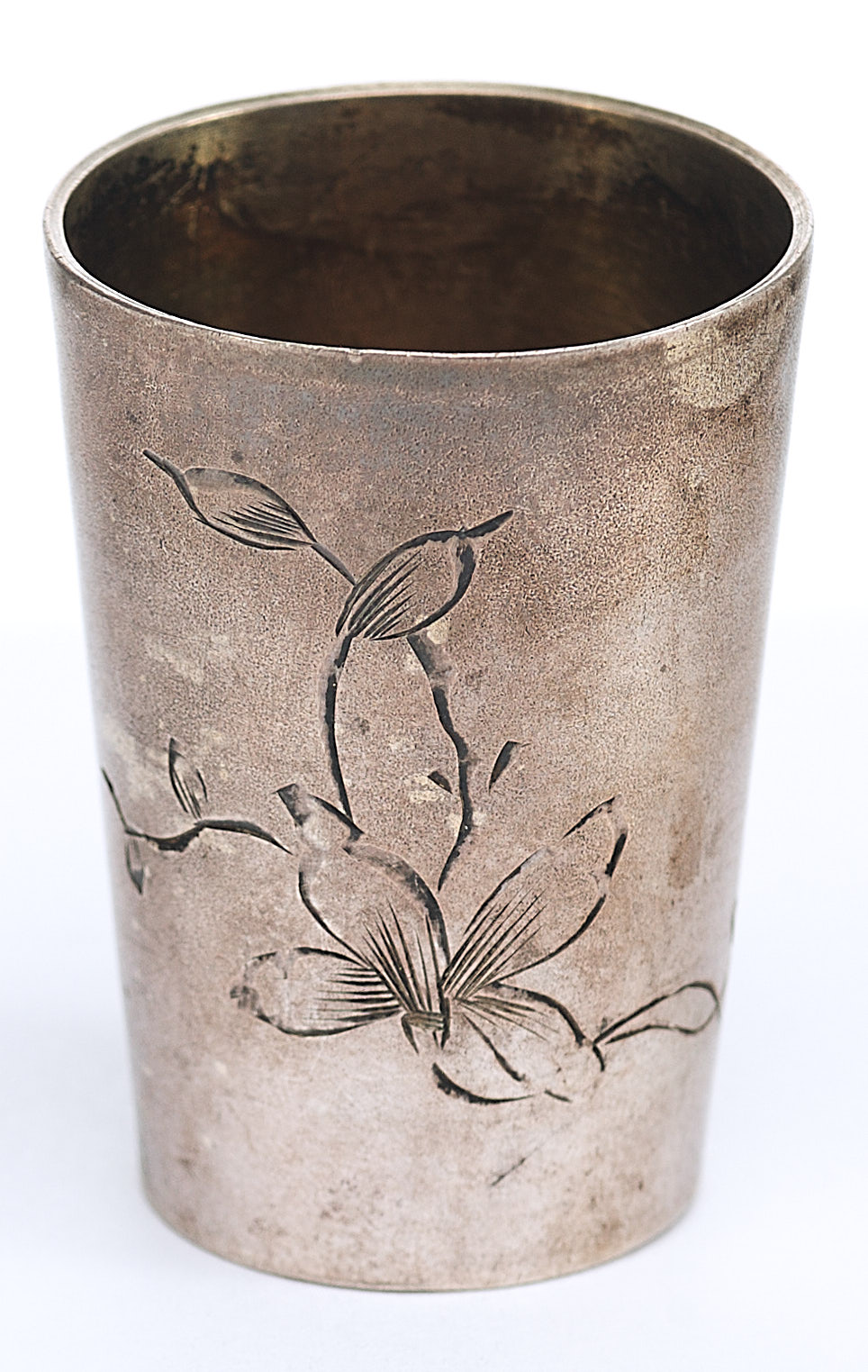 Представлена серебряная стопа, украшенная цветочным рисунком, выполненным в стиле модерн.