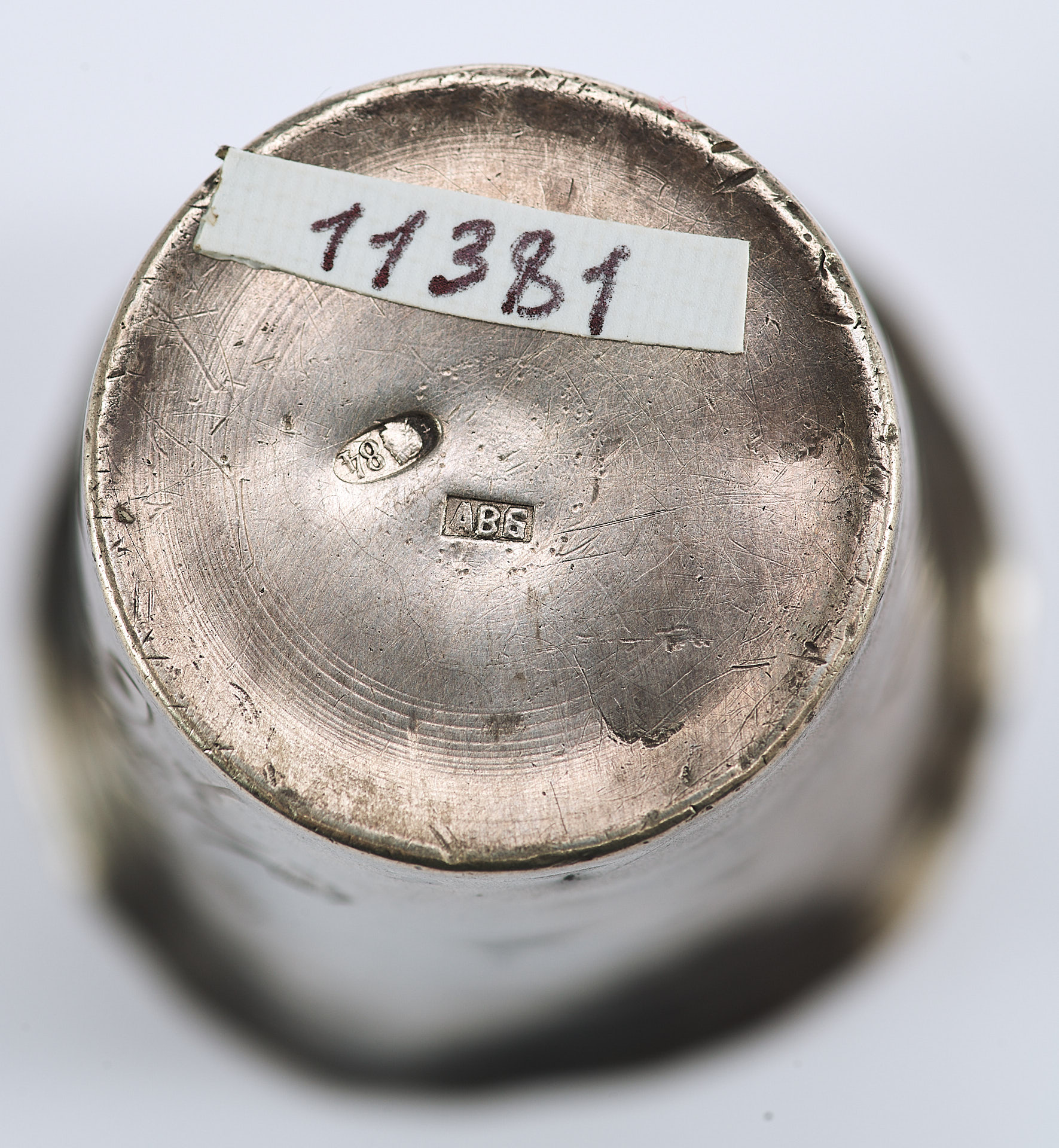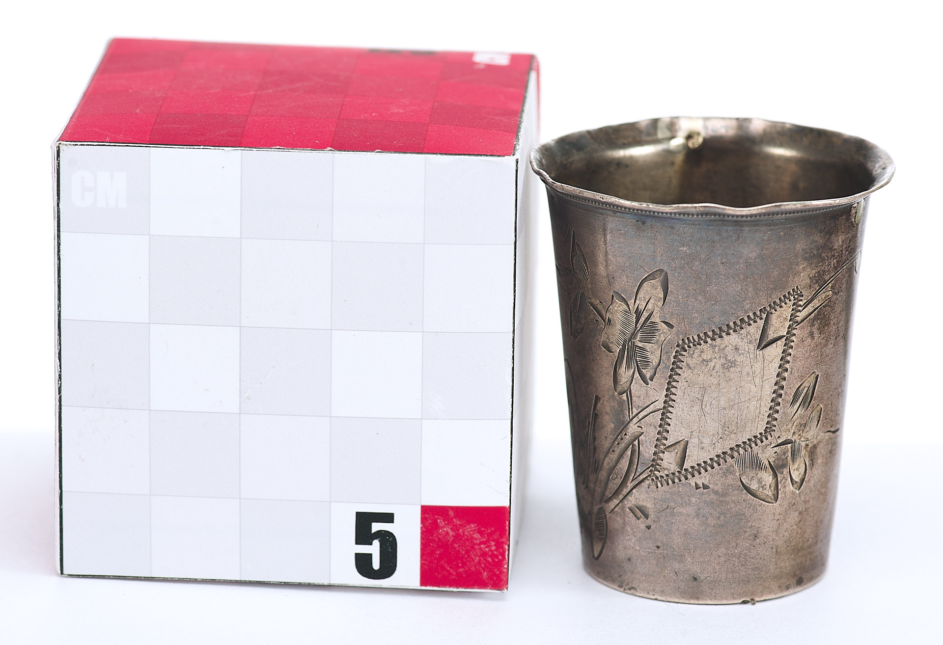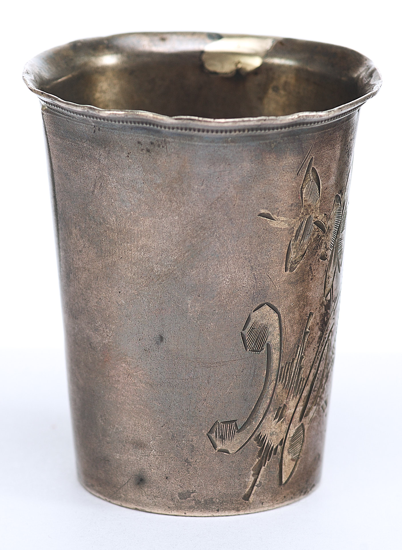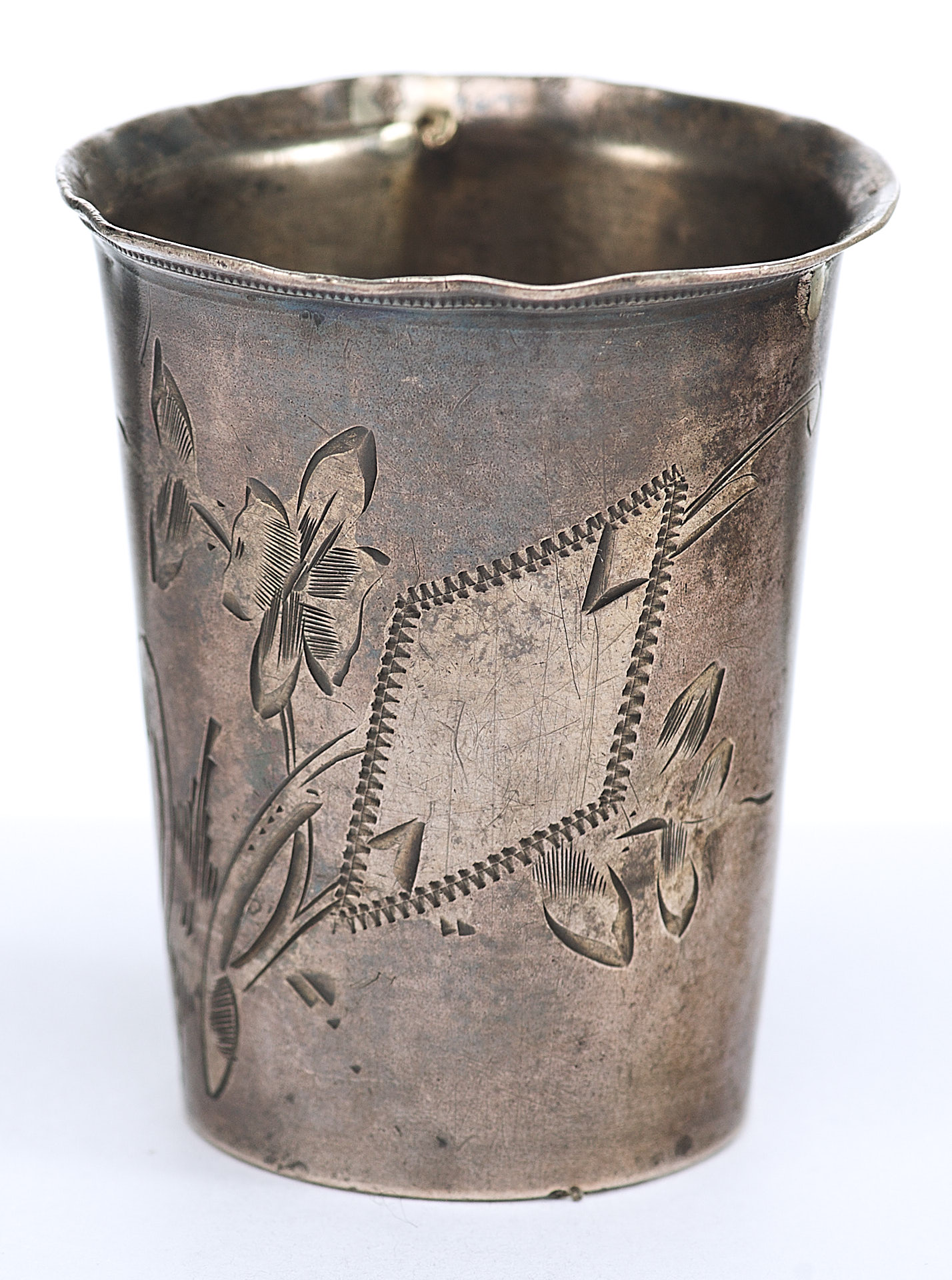Стопка штихельный декор серебро 84 пр. Кострома нач. ХХ в. 22 гр. Н-4,8 см. Кострома после 1908 г
