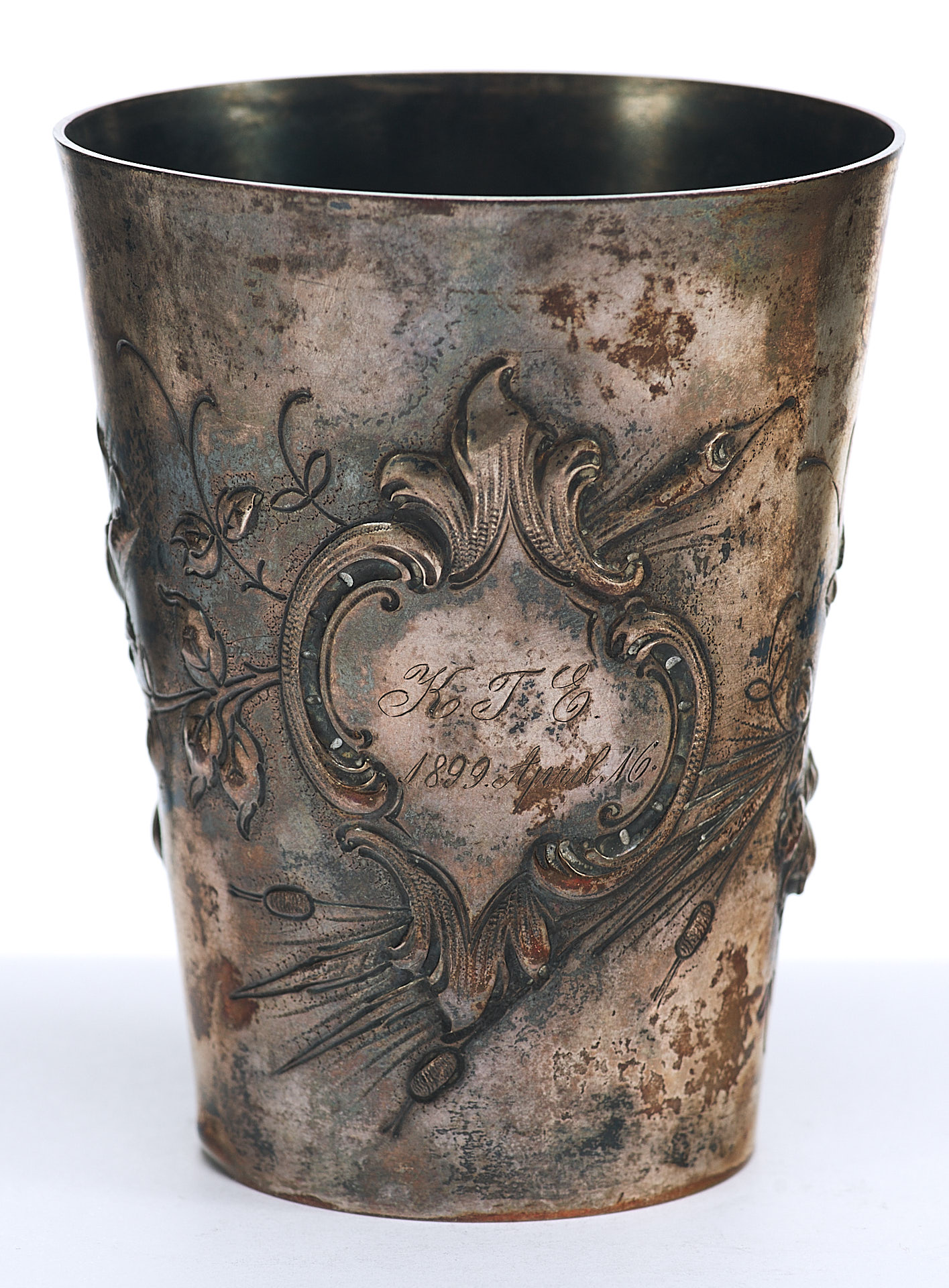 Стакан нео-рококо серебро 800 пр. Вена 1899 г. 179 гр. Н-9 см. Вена, Австро-Венгрия 1899 г