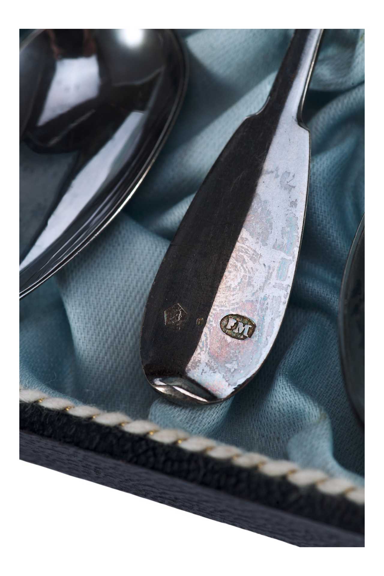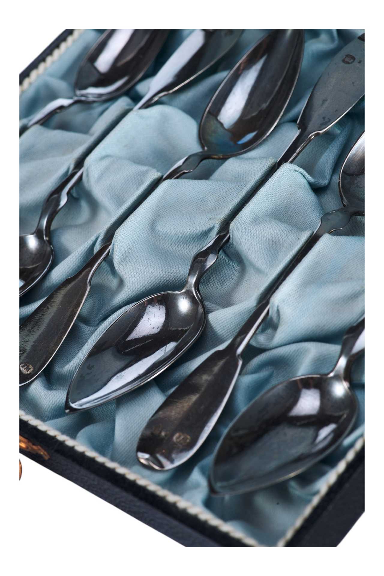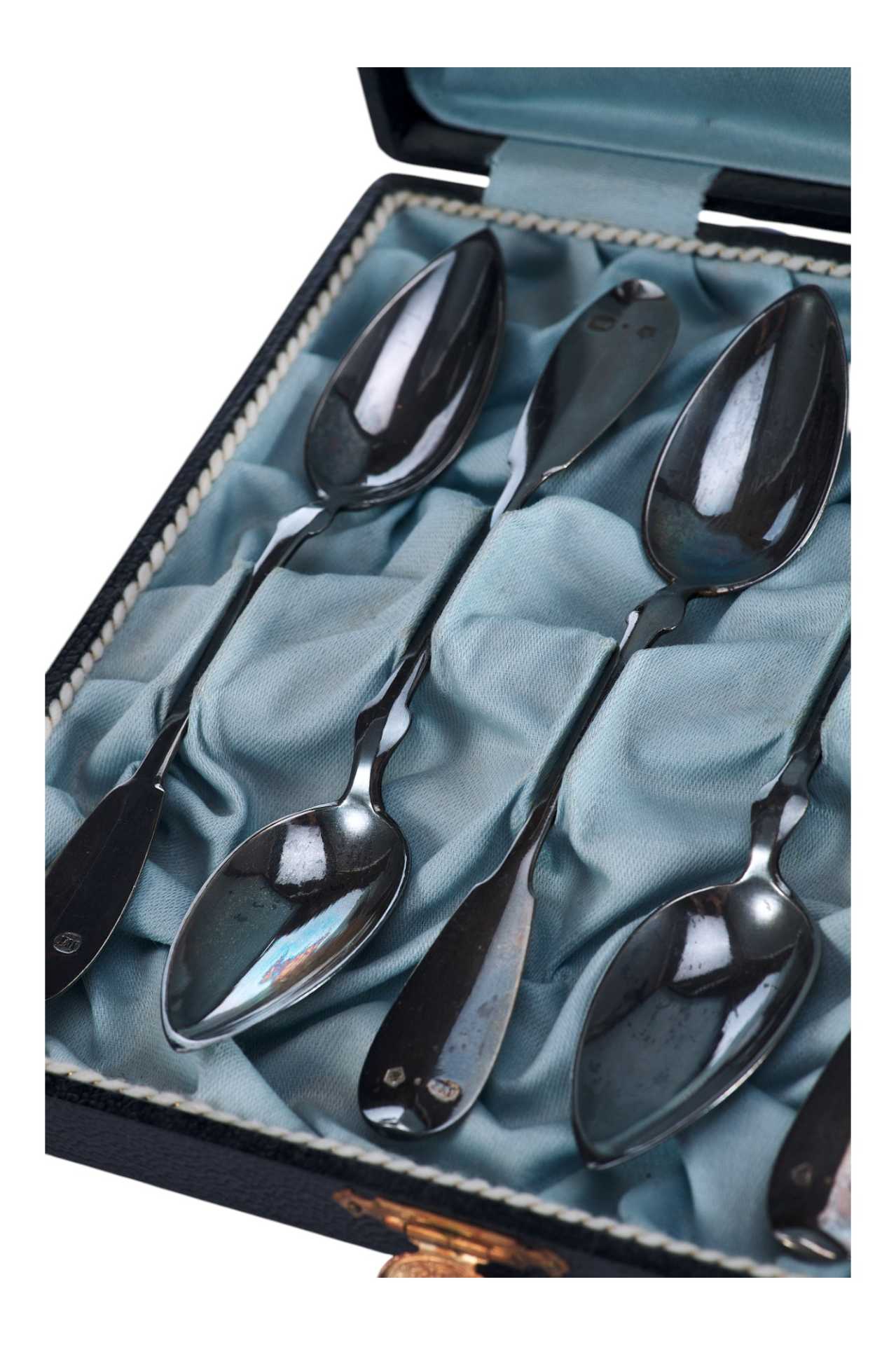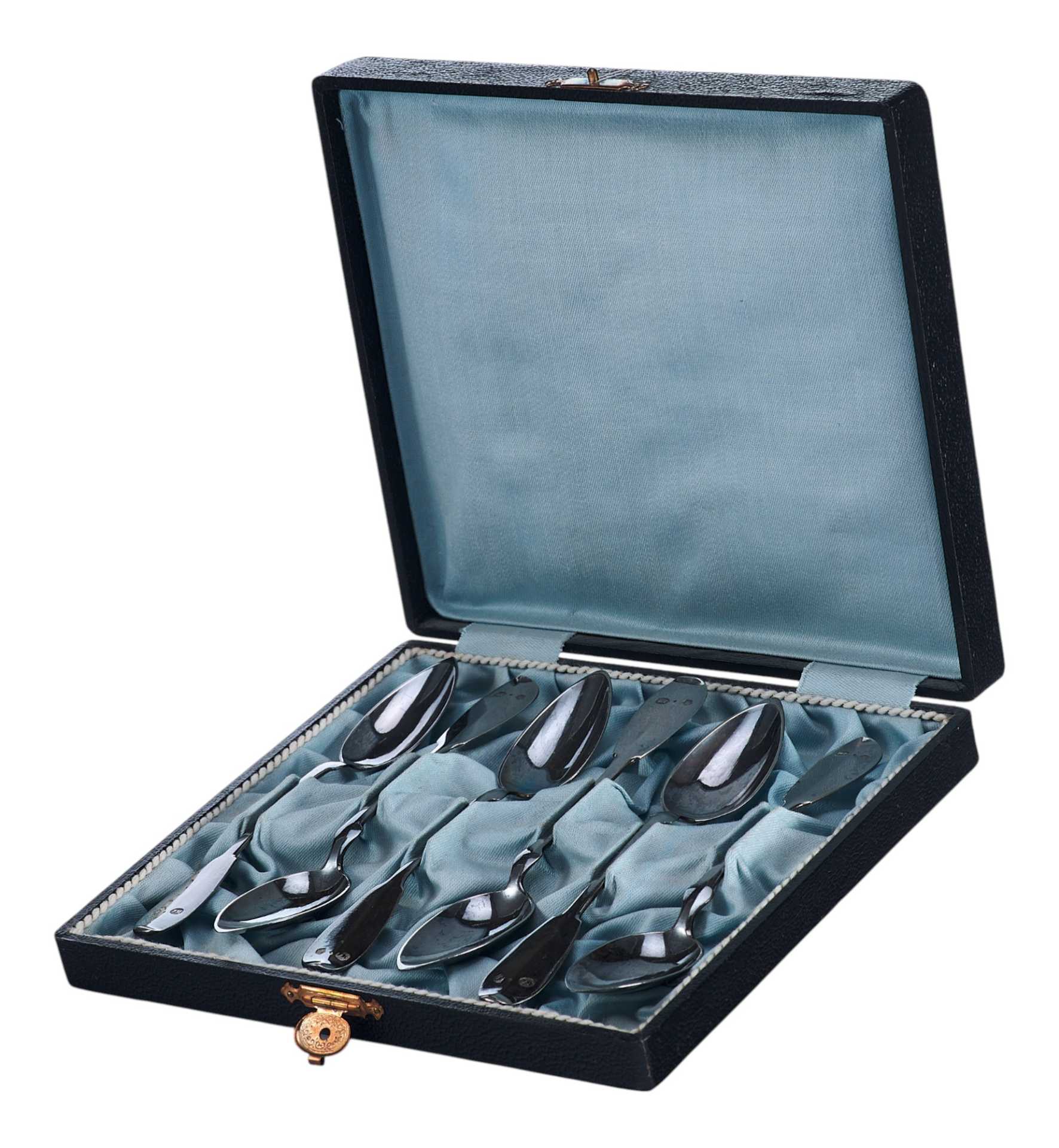 Представлен набор серебряных чайных ложек в оригинальном футляре.