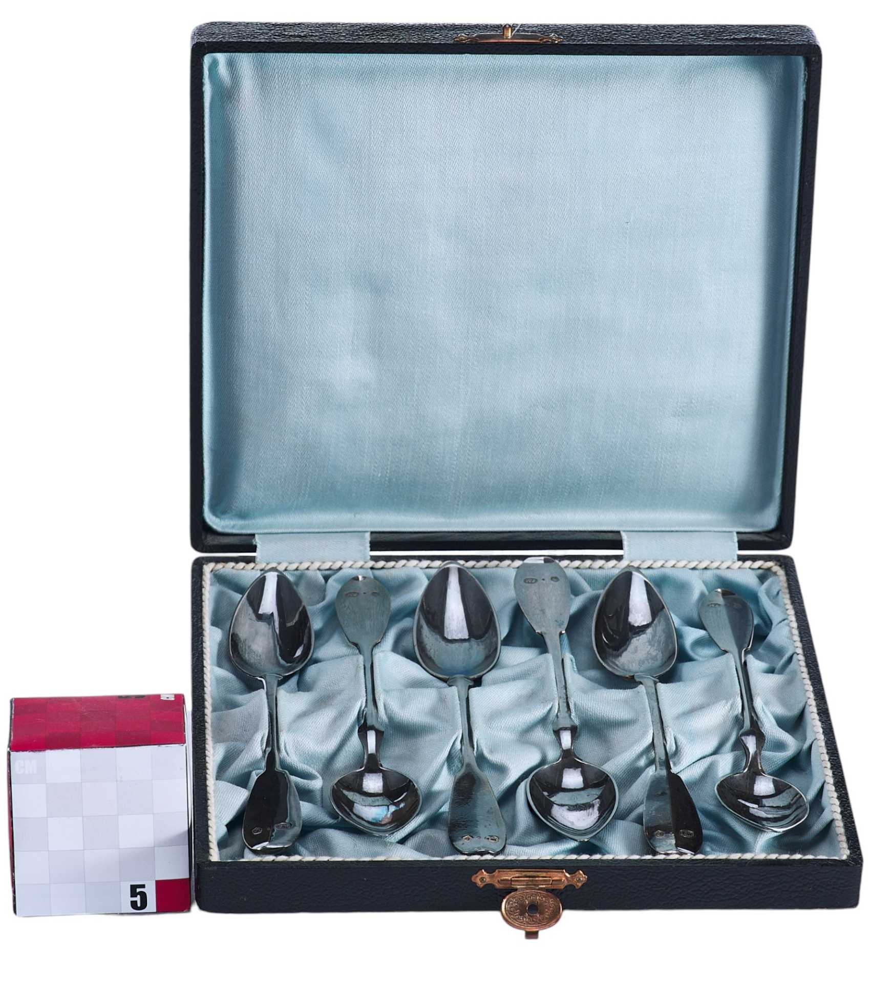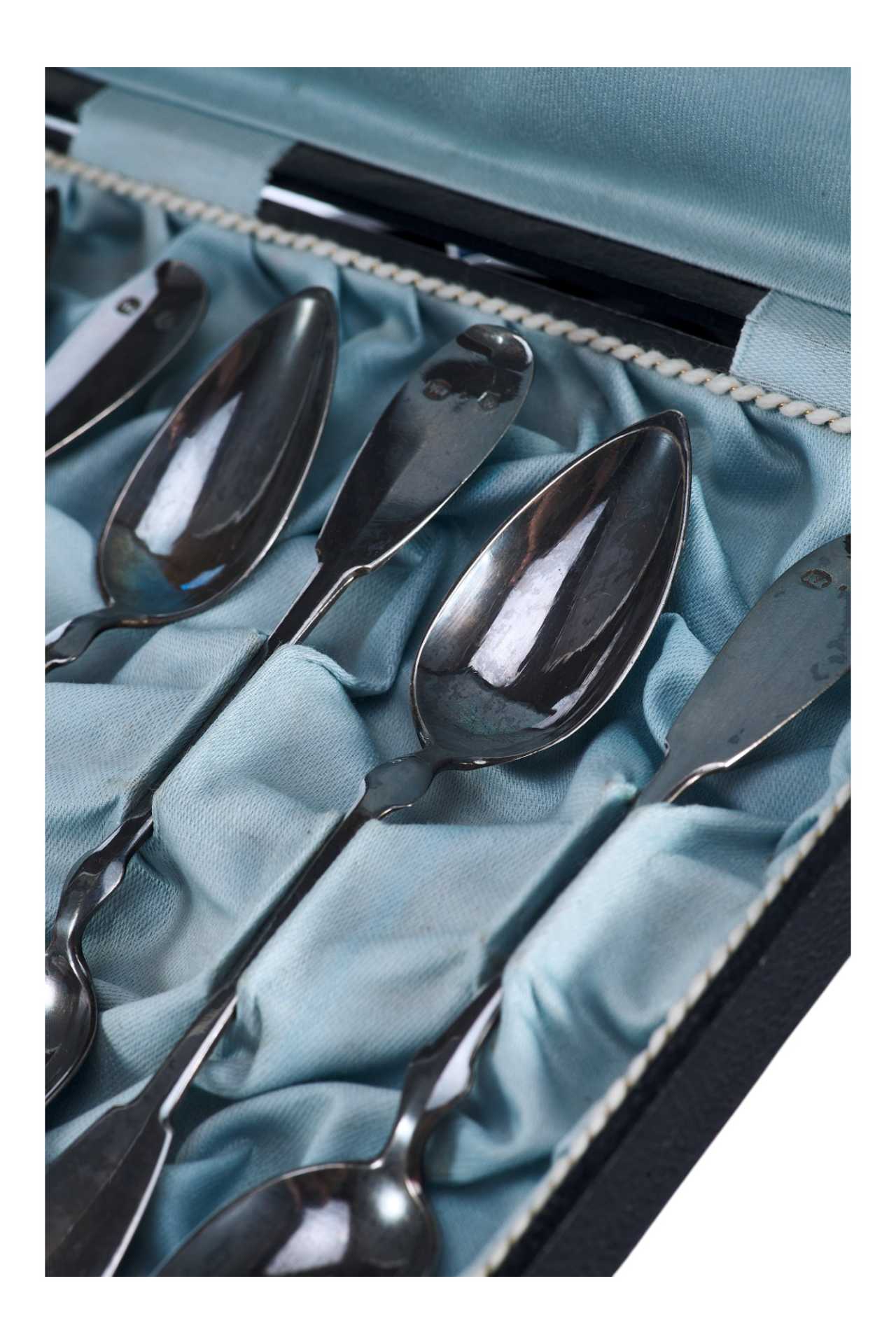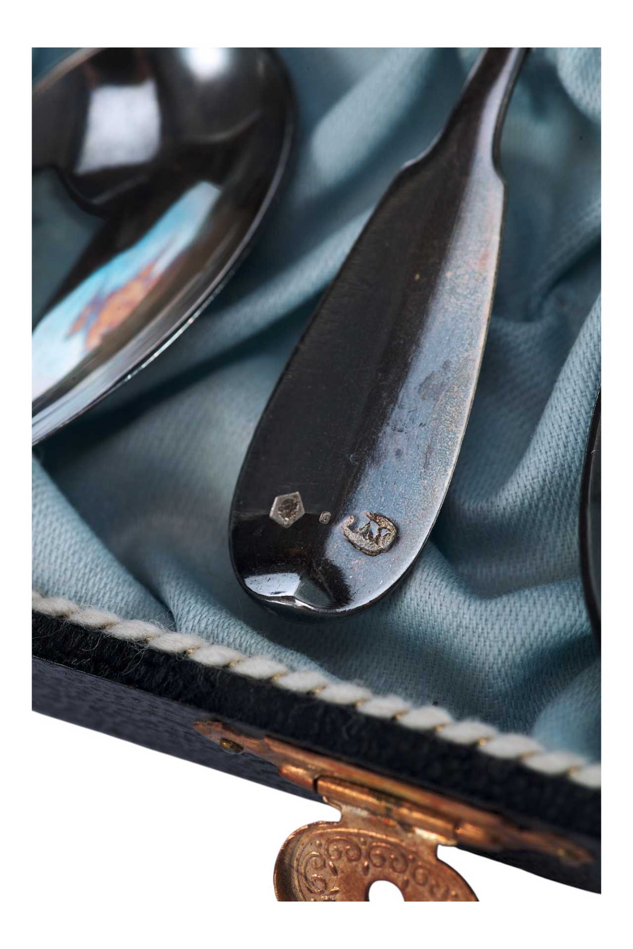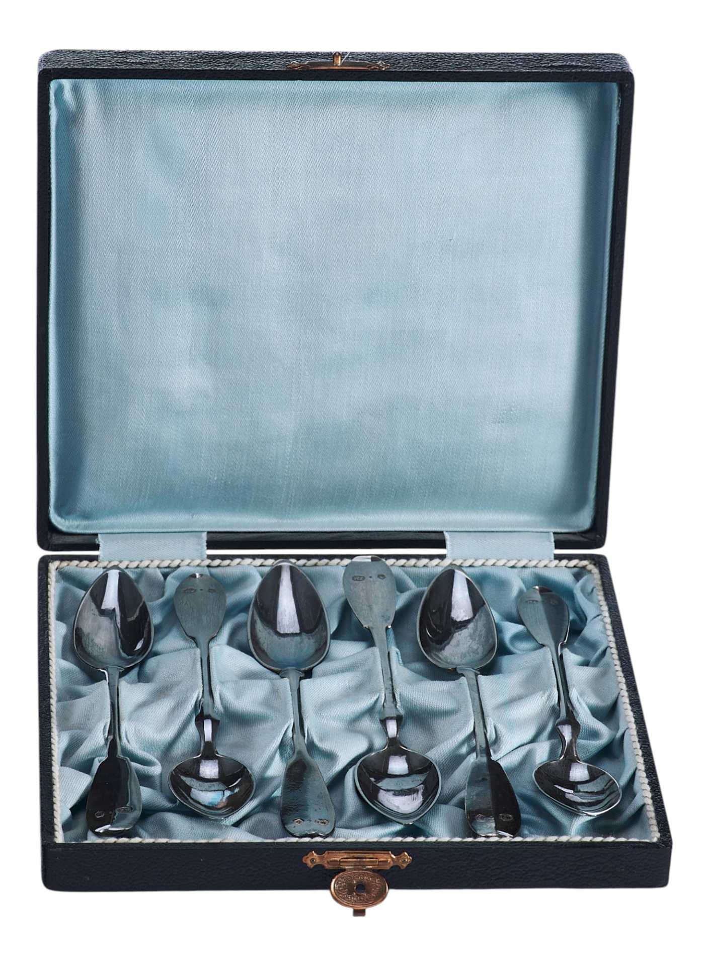 Представлен набор серебряных чайных ложек в оригинальном футляре.