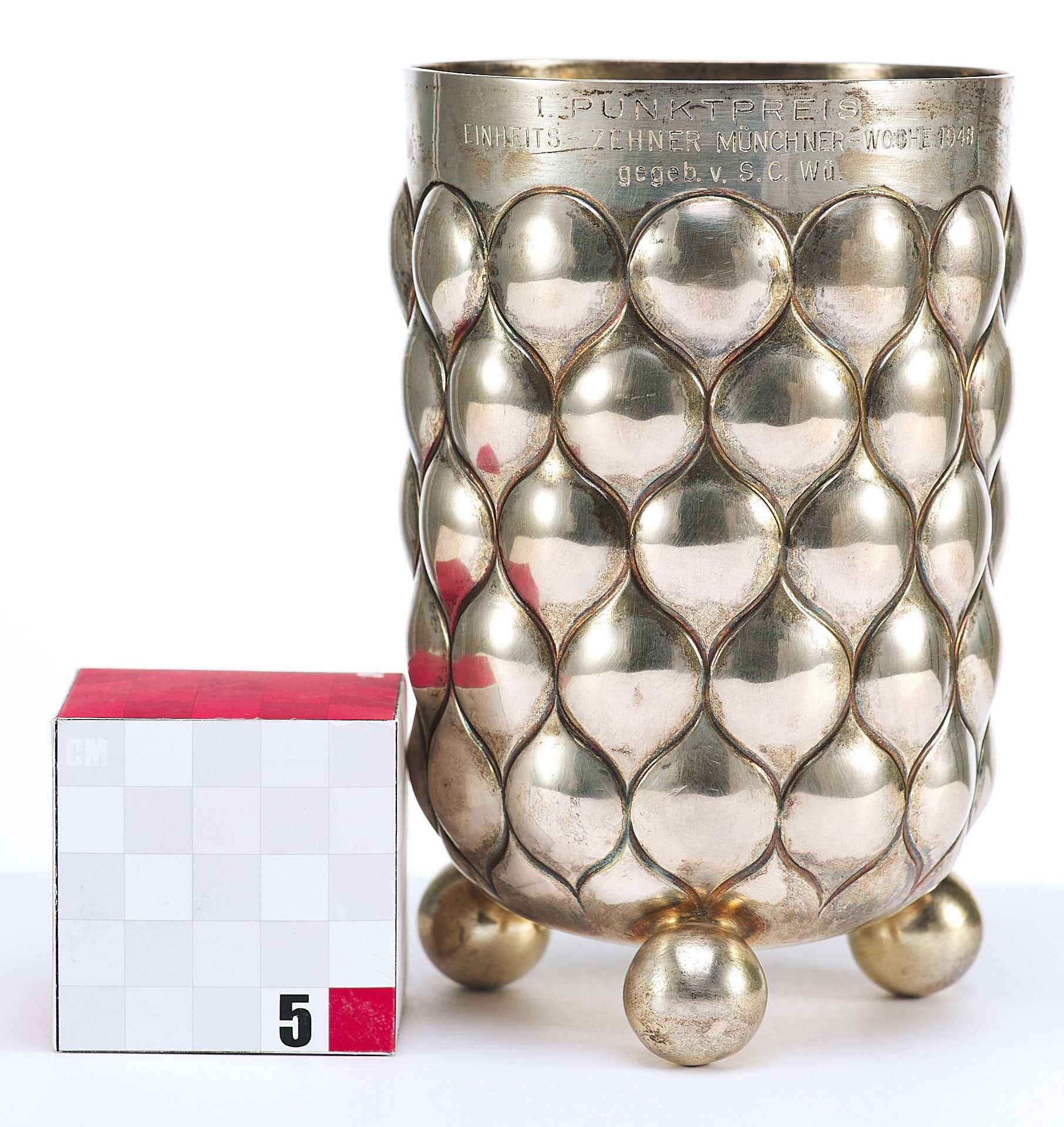 Их наличие и состояние материала позволяет установить, что кубок был изготовлен в Германии, до середины ХХ века.