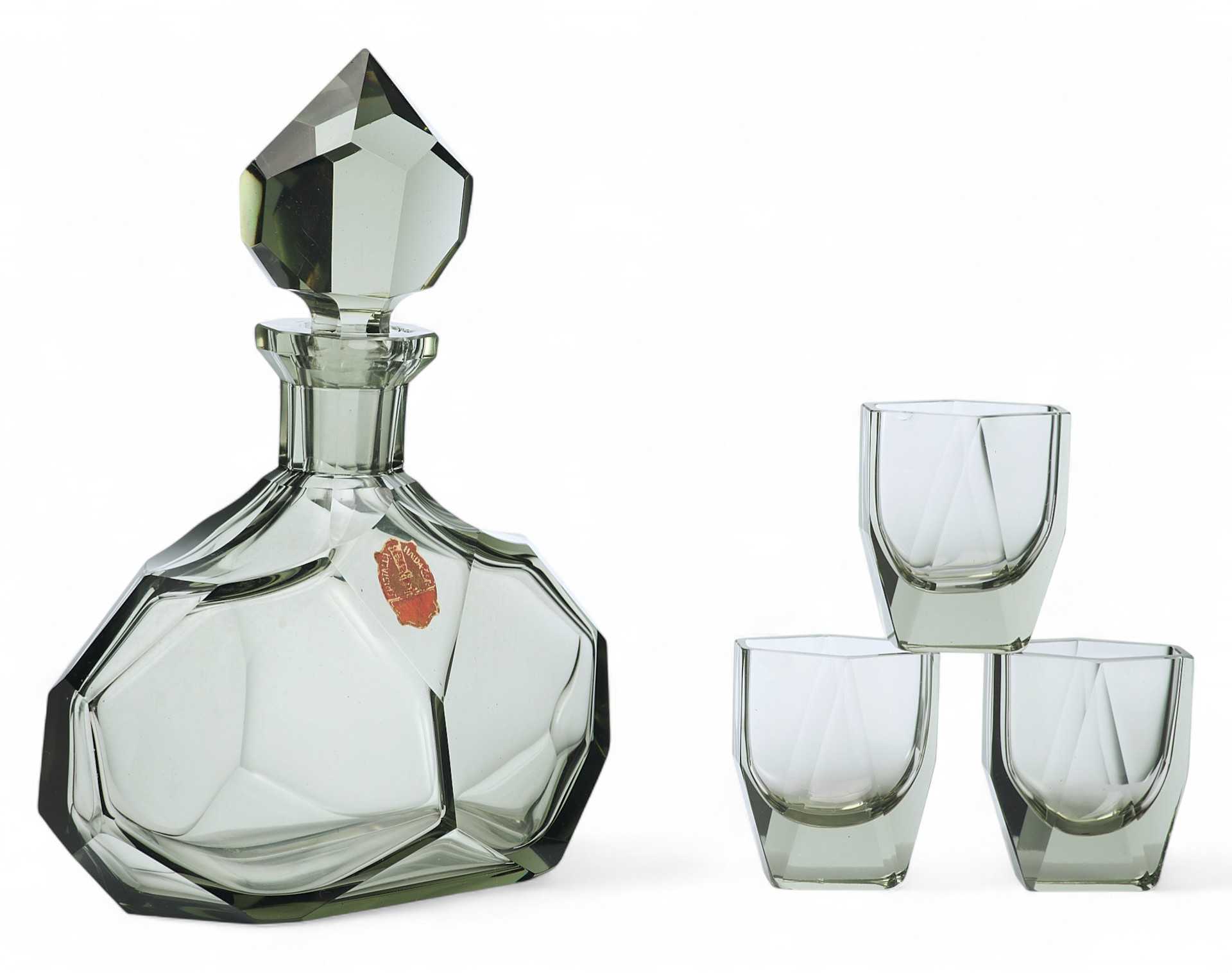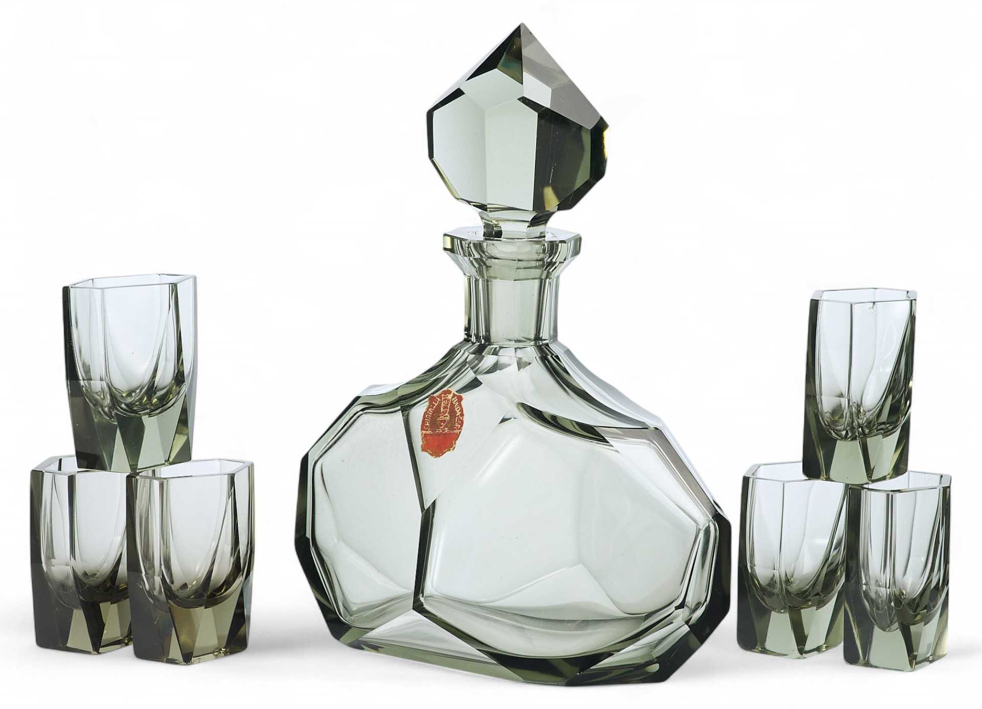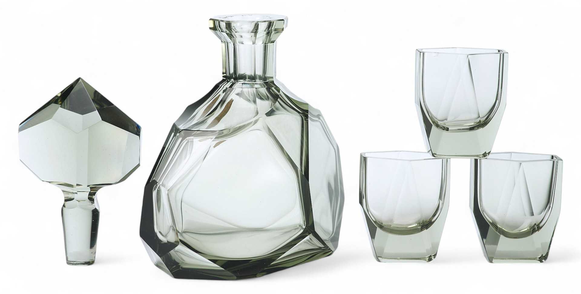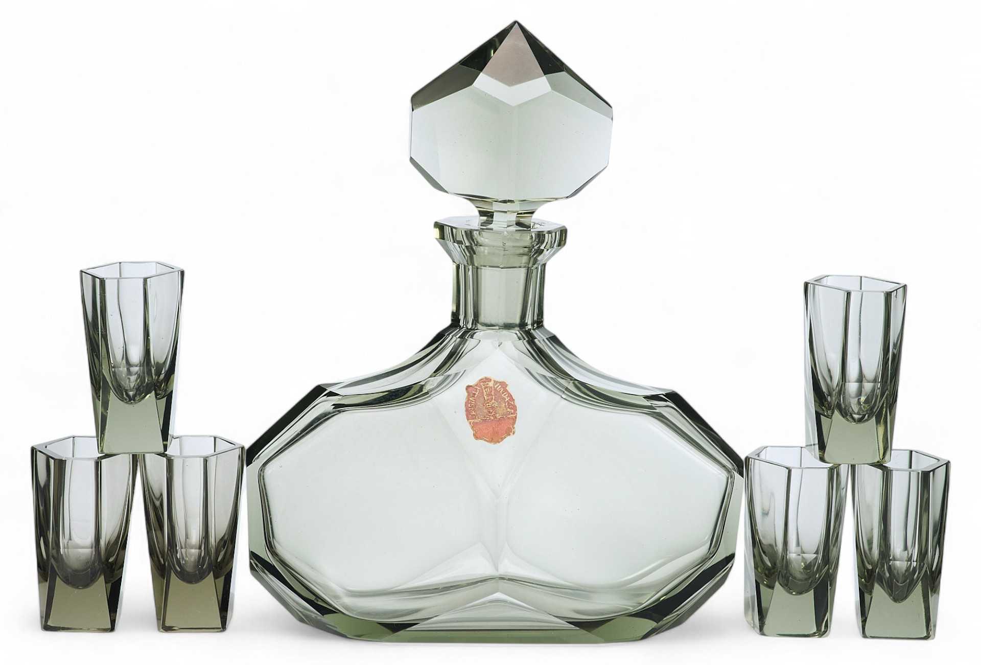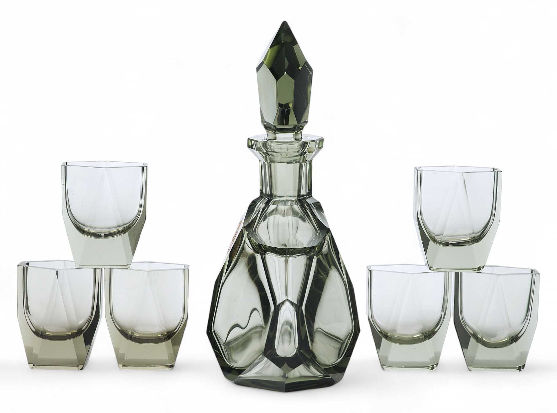 Набор для алкогольных напитков из цветного стекла Богемия первая половина XX века