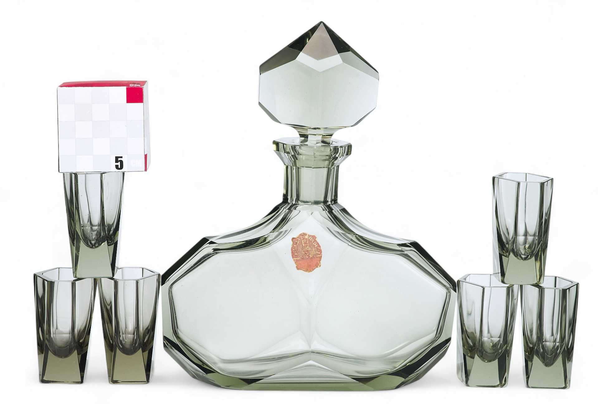 Набор для алкогольных напитков (рома, ликера, наливок и настоек) состоящий из: графина с пробкой и шести стопок.