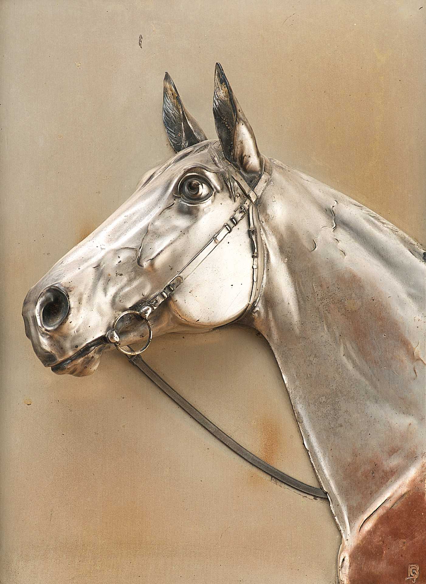 Панно Голова лошади металл, серебрение, Германия сер. ХХ в. 40х32 см. Германия Первая четверть XX века