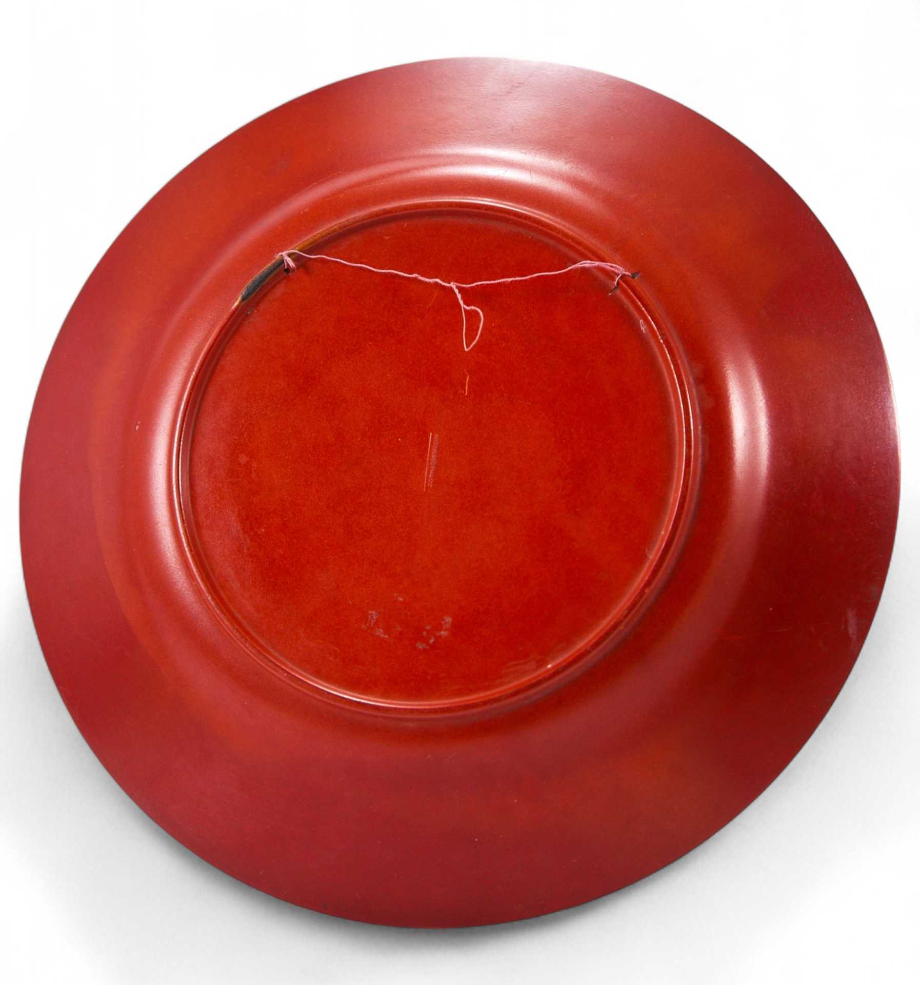 На обороте тарелки имеется клеймо завода «Мосплатмасс»: Тарелка выполнена из пластмассы коричнево-красного,