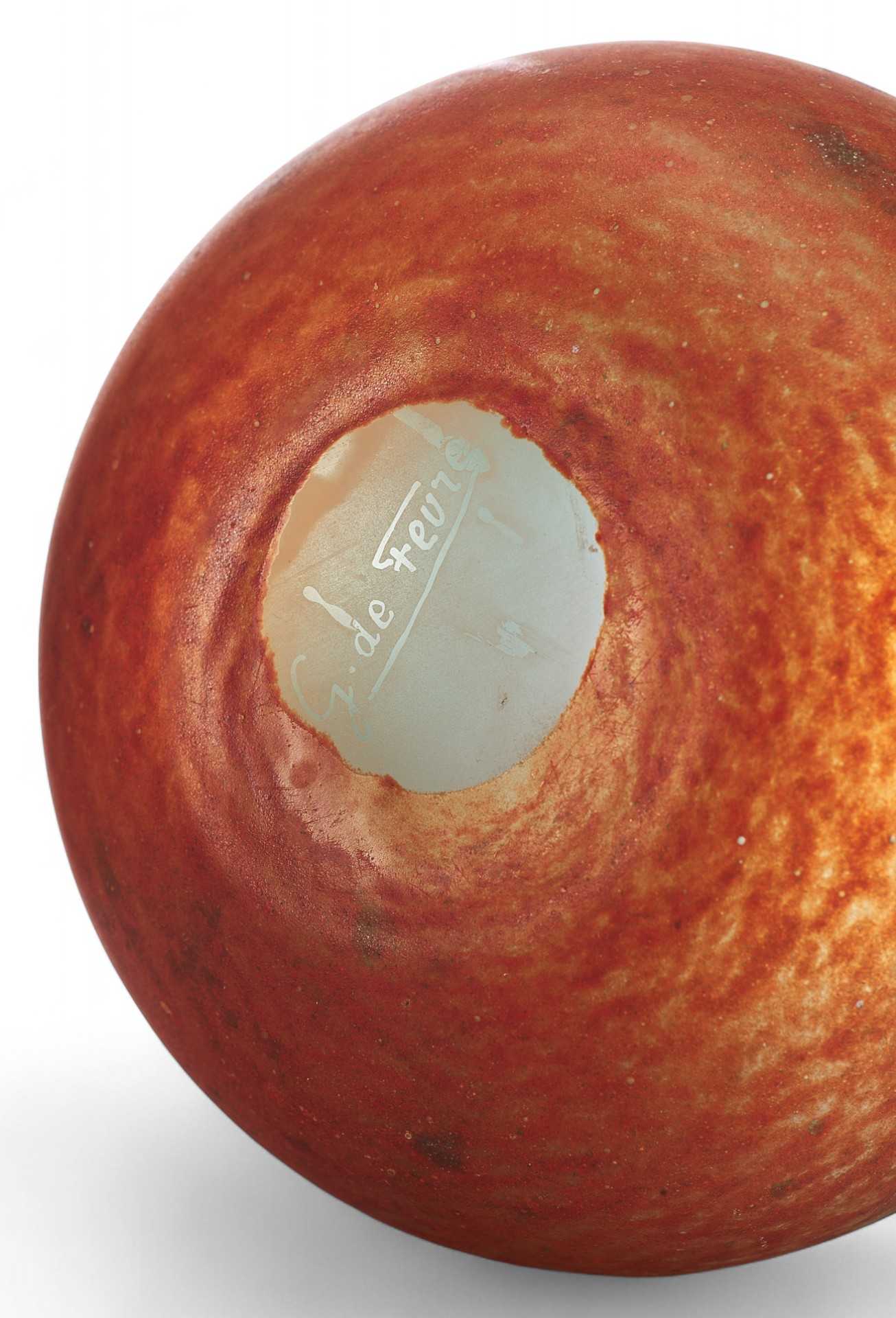 французских фабриках художественного стекла Эмиля Галле и братьев Даум. На донышке кувшина имеется подпись: «G. De Feure». Вероятнее всего такие кувшины с различными вариантами росписи воплощающими разные проявления фактуры изделия изготавливались на стекольной фабрике братьев Даум. В общем потоке нового художественного движения стиля модерн ярким "стилеобразующим материалом" стало стекло. Важную роль здесь сыграли успехи парижских стеклоделов Ф.-Ж. Брокара и братьев Руссо, существенно обогативших технологические возможности декорации стекла, и особенно — открытие А. Кро. Он возродил технику "le p'äte de ѵегге" - "тесто из стекла" и широко использовал её в своих классических ретроспекциях - вазах с барельефами на античную тему. Этот способ изготовления матового стекла, поверхность которого напоминала шероховатый кварц впоследствии стал очень популярен. Такое стекло стало излюбленным материалом мастеров модерна. В общем потоке нового художественного движения стиля модерн ярким "стилеобразующим материалом" стало стекло. Важную роль здесь сыграли успехи парижских стеклоделов Ф.-Ж. Брокара и братьев Руссо, существенно обогативших технологические возможности декорации стекла, и особенно — открытие А. Кро. Он возродил технику "le p'äte de ѵегге" - "тесто из стекла" и широко использовал её в своих классических ретроспекциях - вазах с барельефами на античную тему. Этот способ изготовления матового стекла, поверхность которого напоминала шероховатый кварц впоследствии стал очень популярен. Такое стекло стало излюбленным материалом мастеров модерна. были созданы на темуженщины, подчеркнув, тонкие линии и элегантную чувственность.