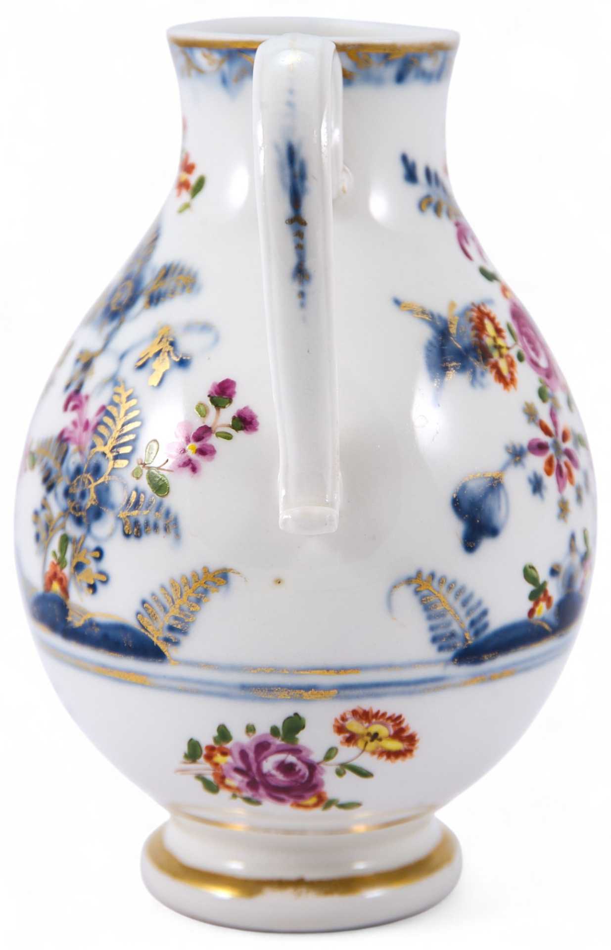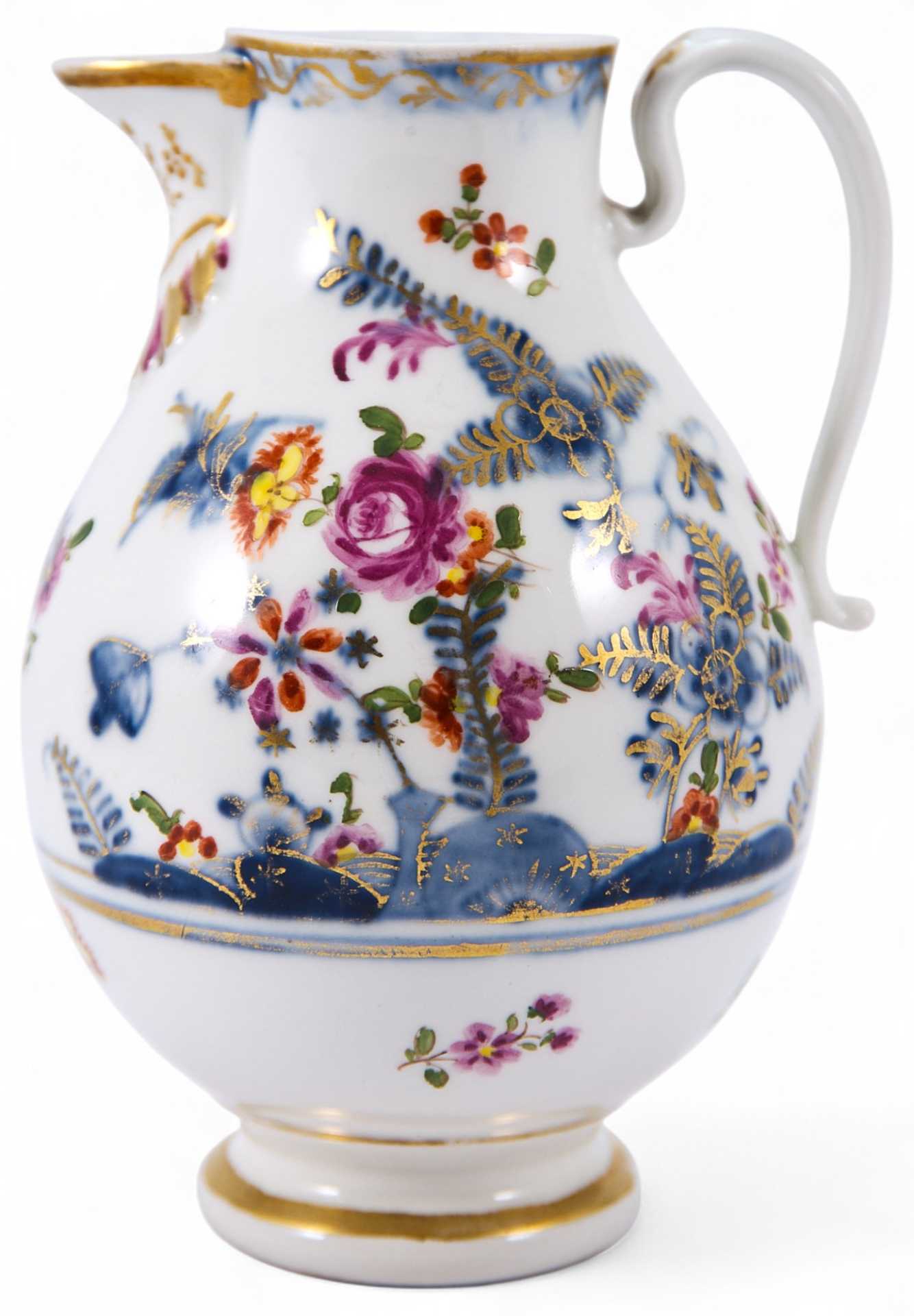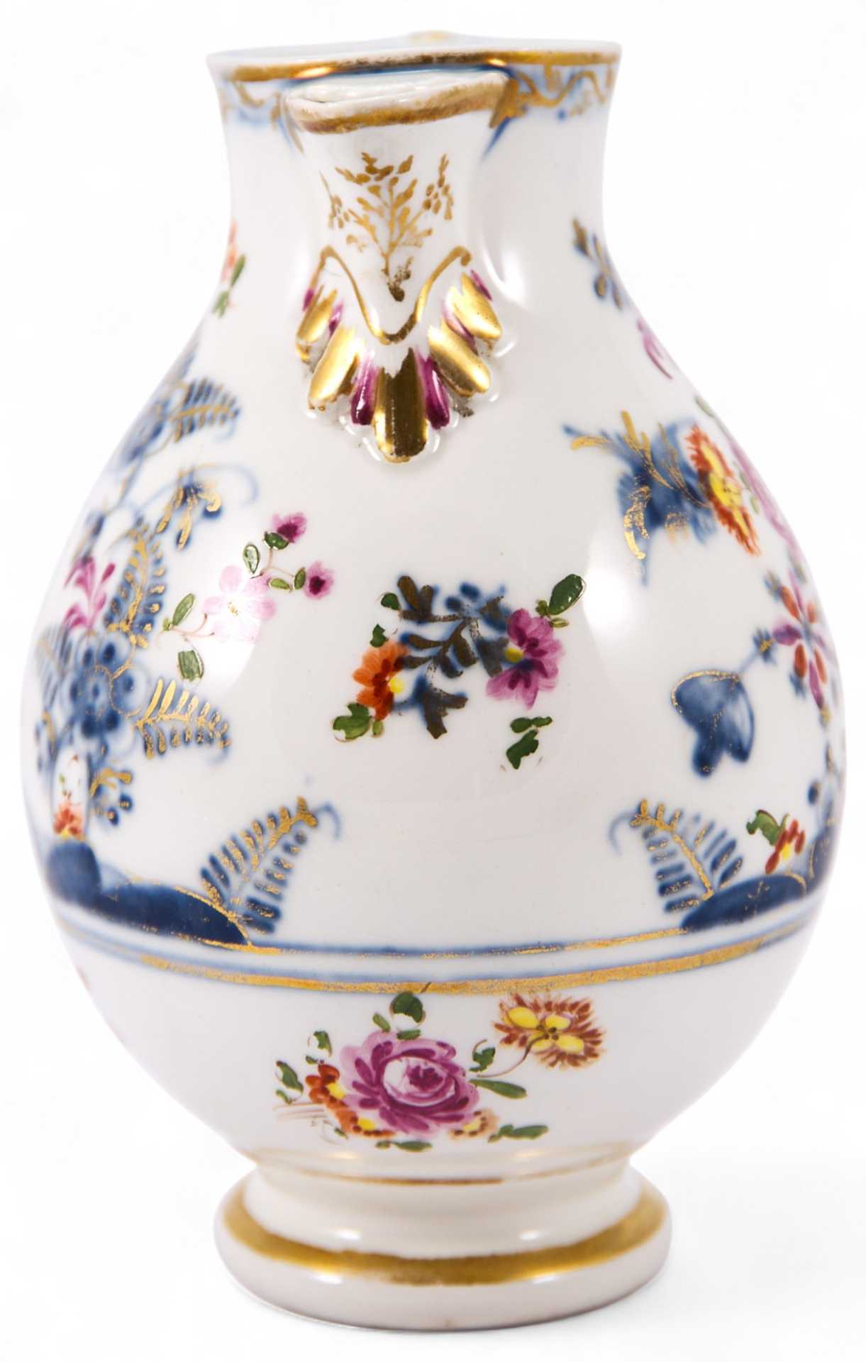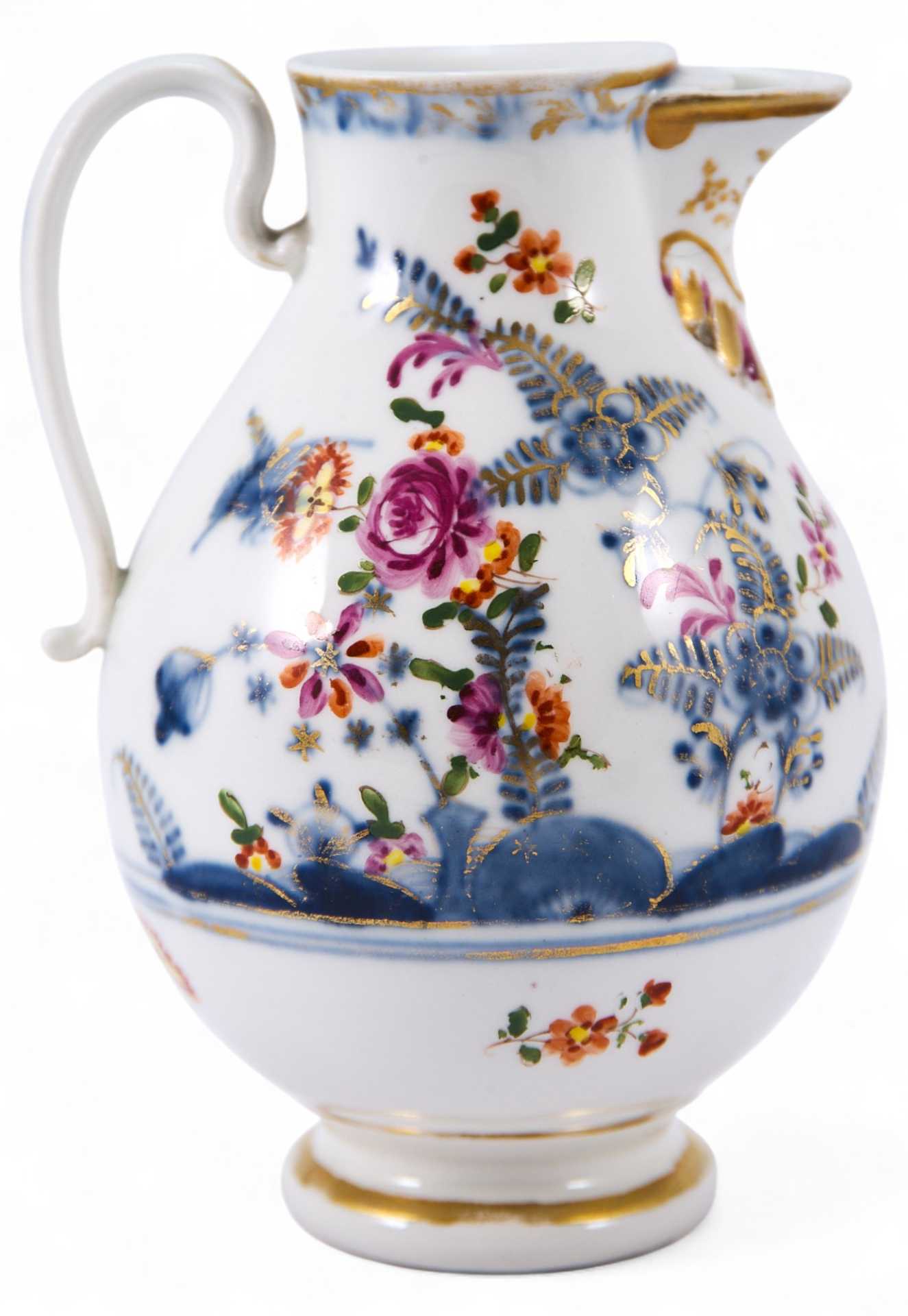 Молочник, роспись которого выполнена кобальтом и затем дополнена надглазурными бутонами цветов поверх предыдущей росписи. Подобный подход к оформлению изделии Венской фарфоровой мануфактуры встречался после её закрытия, когда продукцию с её складов выкупали частные фирмы и «дорабатывали» самостоятельно стремясь сбыть её на новом рынке фарфора. Венская фарфоровая мануфактура была основапа в 1718 году в Вене нидерландцем Клаудиусом Инноценциусом дю Пакье (Claudius lnnocentus du Parquier), которому император Карл VI даровал «особые привилегии» и исключительное право на изготовление фарфора в землях Австрийской Короны в течение 25 лет. С самого основания на производстве работали мастера с Мейсенской мануфактуры, такие как, Самуэль Штёльцель, опытный химик), и Кристоф Конрад Гунтер, специалист по эмали и золочению.