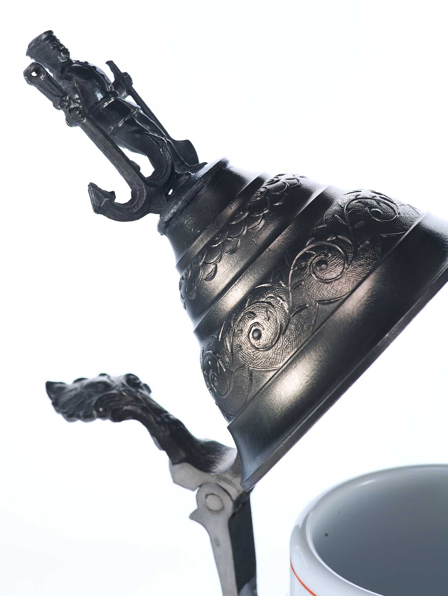 сплава. Навершием крышки является декоративная фигура баварского солдата в бескозырке, держащего якорь и лопату — символ инженерных полков.