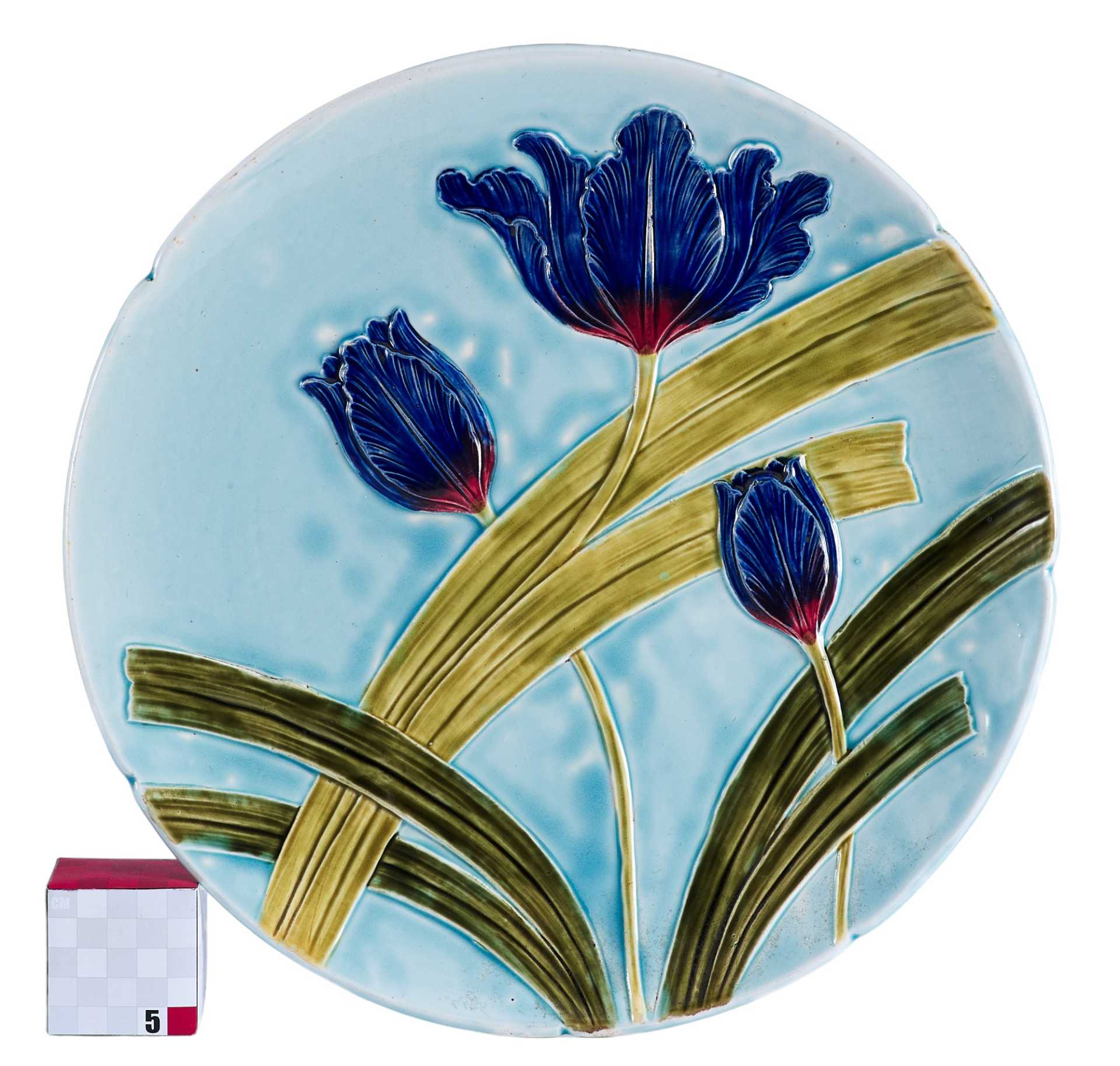 фабрике братьев Арнольда и Людвига Рихарда Шютцев, о чем говорит клеймо на донышке панно. Клеймо фабрики соответствует периоду изготовления - после 1900-х гг. Majolika- und Steingutfabrik Gebrüder Schütz (1854-1917) Открыв в 1854 году фаянсовую фабрику в Моравии (Оромушен, близ Бланско), братья Шютц взяли курс на производство элитных предметов интерьера и посуды. Для этого на производство были приглашены известные художники, мастера, скульпторы. Майолика и