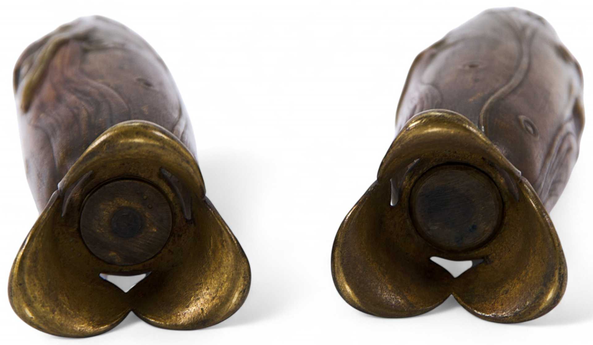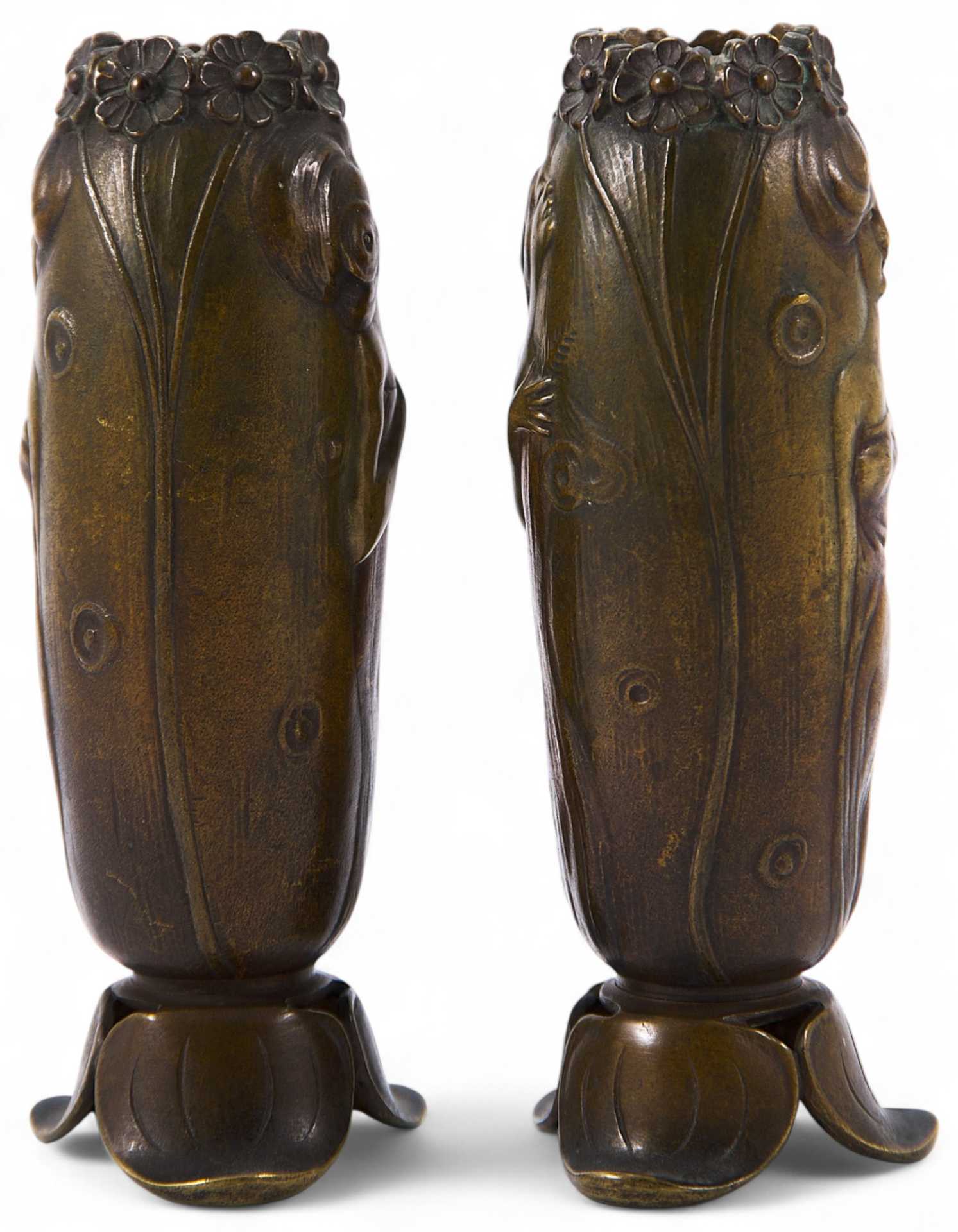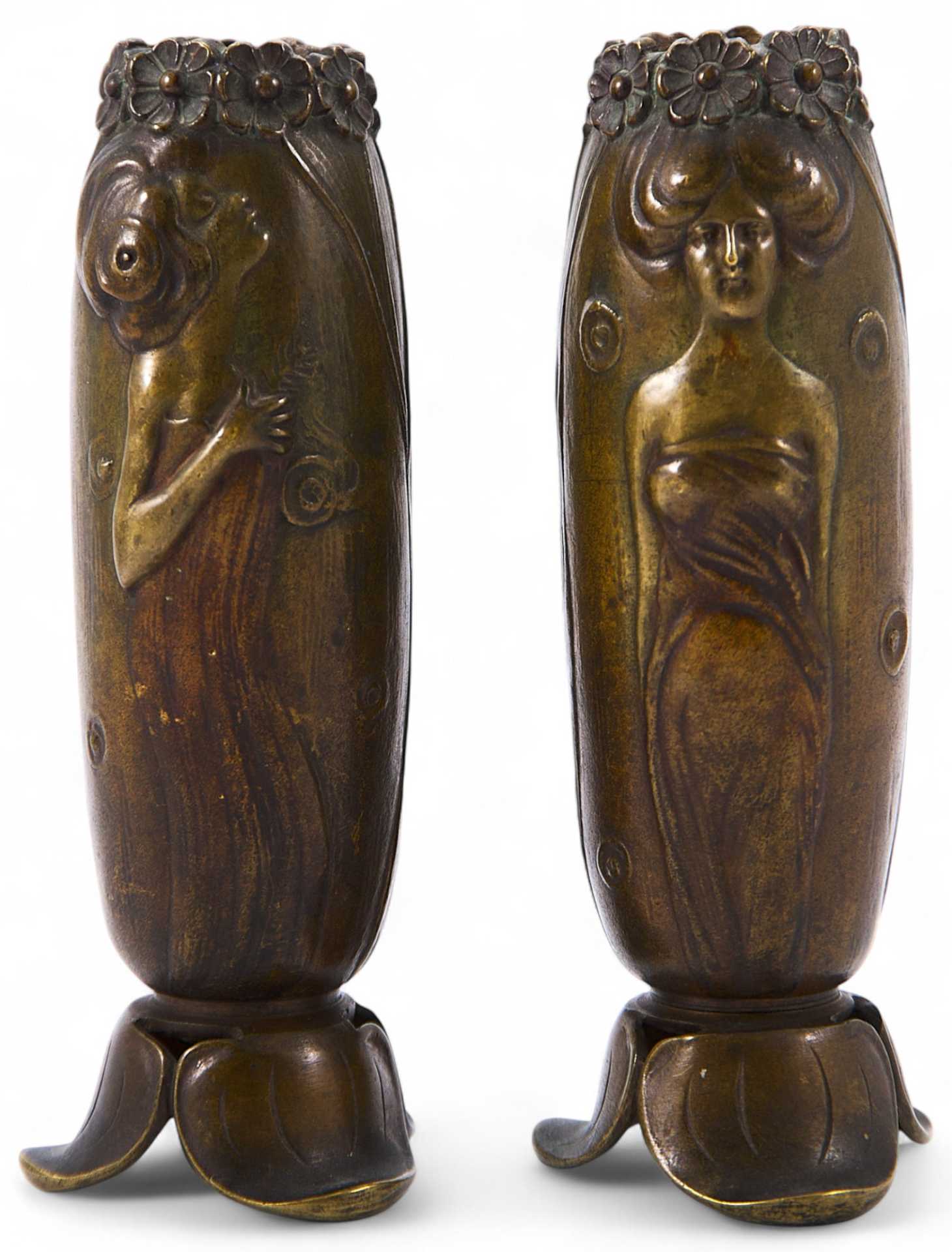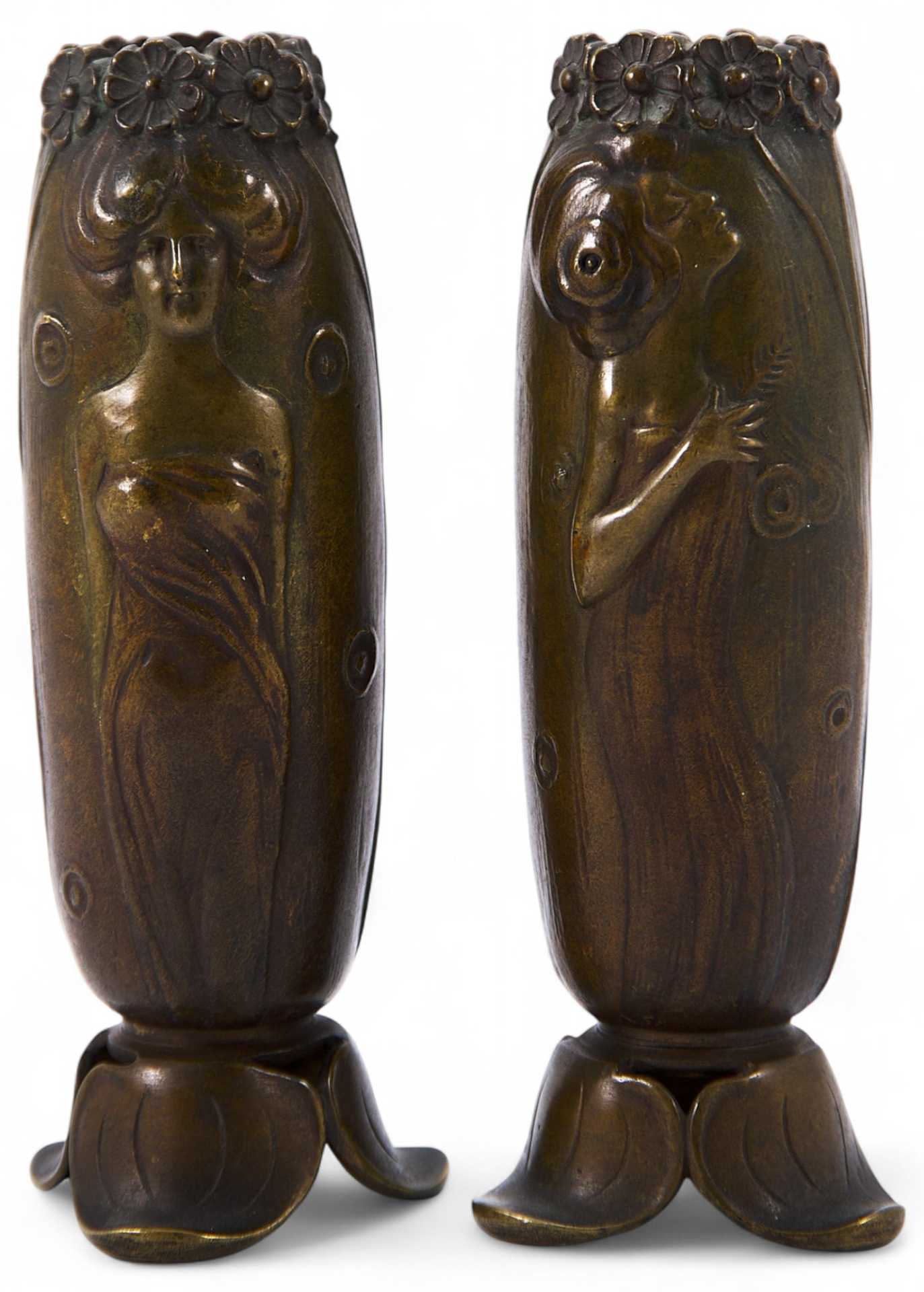 парные вазы в стиле модерн. На вазах изображены загадочные женские образы закутанные в тонкую материю, напоминающую шелк. Края ваз окаймлены цветочным венками. Основания ваз выполнены в виде лепестков. Завораживающие образы фей, нимф и сирен были популярным мотивом для художников стиля модерн.