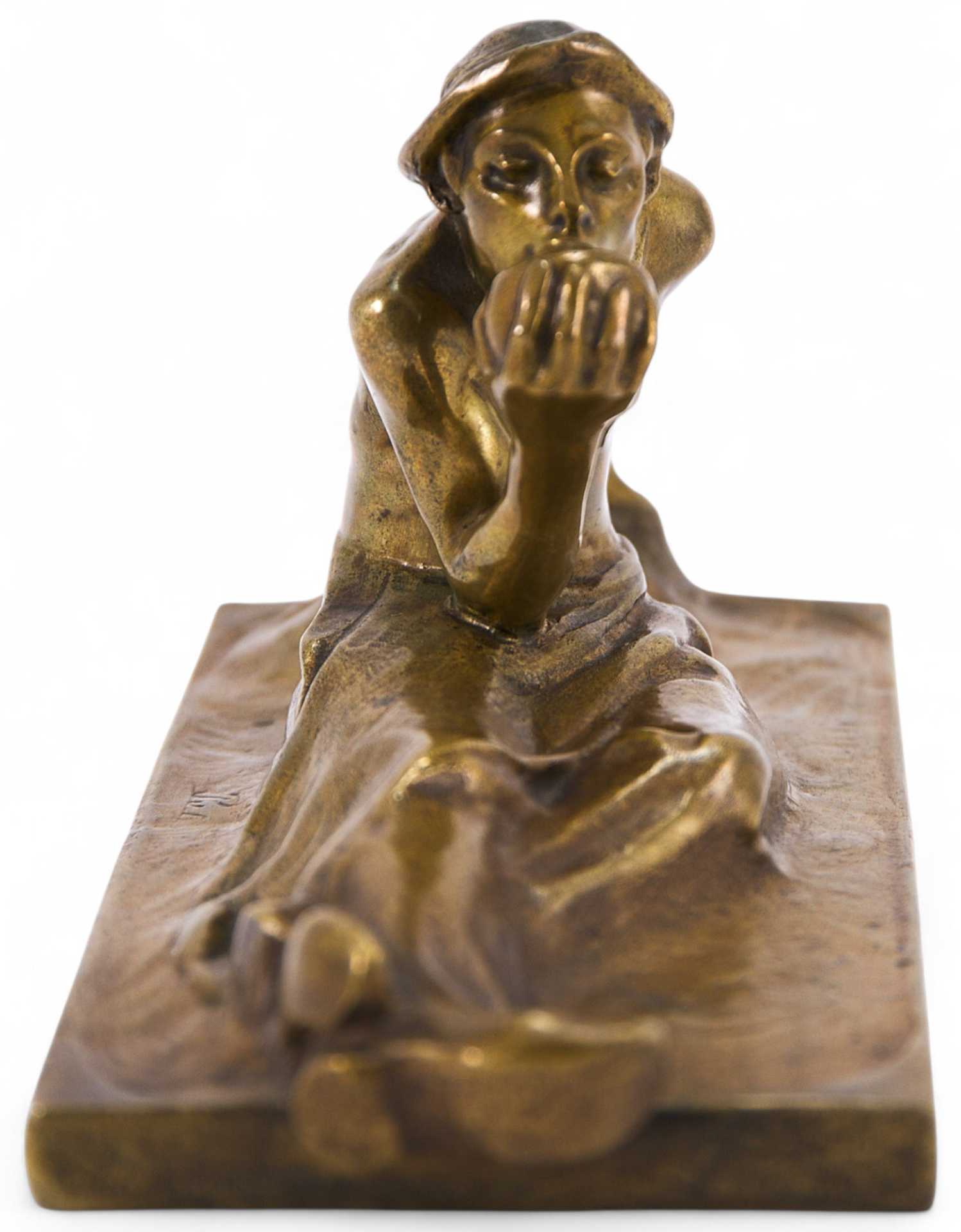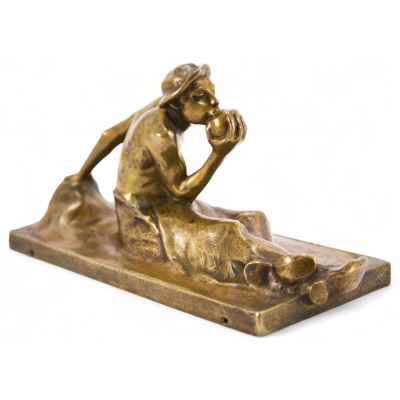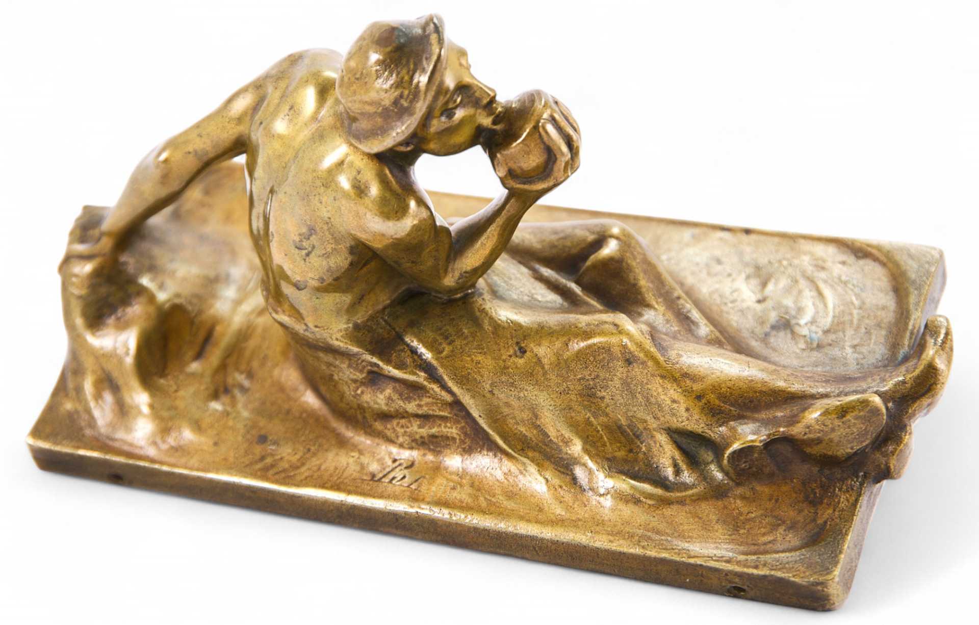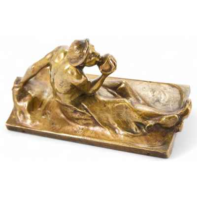 На предмете имеется авторская подпись: “Pohl”. Манера начертания авторской подписи соответствует аналогичным автографам художника на других его произведениях. Предмет изготовлен в мастерской австрийского скульптора А. Пола. Подлинность работы не вызывает сомнений. Письменные приборы широко применяли для украшения интерьеров гостиных, кабинетов, библиотек. Многочисленные бронзолитейные мастерские выпускали широкий ассортимент небольших кабинетных вещиц, среди которых разнообразием отличались письменные приборы.