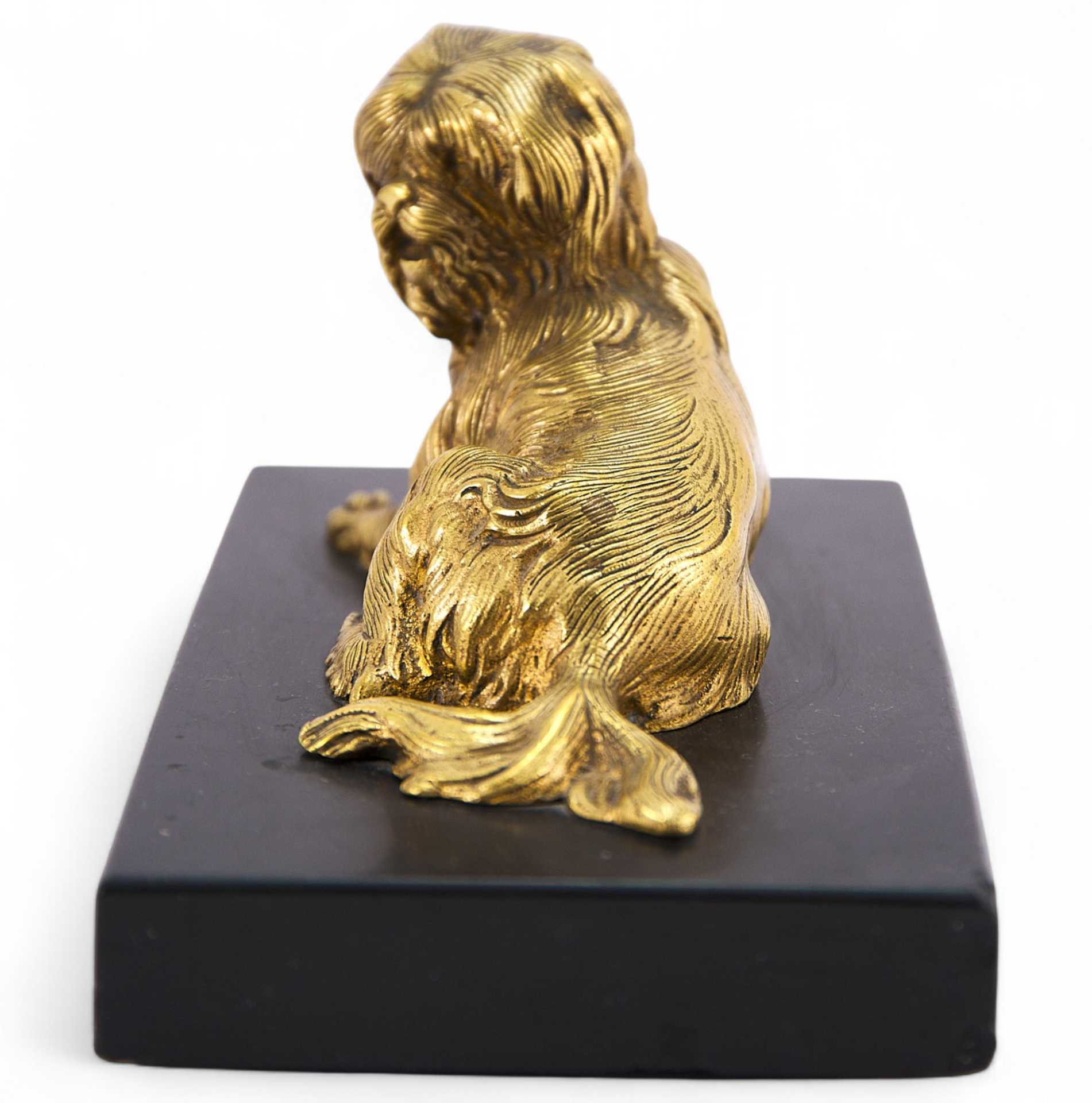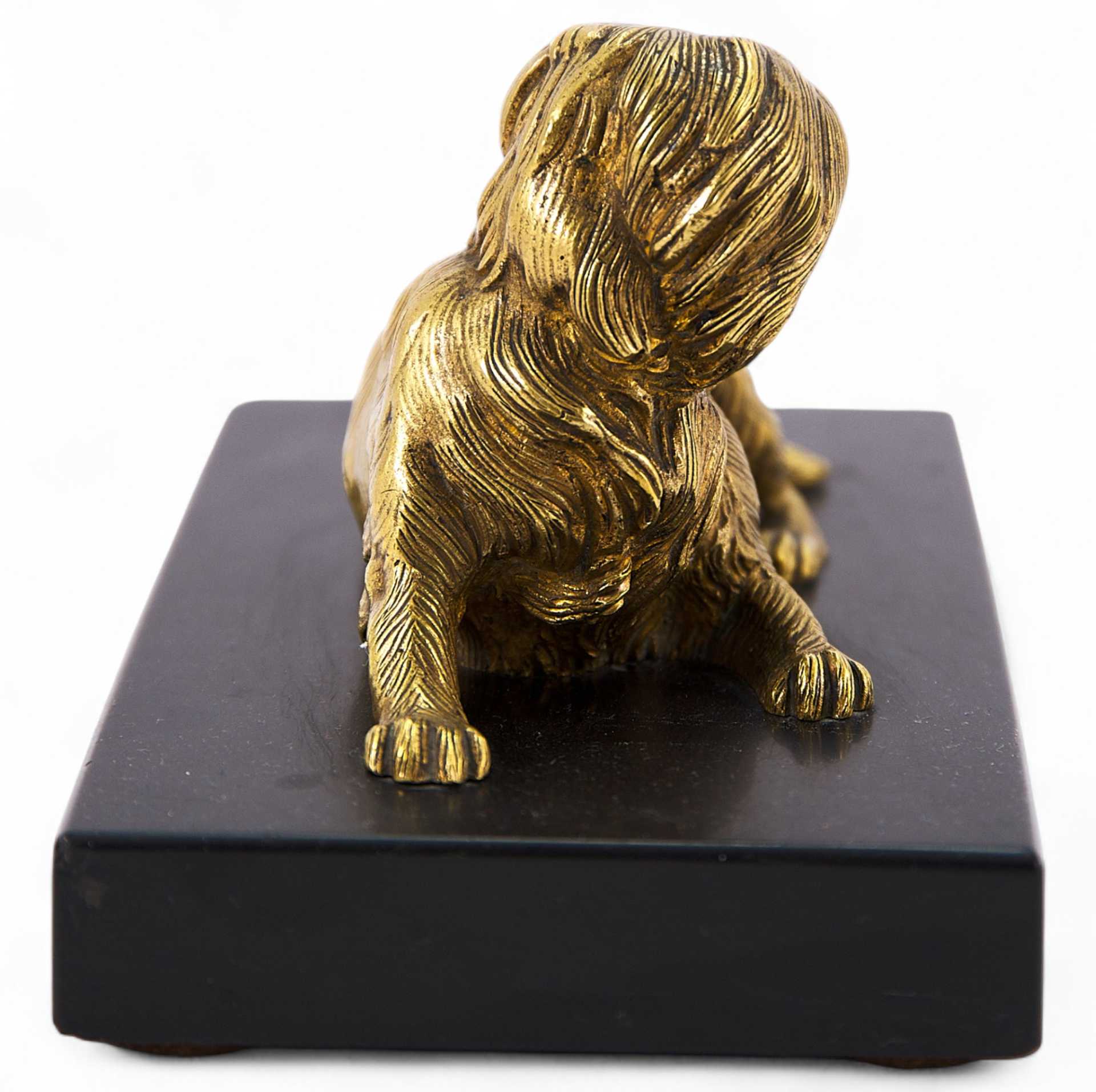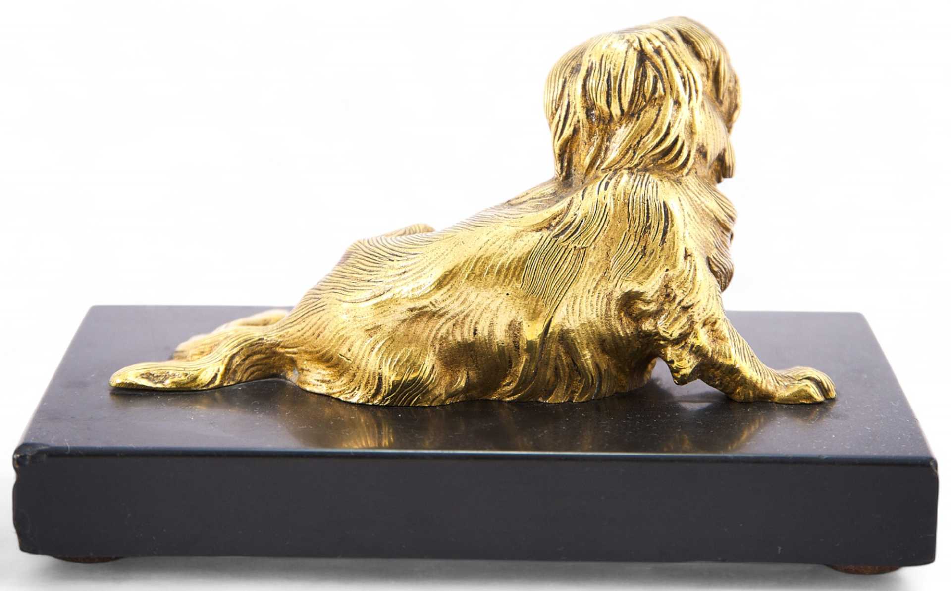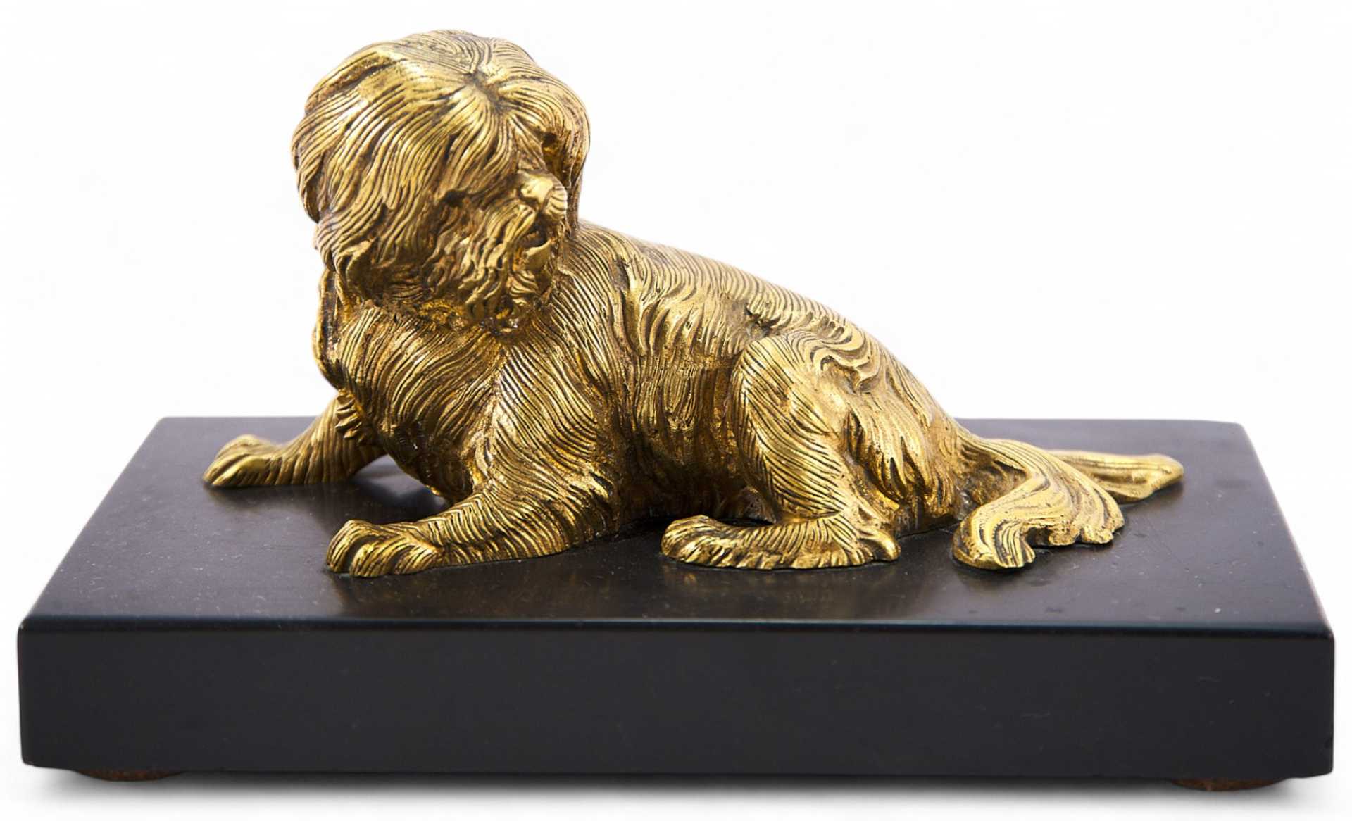 Скульптором умело передано ощущение длинной, волнистой и мягкой шерсти животного, верно выбрана поза, которая показывает движение: собака приподнимается на передних лапах, голова ее повернута влево, задняя лапа отставлена в сторону, хвост спокойно лежит. Кабинетная скульптура подобного рода пользовалась большим спросом в конце XIX века. Произведение выполнено профессиональным скульптором.