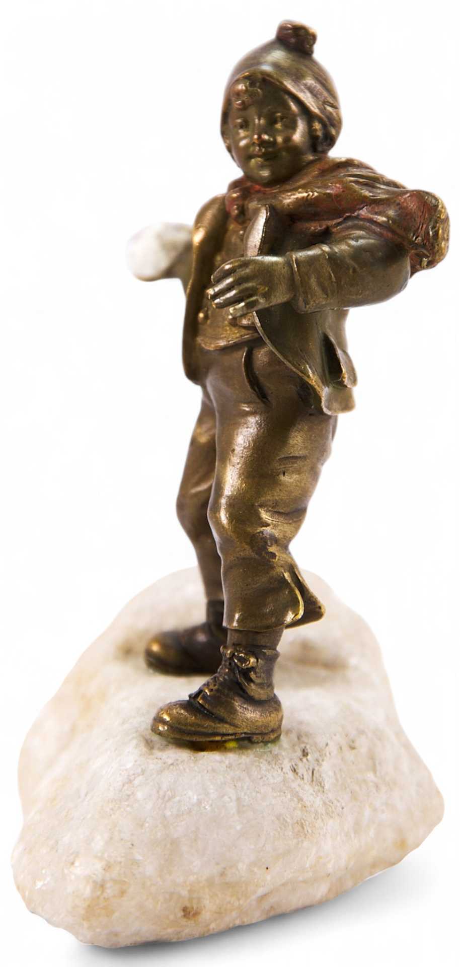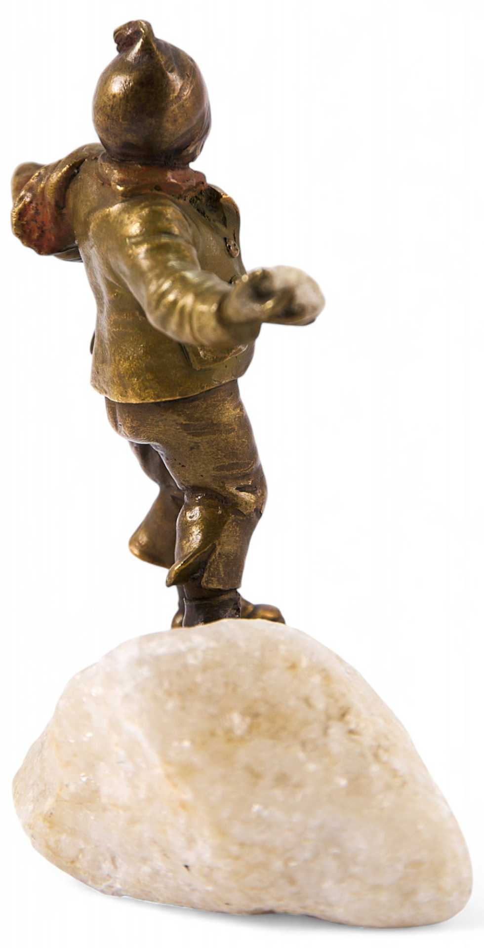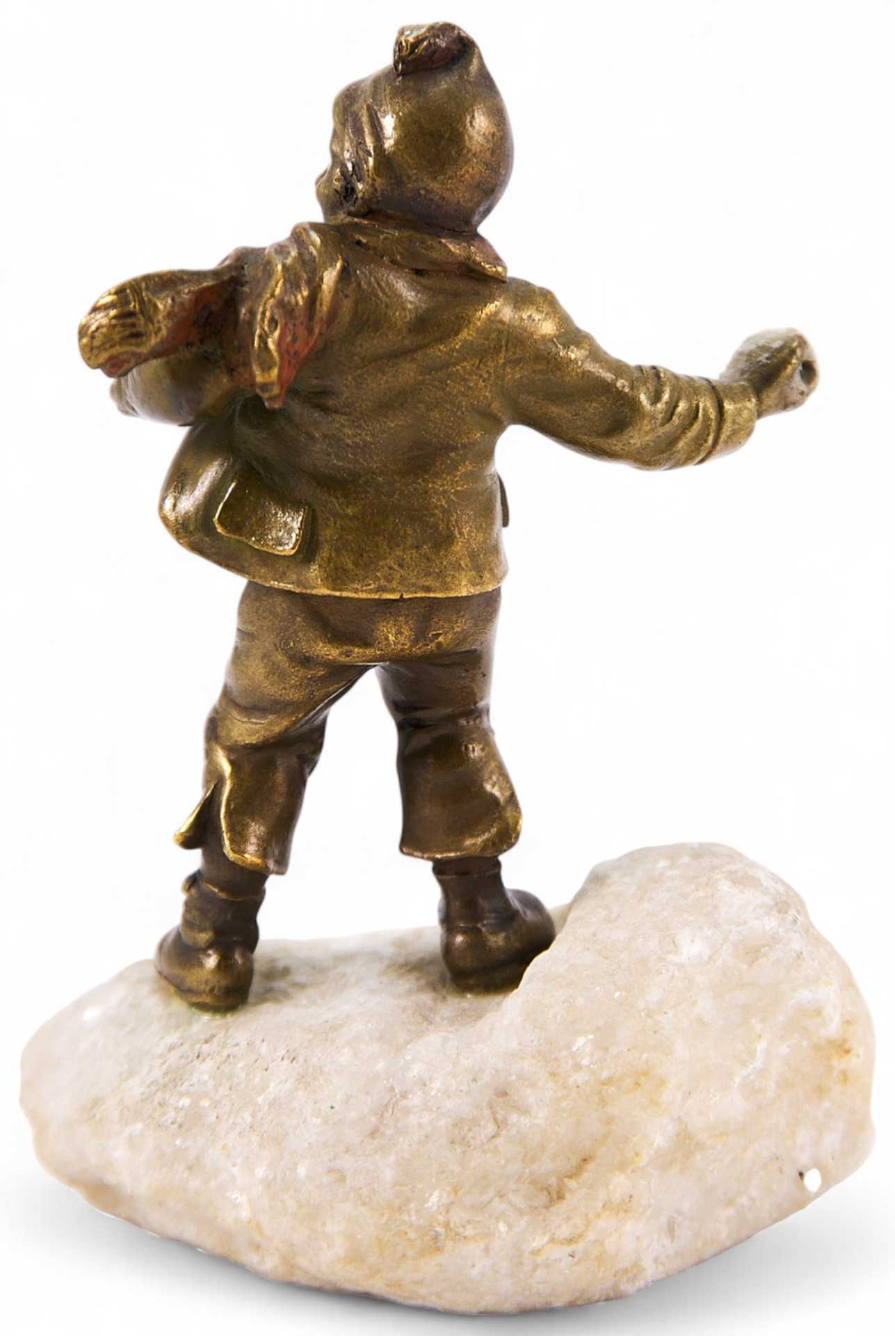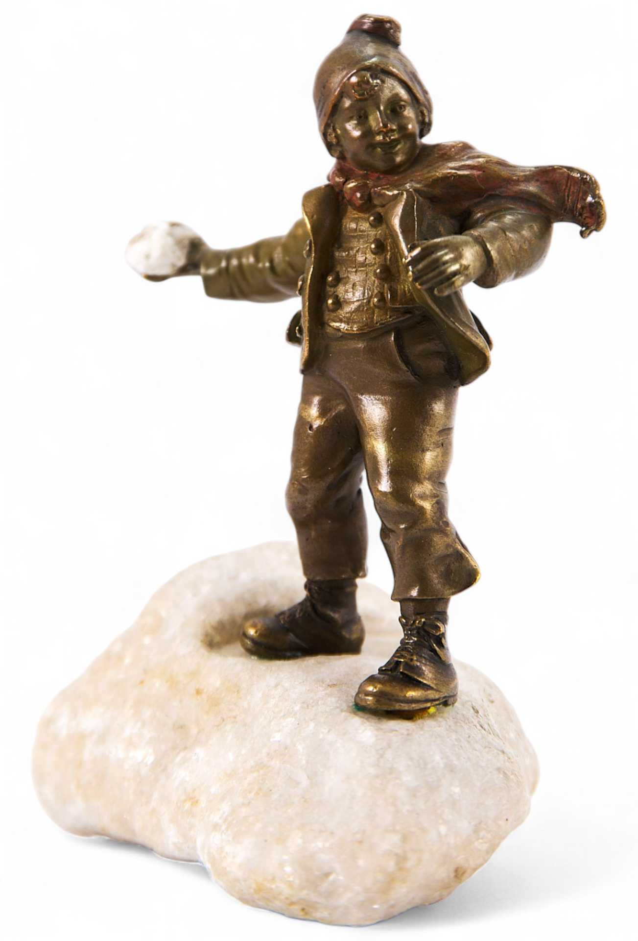 Скульптура мальчика в куртке и шапке с шарфом. В его правой руке снежок, который он приготовился к броску. Скульптура представляет собой типичный пример венской «бронзовой» пластики, довольно популярной в Европе. Венскую бронзу — скульптурную миниатюру, анималистику, небольшого размера жанровые композиции в духе «ориенталь», «кабинетную» эротическую бронзу «с секретом» — искренне любили и коллекционировали самые широкие слои населения с начала ее