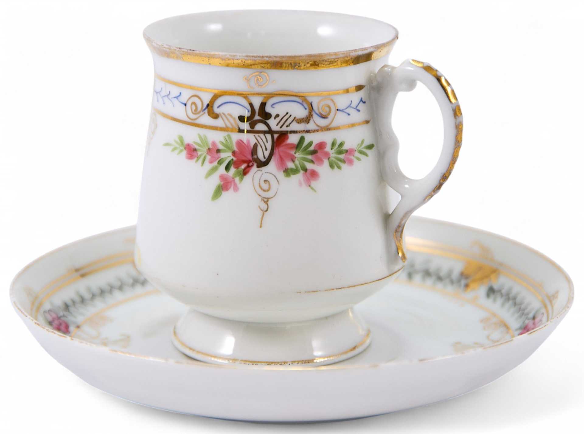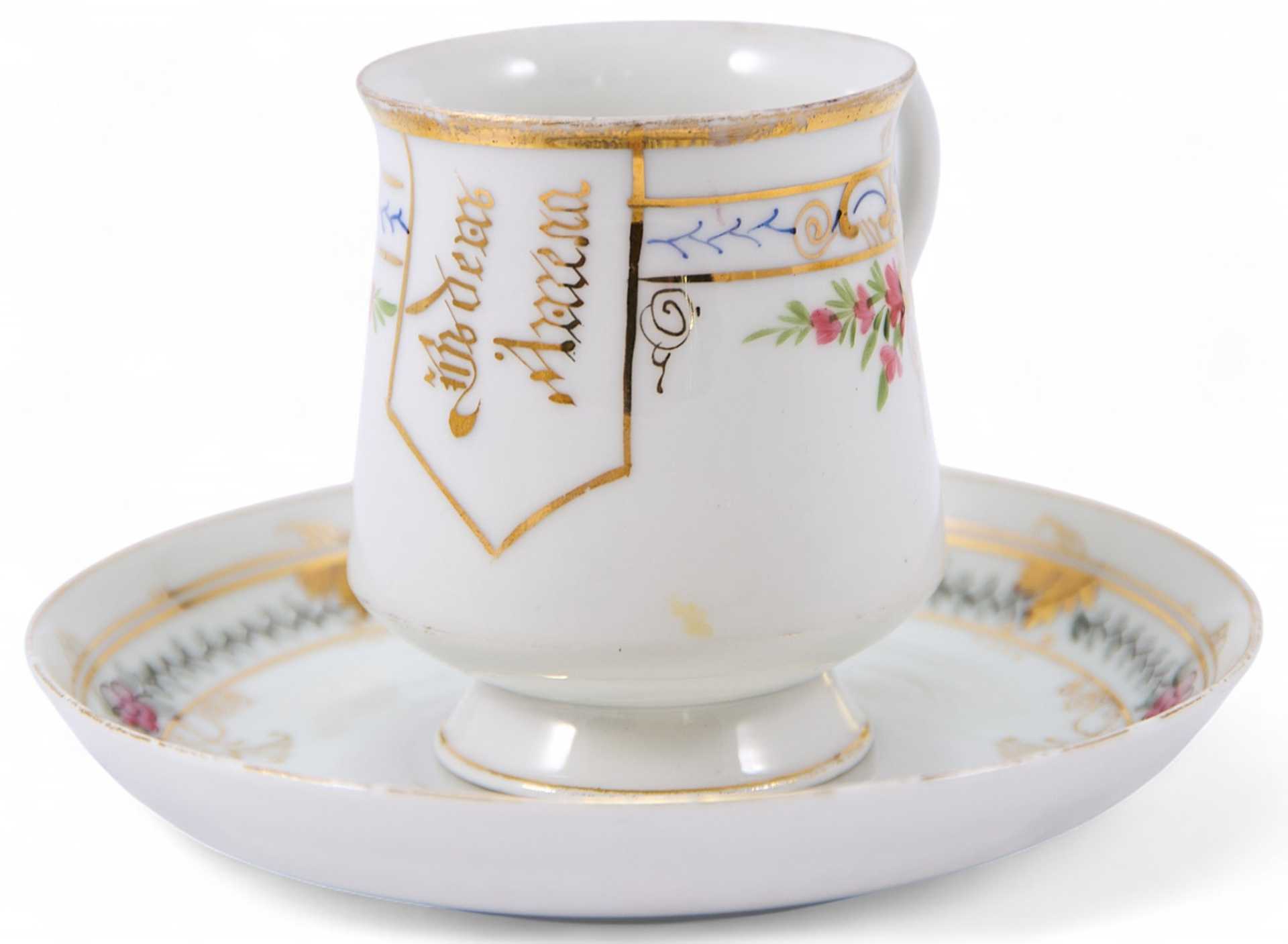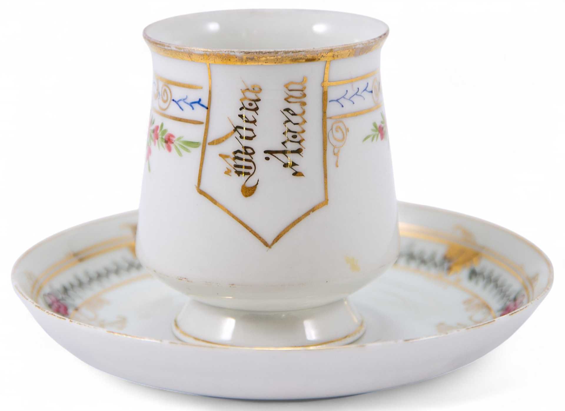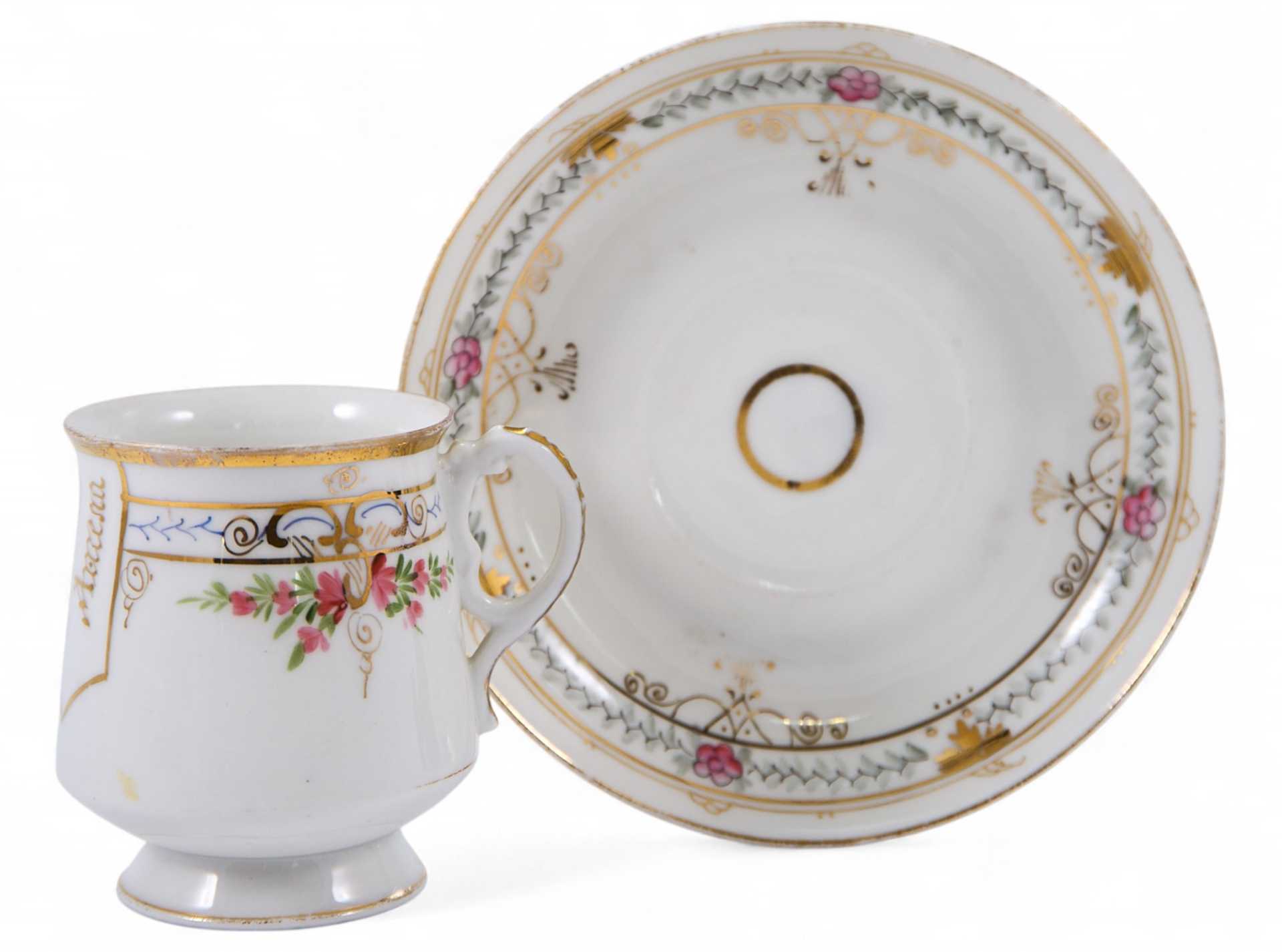 Чашка с блюдцем «В день ангела» Вербилки Дмитровский фарфоровый завод (Вербилки) Начало XX века