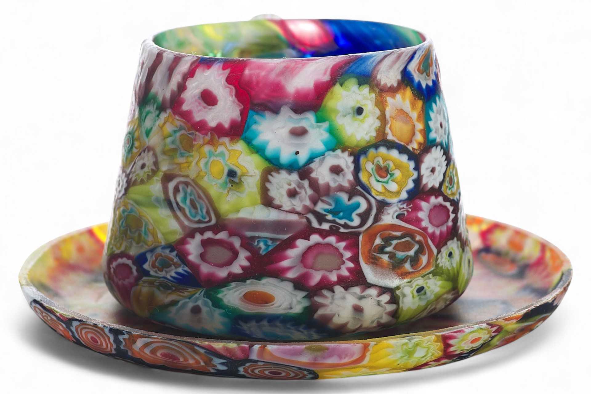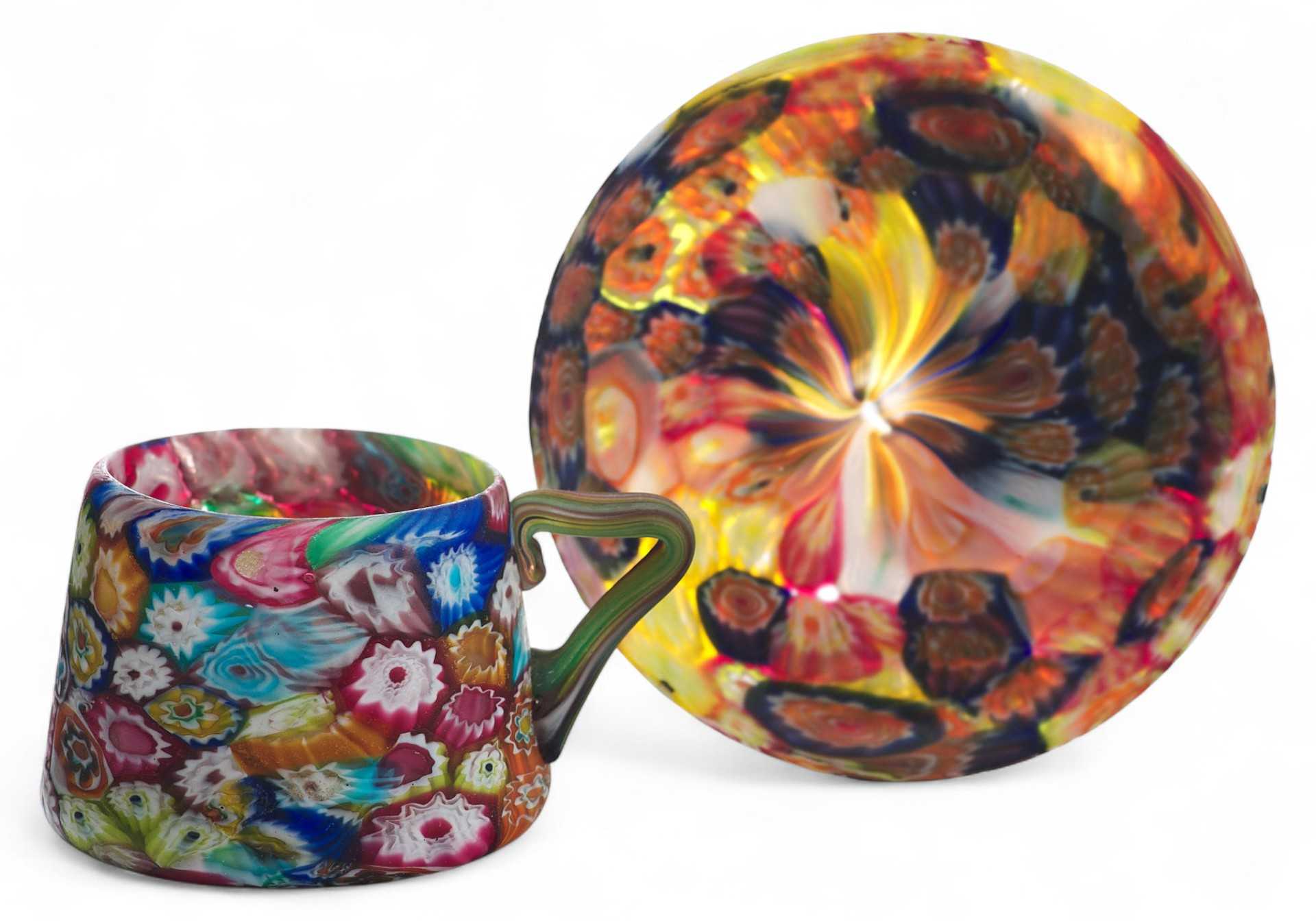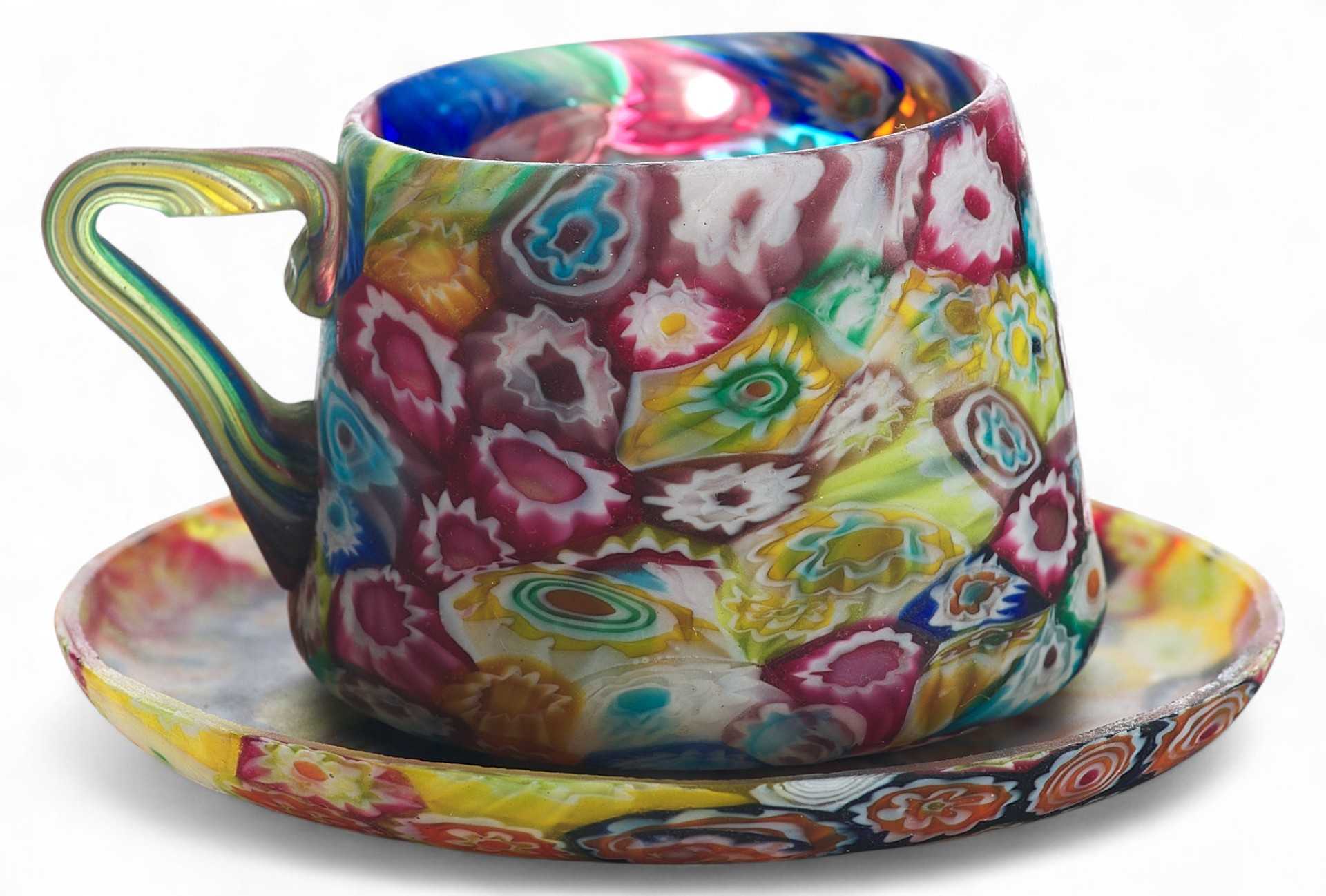 Чайная пара, из цветного мозаичного муранского стекла Мурано конец XIX— начало XХ вв