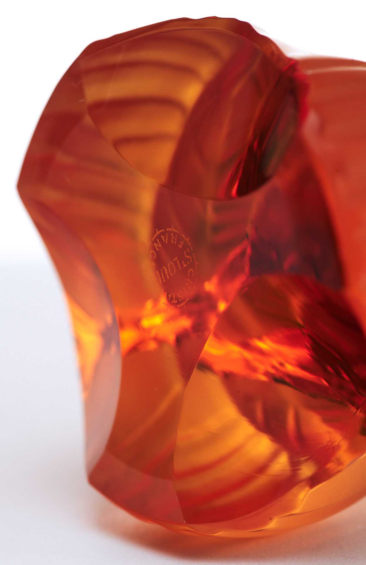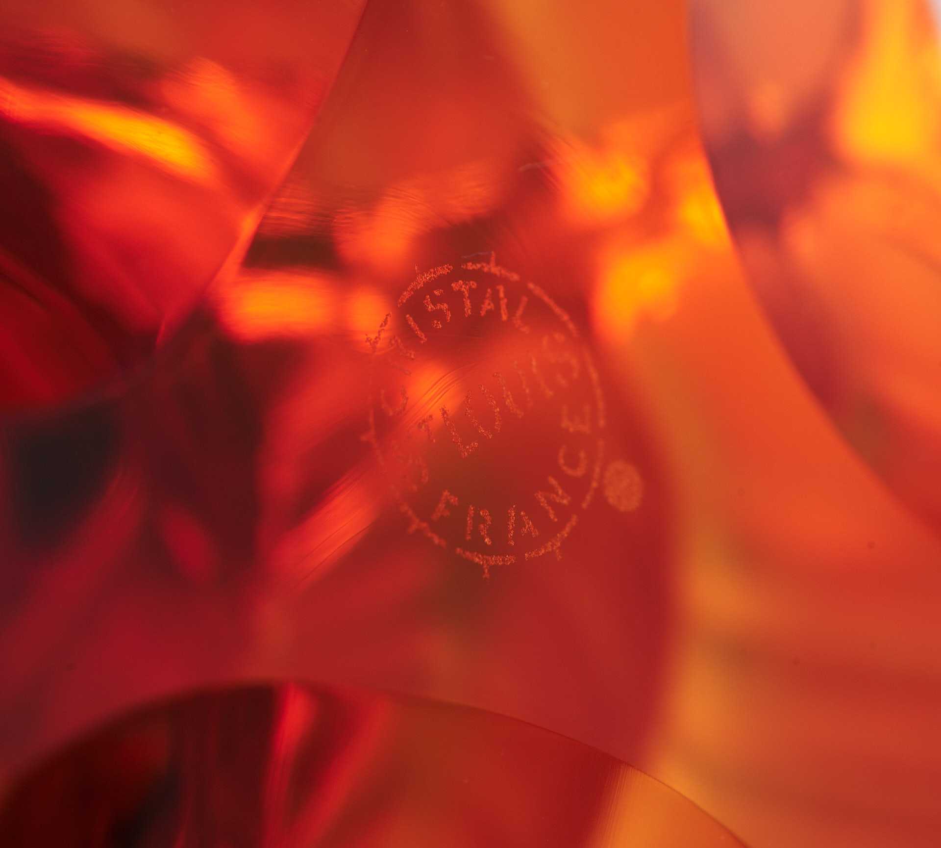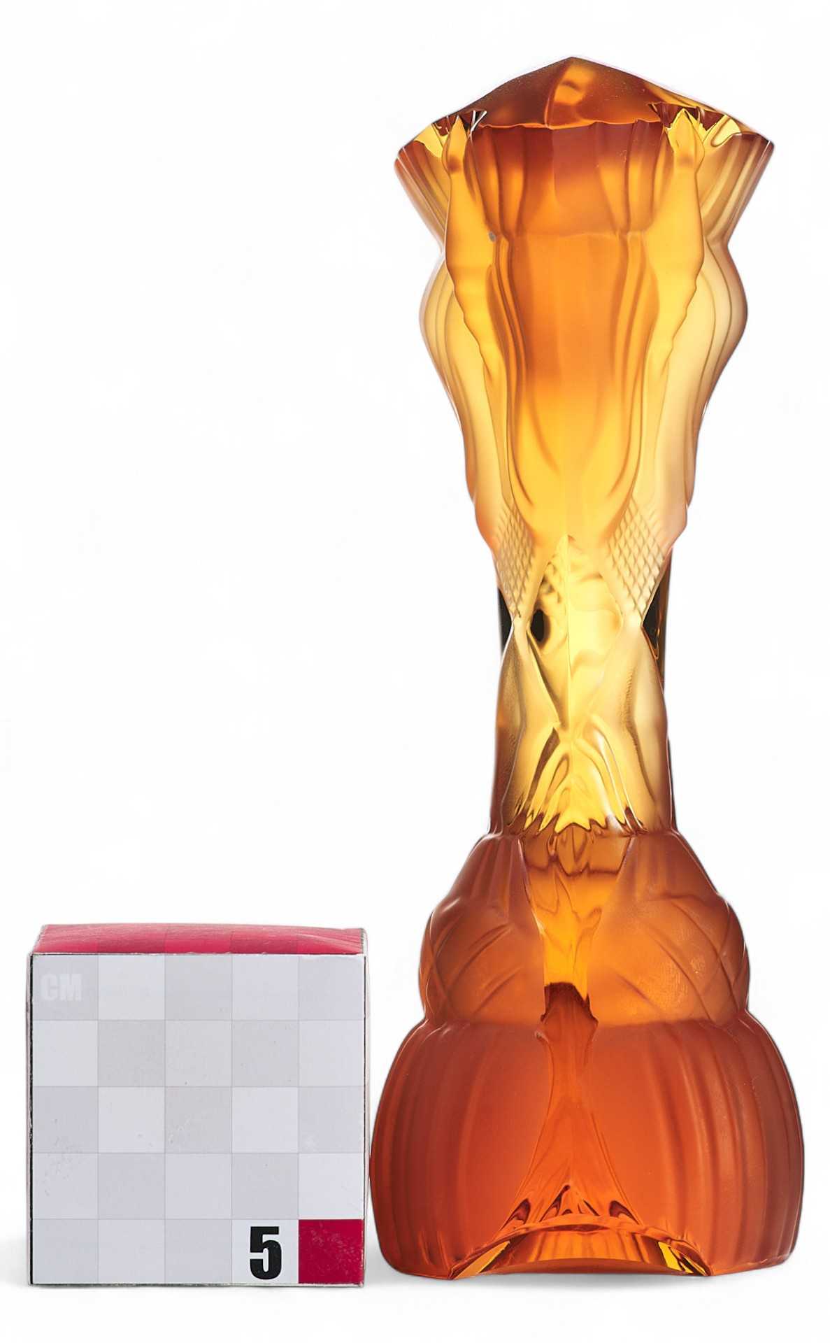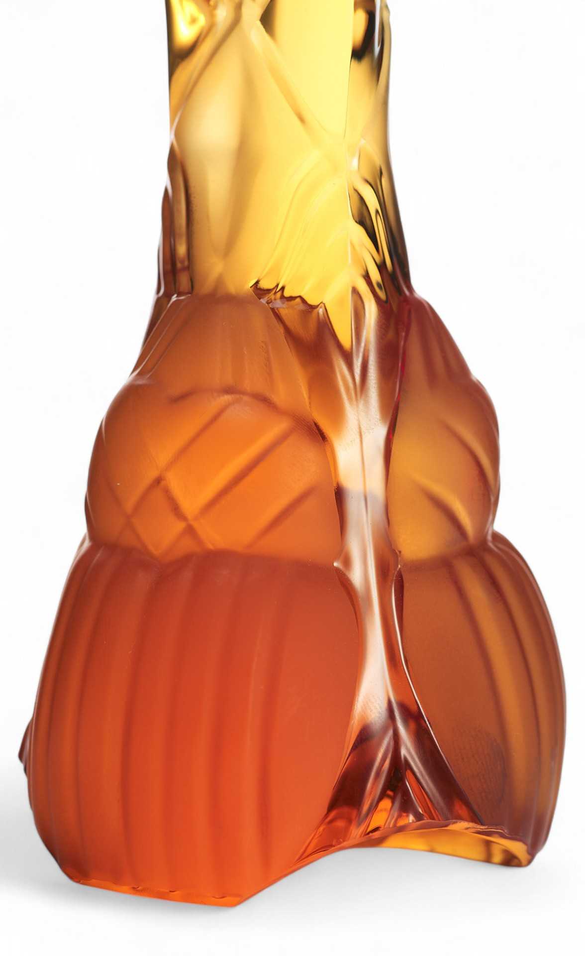 Скульптура из цветного хрусталя желто-красного цвета. У основания она расширена и украшена растительным орнаментом и изображением бабочки. В середине она заужена, а кверху, обретая причудливые формы, расширена. На скульптуре имеется надпись: “Crystal St Louis France”. Скульптура изготовлена на знаменитой французской фабрике Сен-Луи. Первая стекольная фабрика была открыта в 1586 году в районе Сен-Луи-ле-Бише. В 1767 году фабрике присвоили звание Verrerie Royale-Louis (королевская фабрика). Через пятнадцать лет Франсуа де Бофор создает особую формулу, по которой начинает производить хрусталь. После этого завод обрел новое имя - Christallerie Royale de Saint-Louis. С 1782 года фабрика стала лучшей в производстве стекла во всей континентальной Европе. В настоящее время ассортимент компании широк - это и посуда из хрусталя, вазы, люстры, подсвечники и пресс-папье. Все изделия делаются вручную. Цветовая палитра Сен Луи насчитывает 15 различных цветов.