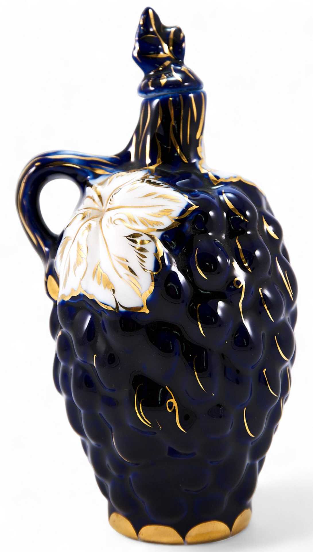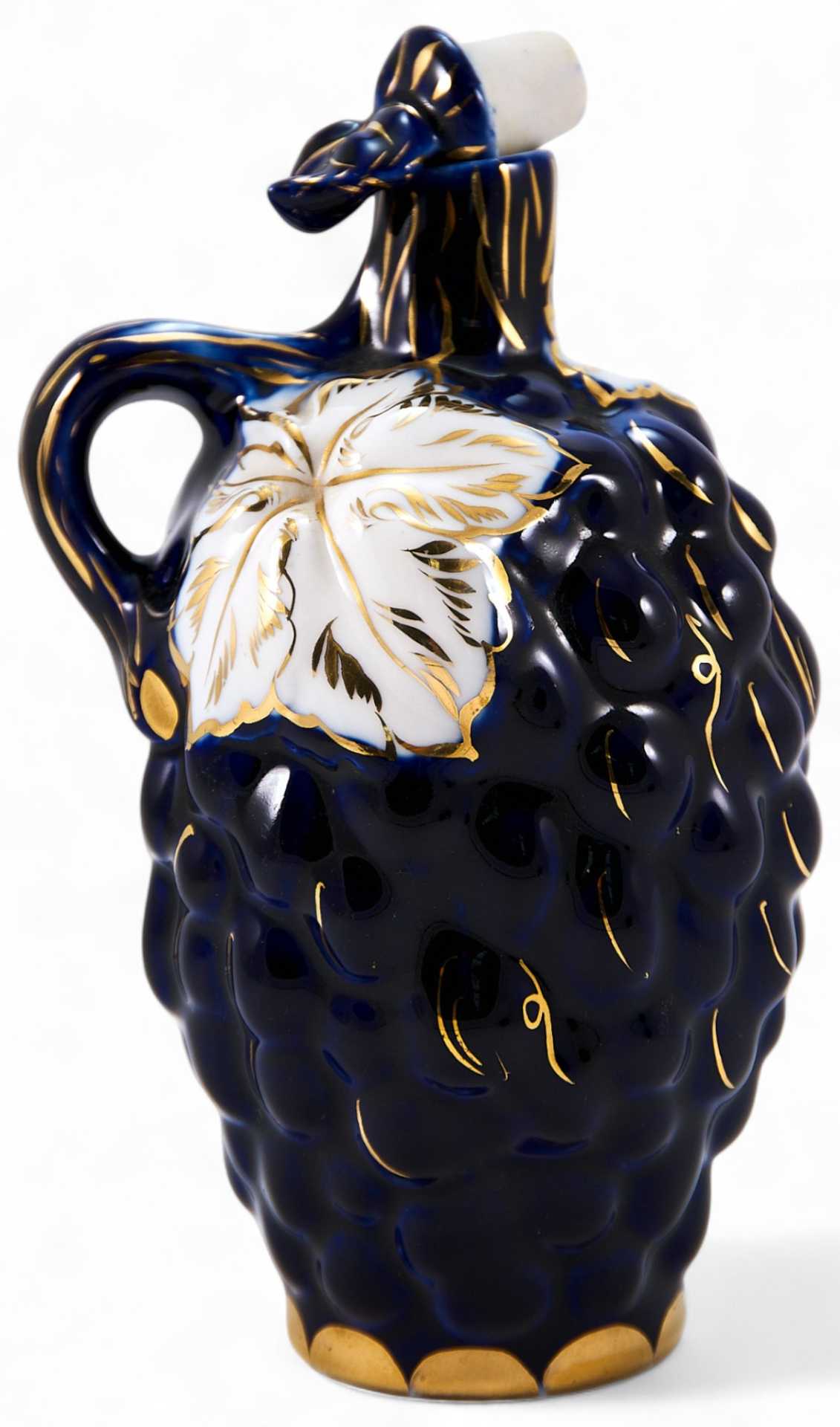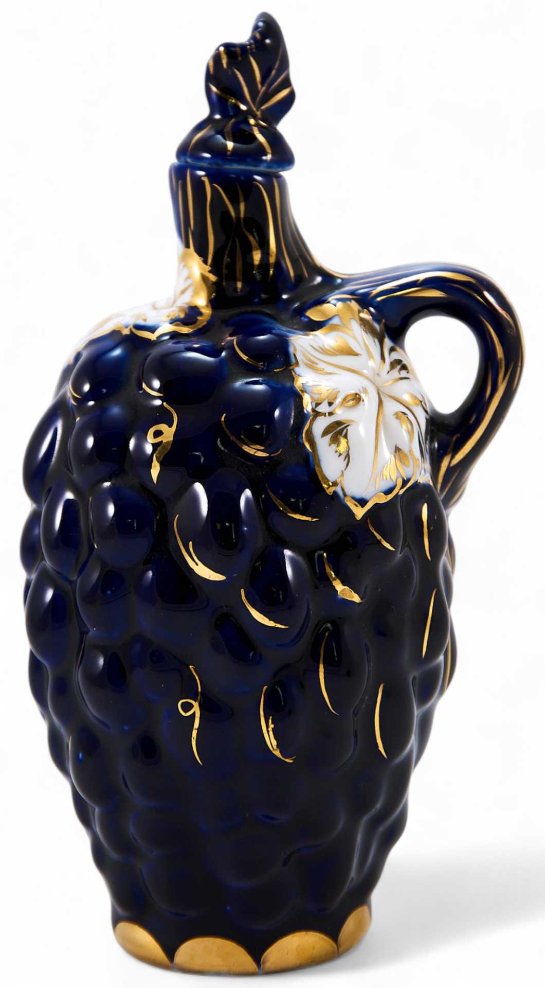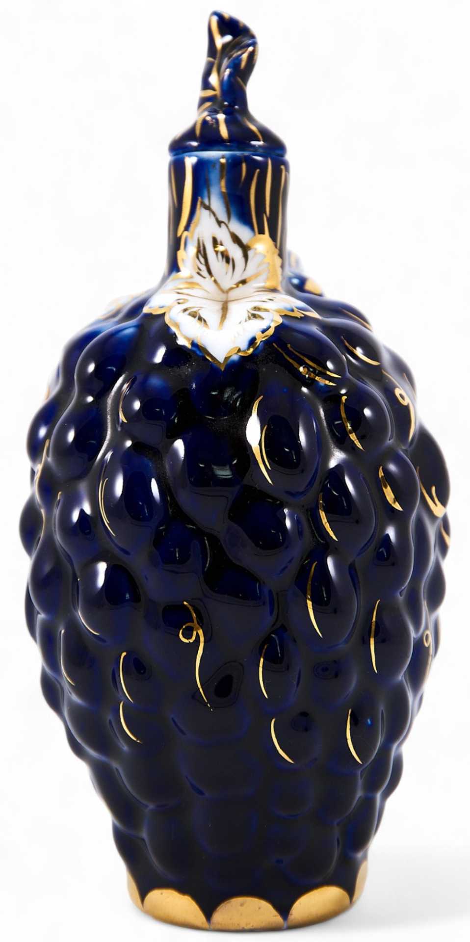 На дне кувшина присутствует марка Ленинградского фарфорового завода «ЛФЗ» (синяя, печатная, подглазурная), ставившаяся с 1930-х гг. по настоящее время. Кувшин для вина «Виноград» стилизован под виноградную гроздь.