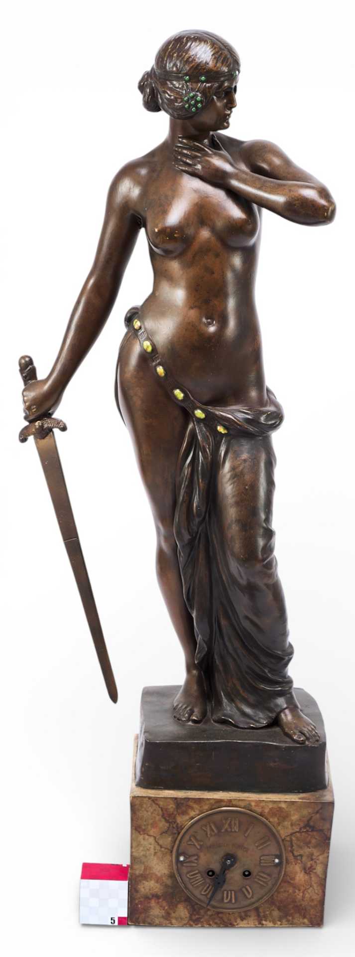 На циферблате часов надпись: «Friedrich Winter». Юдифь - одна из героинь Ветхого Завега, благочестивая красавица - вдова, спасшая родной город от разорения войсками вавилонского царя " Навуходоносора. Рискуя жизнью, она пробралась в