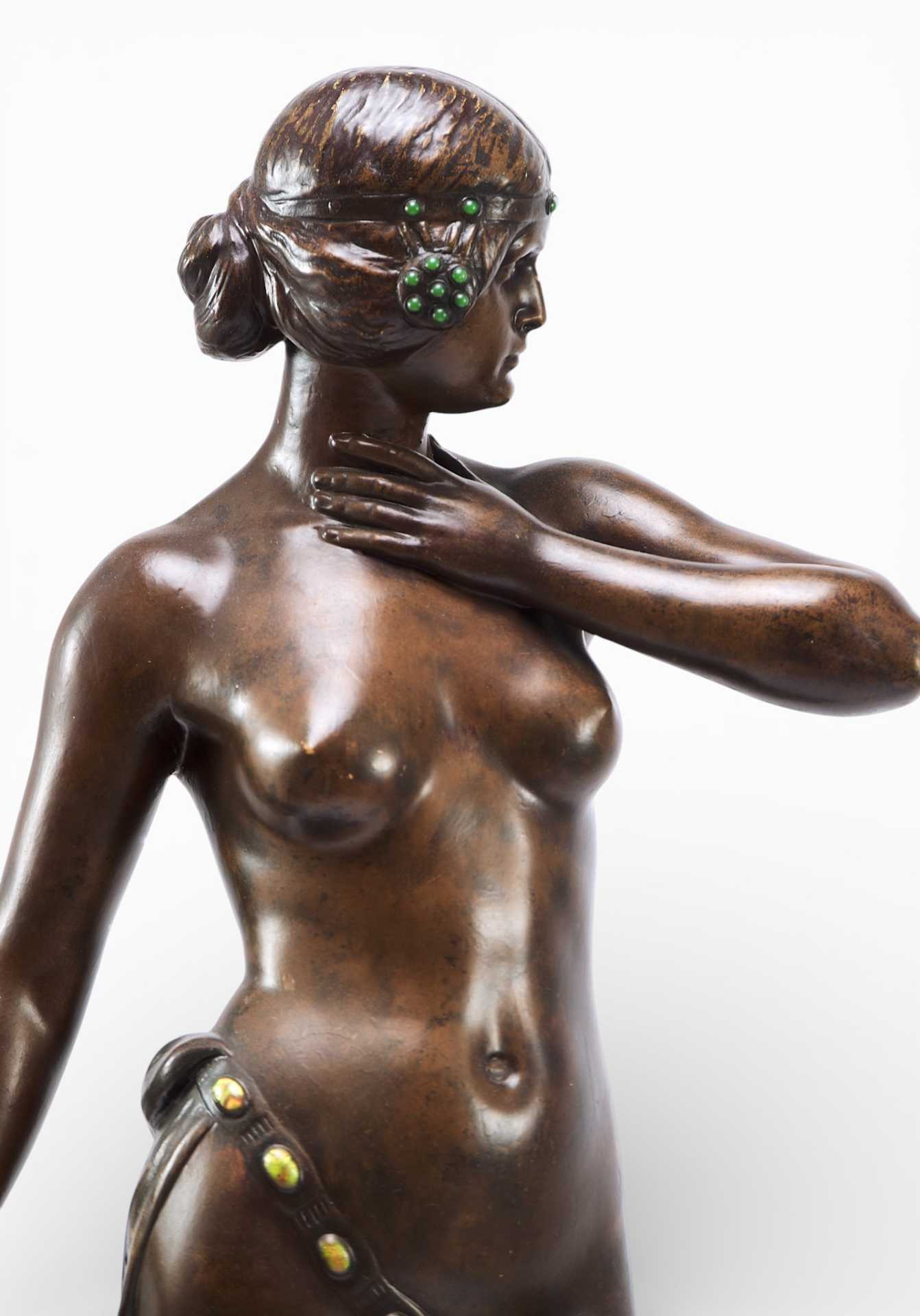 Представлена скульптура представляющая полуобнаженную Юдифь. На основании авторская подпись: «Lato. На обороте постамента клейма керамической мастерской Фридриха Голдшейдера и серийный номер: «Friedrich Goldscheider. Vienn», «Febrique en Autriche» (Изготовлено в Австрии), клеймо герба Австро Венгерской империи - двуглавый орел.