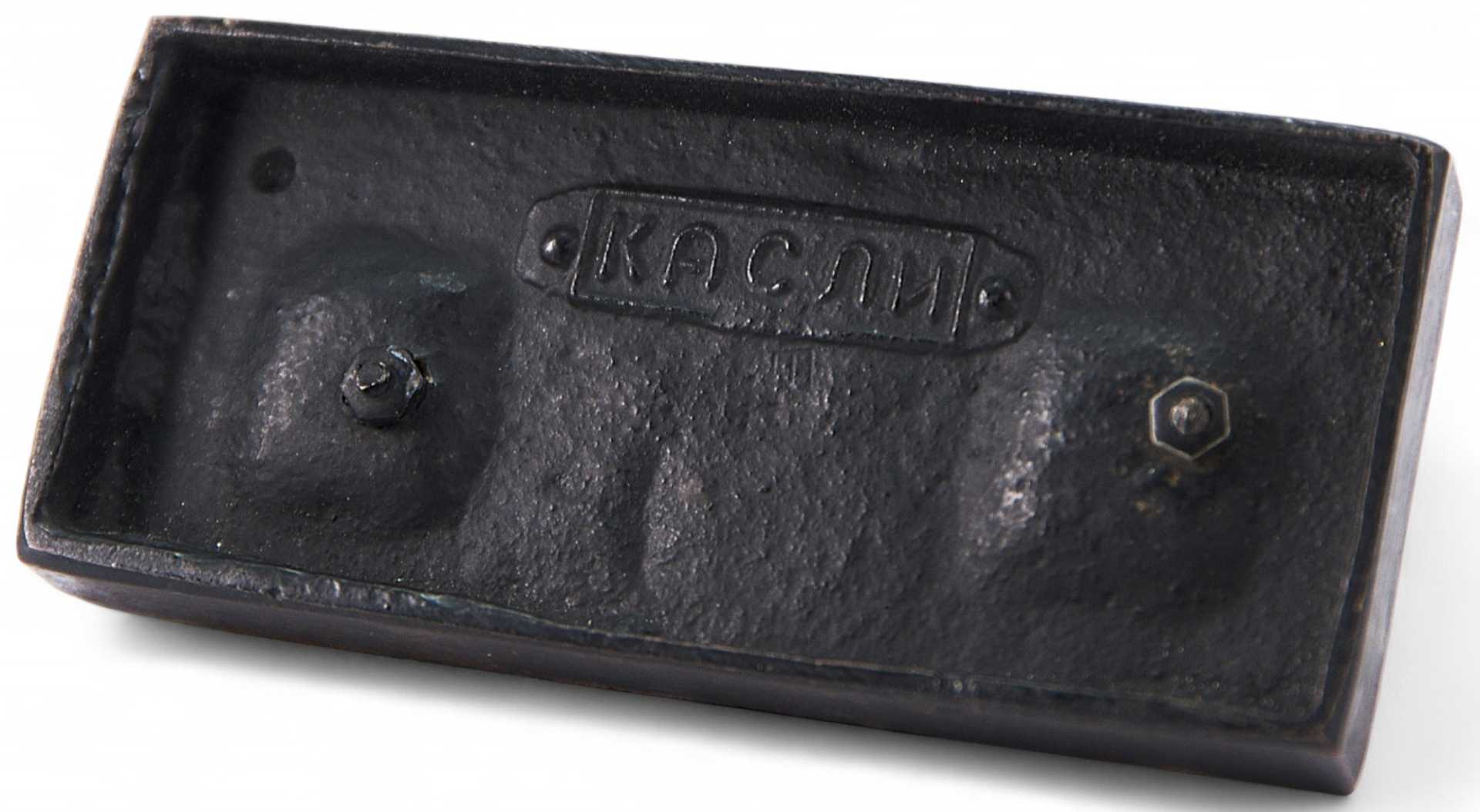 С точки зрения художественных достоинств, каслинское литье эталонно как образец историзма, и в контексте именно этого стиля лежат все оценочные приоритеты этого вида прикладного искусства. При коллекционировании и собирательстве каслинского чугунного литья, при его позиционировании на антикварном рынке крайне важным становится знание того, по каким модельным образцам выполнена вещь и насколько она редка. Приэтом необходимо учитывать, что основную массу ассортимента каслинского литья” составляла не сложная объемная скульптура, а плоскостное рельефное и ажурное литье - пепелльницы, лотки,прессы для бумаг,ножи для писем, рамки для фото, подсвечники, подчасники, кронштейны (бра) и т.д. Изготовление предмета на Каслинском чугунолитейном заводе подтверждается.