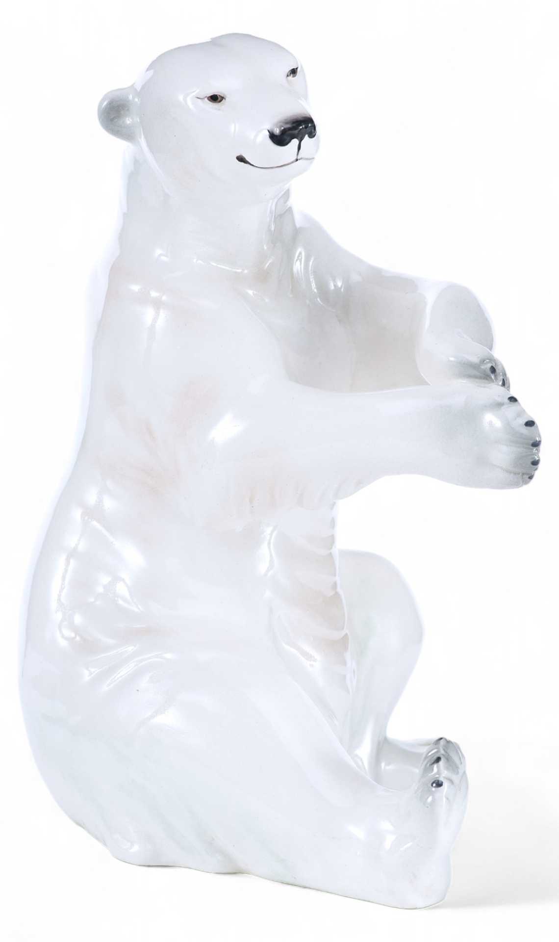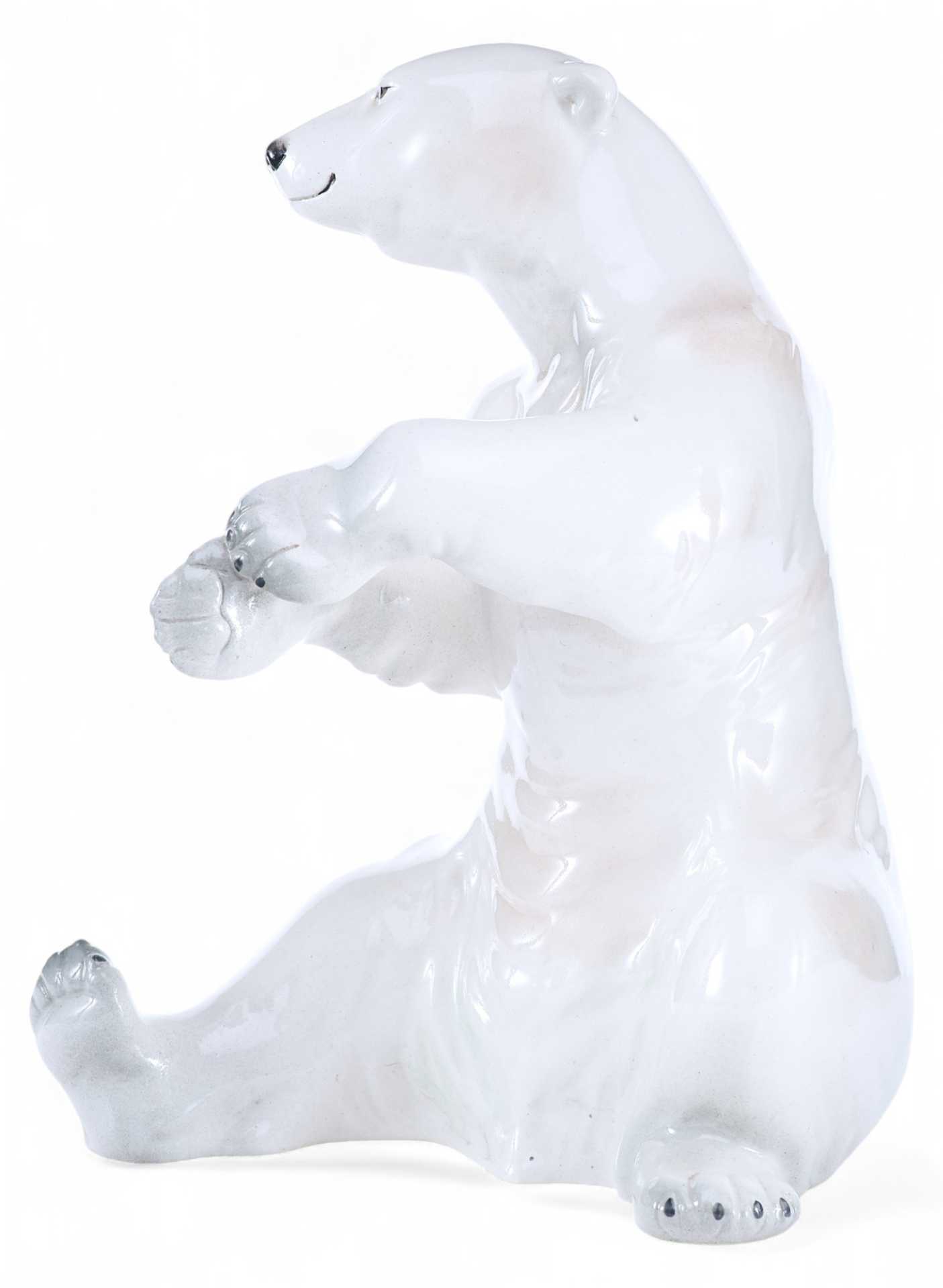 Фарфоровая скульптура Полярный медведь фабрика Metzler & Ortloff Тюрингия высота 22,5 см. На основании скульптуры имеется клеймо «в тесте»: «Grániz».