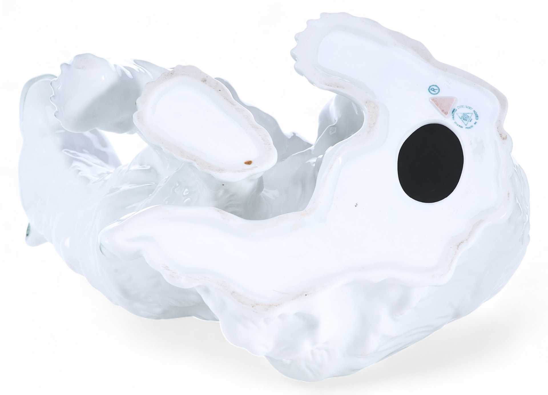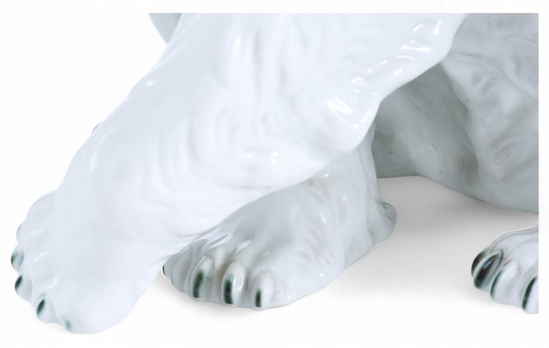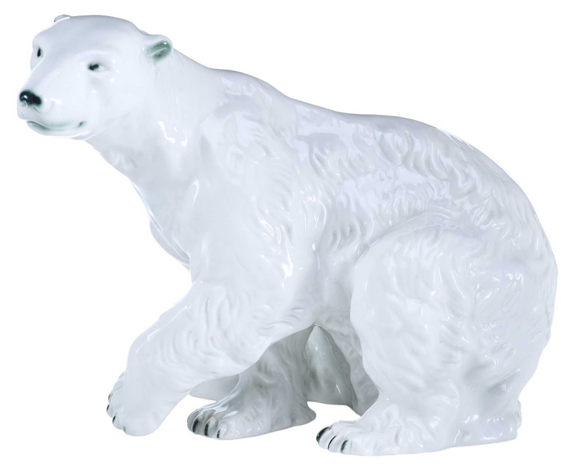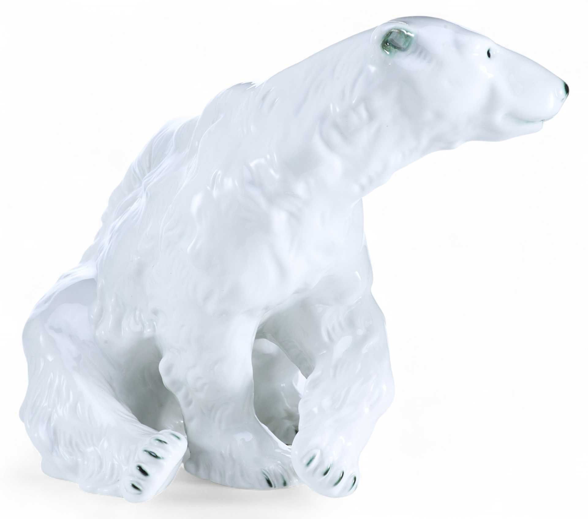 Скульптура белого медведя. Скульптура относится к продукции фарфоровбй фабрики oy al Dux в период с 1946 по 1990 гг., обозначение - ® (сертифицированный товарный знак). «В тесте» производственные обозначения: «398/17434».Фарфоровая фабрика Royal Dux (Чехословакия). 1790-е гг. в регионе Карловы Вары обнаружены крупные месторождения каолина и начато производство фарфоровых изделий. Особенно быстро производство керамики развивается в районе г. Теплице. В 1853 г. основана мануфактура Royal Dux в г. Духов. После первых робких попыток производства керамики из сырья, добытого в ближайших окрестностях, завод был куплен Эдуардом Эйхлером и переименован в фирму Е. Eichler ThonwarenFabrik. Мануфактура переживала период расцвета, и товары, произведенные в основном из терракоты, майолики, фаянса и были в жанре фабрик Копенгагена, Вустера и Севра. В 1873 г. фирма Эйхлера была награждена серебряноймедалью на выставке в Париже. Начало производства первых фарфоровых изделий. 1900 г. был придуман традиционный торговый знак, который используется по сей день. В 1904 г. фарфоровый заводRoyal Dux был награжден Гран-при на всемирной выставке в СентЛуисе. В 1906 г. серебряная медаль на выставке в Милане и золотая медаль на выставке в городе Либерец в Чехии. В этот периодмануфактура была обязана своим успехом главным образом дизайнеру Алоису Хампелю. В 1947 г. фабрика была национализирована и слита с другими фарфоровыми фабриками (Eichwald Porcelain, Stove Factory, Count Thun Porcelain Factory) в единый концерн - Duchovske Porcelán. Фабрики слитые в концерн продолжали использовать прежние клейма на своей продукции, с дополнительной литерой «D». Прежний заводRoyal Dux создал свой собственный центр подготовки учеников в Государственной школе керамики в г. Теплице и был вновь открыт. Тесное сотрудничество сВысшей школой искусств вПраге в значительной степени способствовало его дальнейшему развитию и помогло сохранить огромные масштабы производства. Уже к 1950-м гг. концерн начал восстанавливать утраченные позиции на мировом рынке.