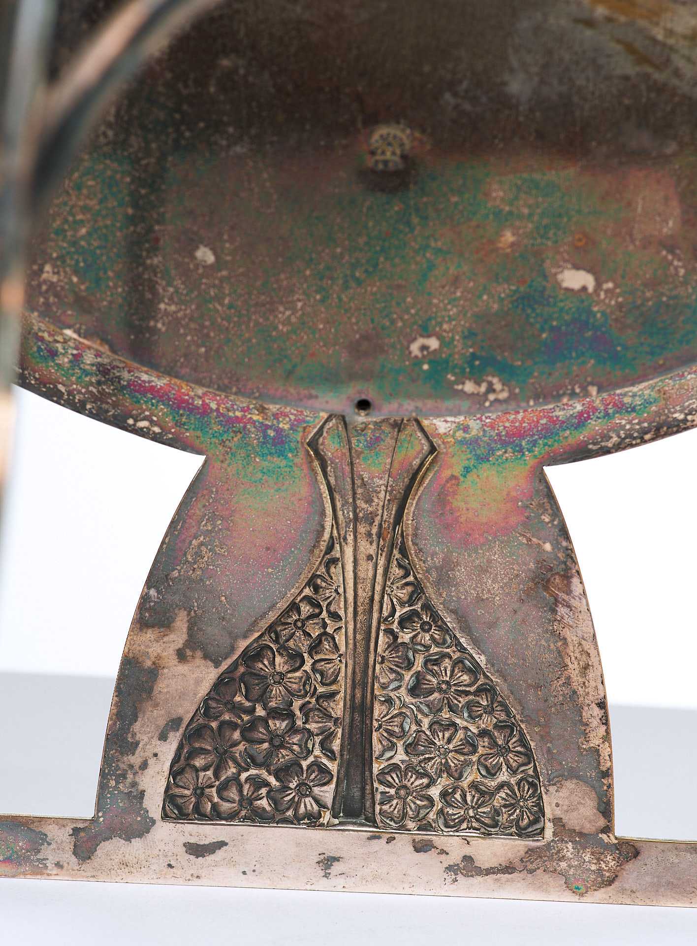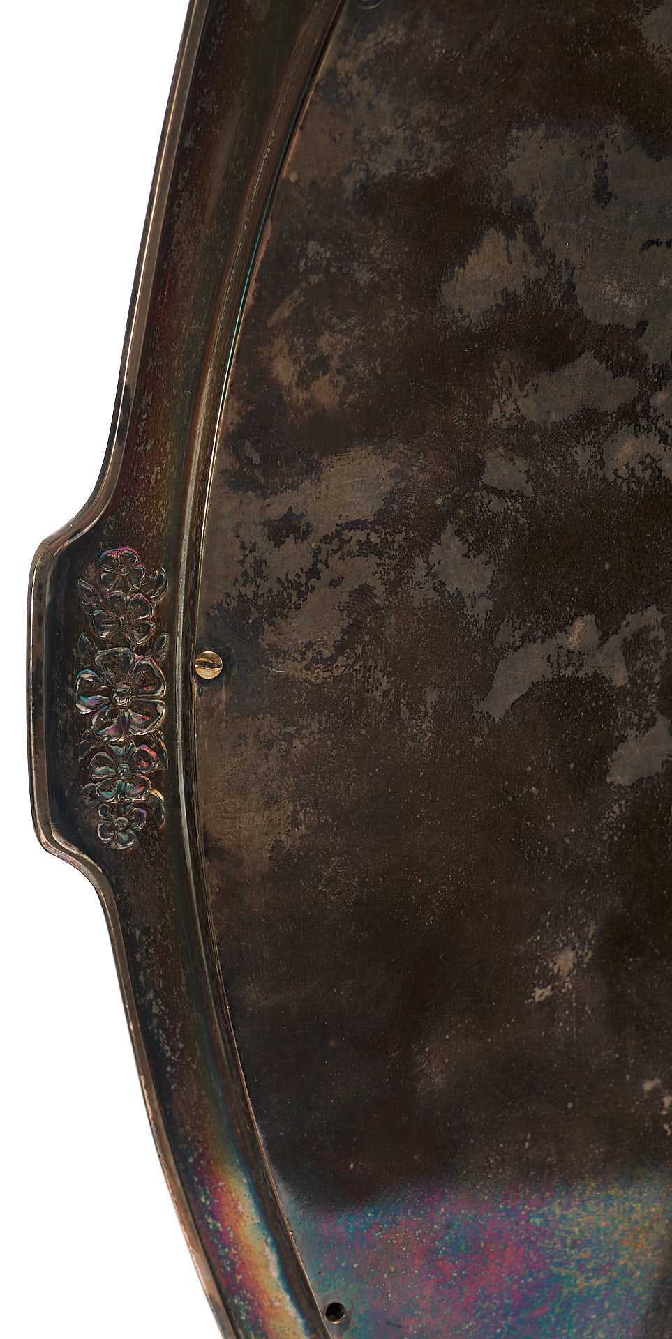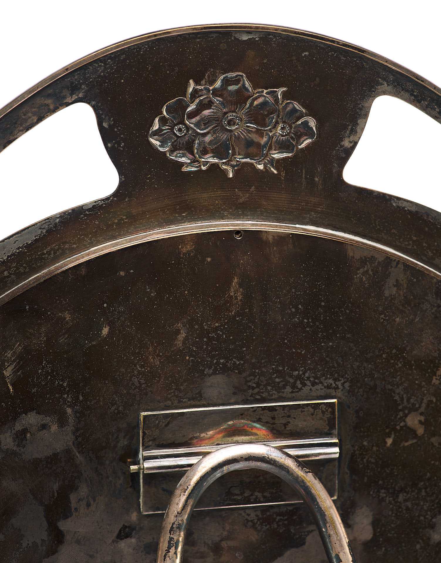 На зеркале имеется клеймо: «ARGENTOR», три пирамидальных треугольника, AS. Argentor Werke Argentor-Werke Rust & Hetzel -кооператив художников со штаб- квартирой в Вене. История компании восходит к 1863 г. В 1902 фабрика перешла от предшественника компании С.А Münchmeyer & Ко Argentor к современным Rust & Hetzel.
