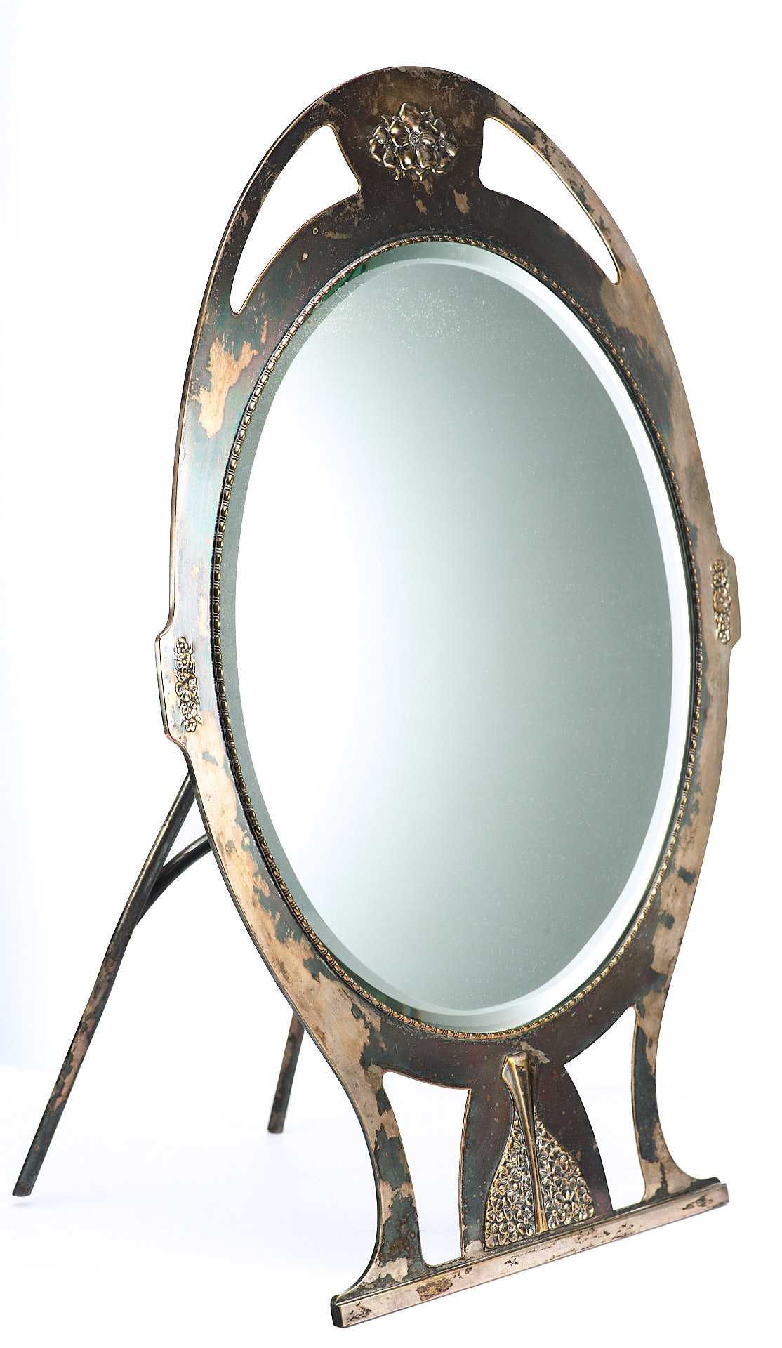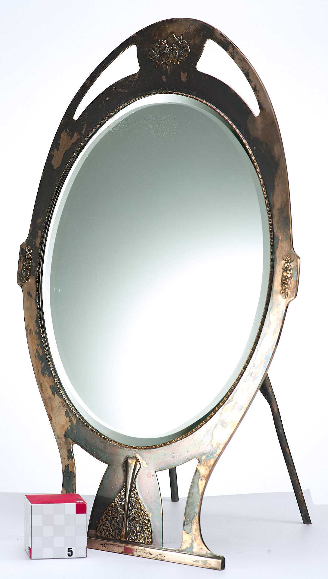 Представлено овальное зеркало в раме, соответствующее стилевым признакам немецкого направления модерна - югендстиля.