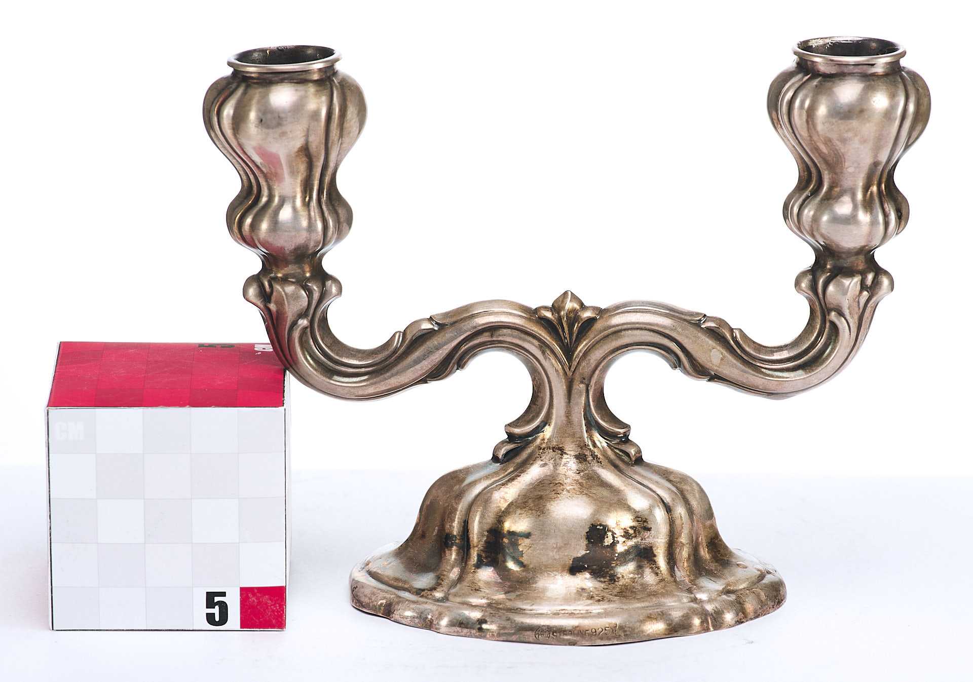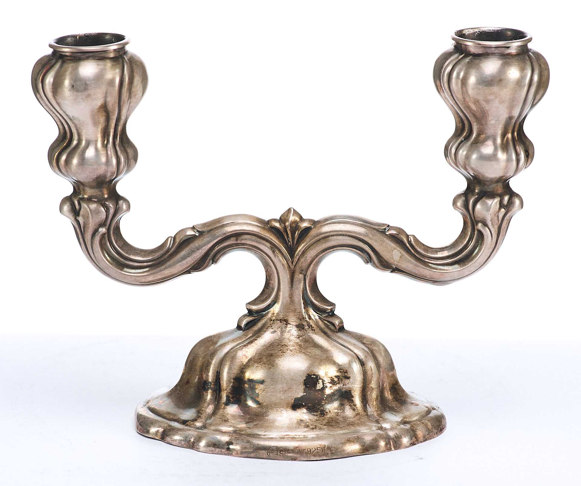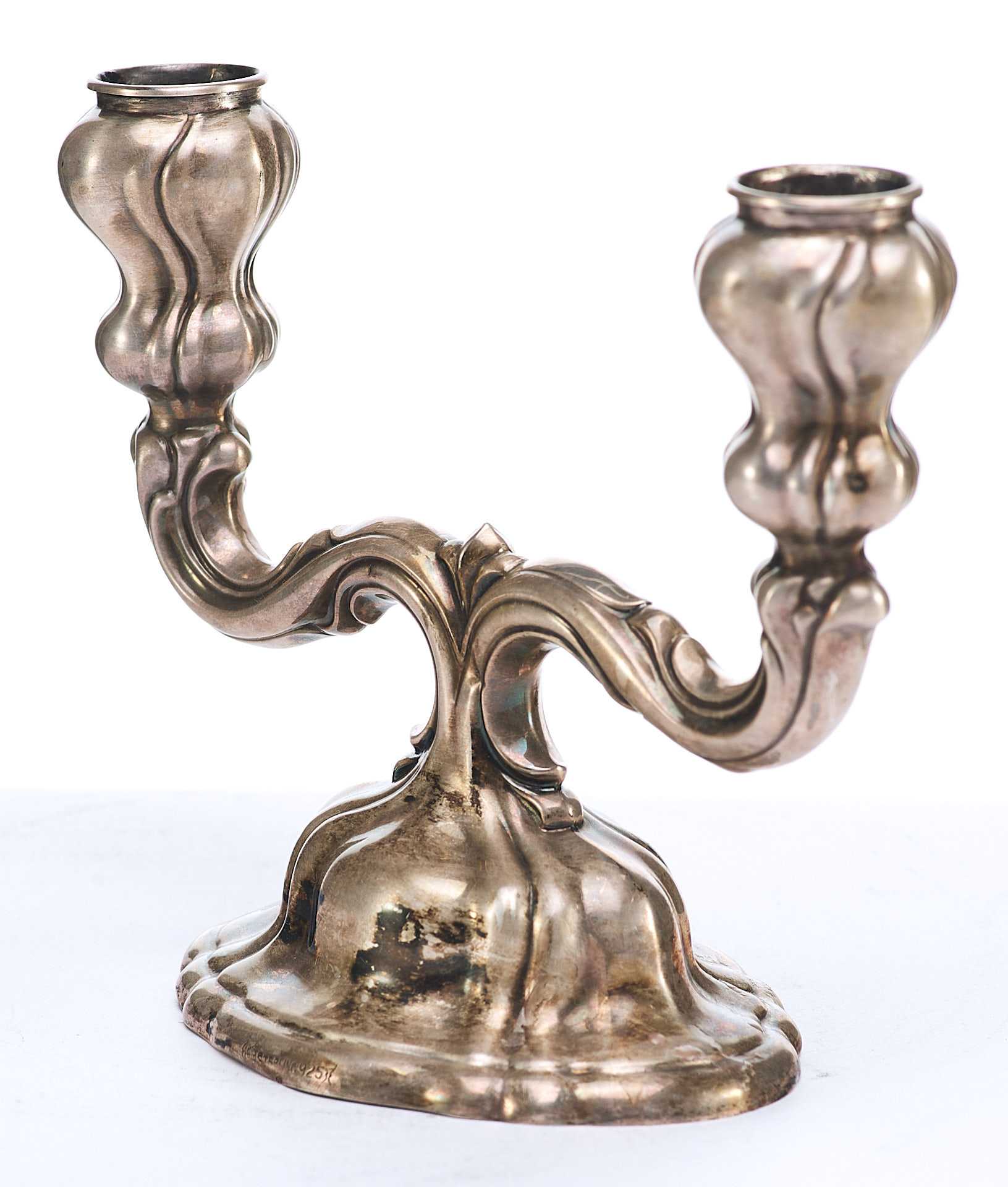 Представлен серебряный подсвечнк на 2 свечи. Дизайн периода с 1890 по 1920 годы. Стилистика ар-нуво .