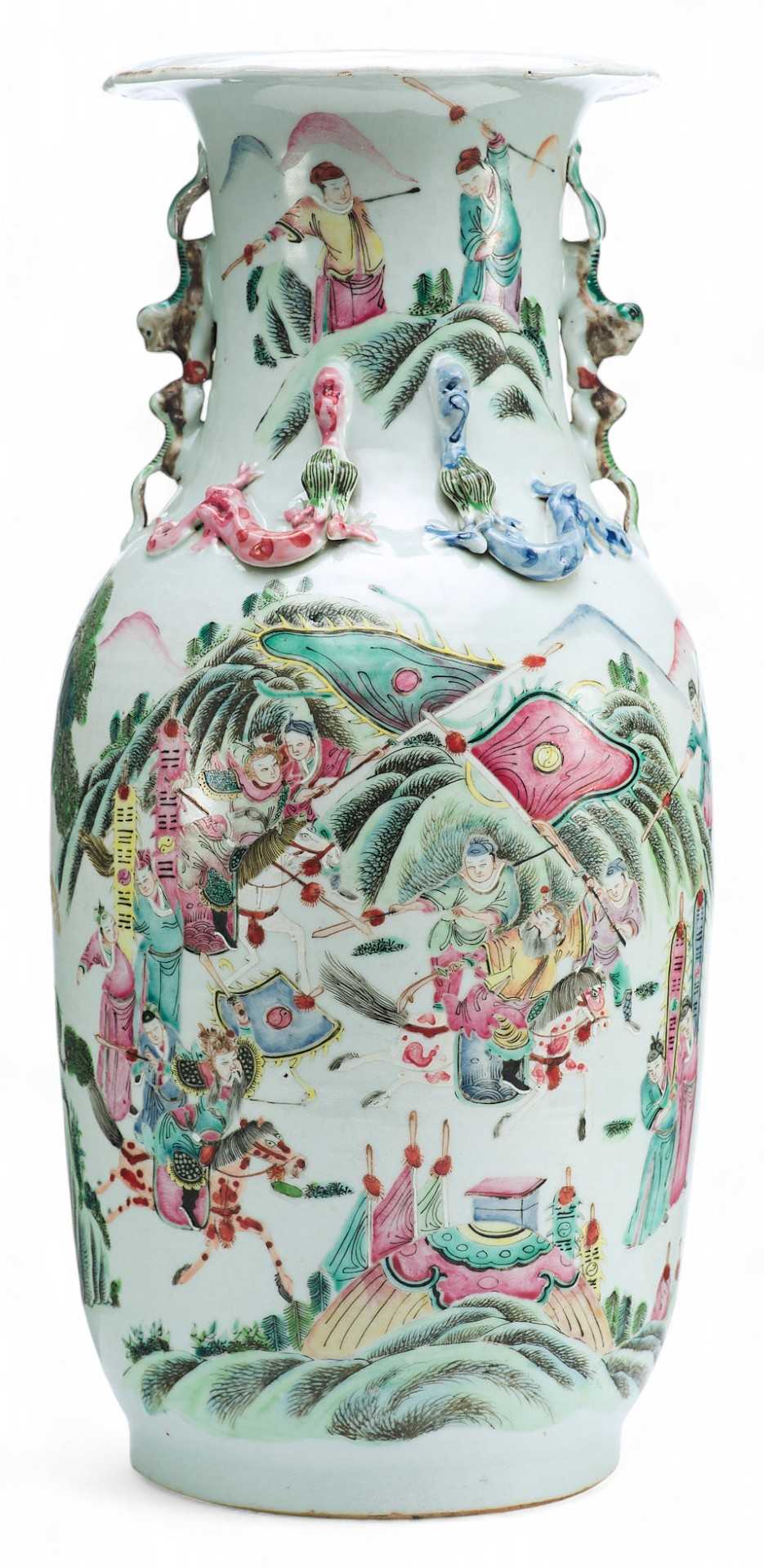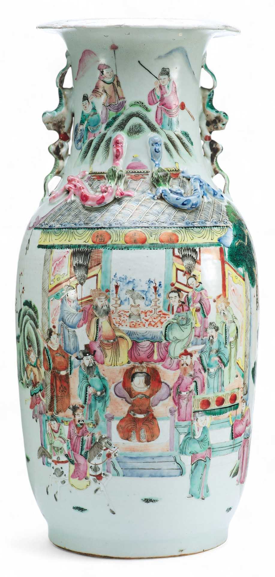 Представлена ваза, расписанная эмалевыми полихромными красками. На Тулове вазы изображена одна из китайских церемоний.