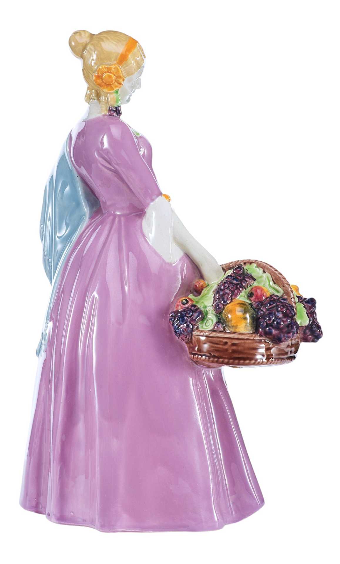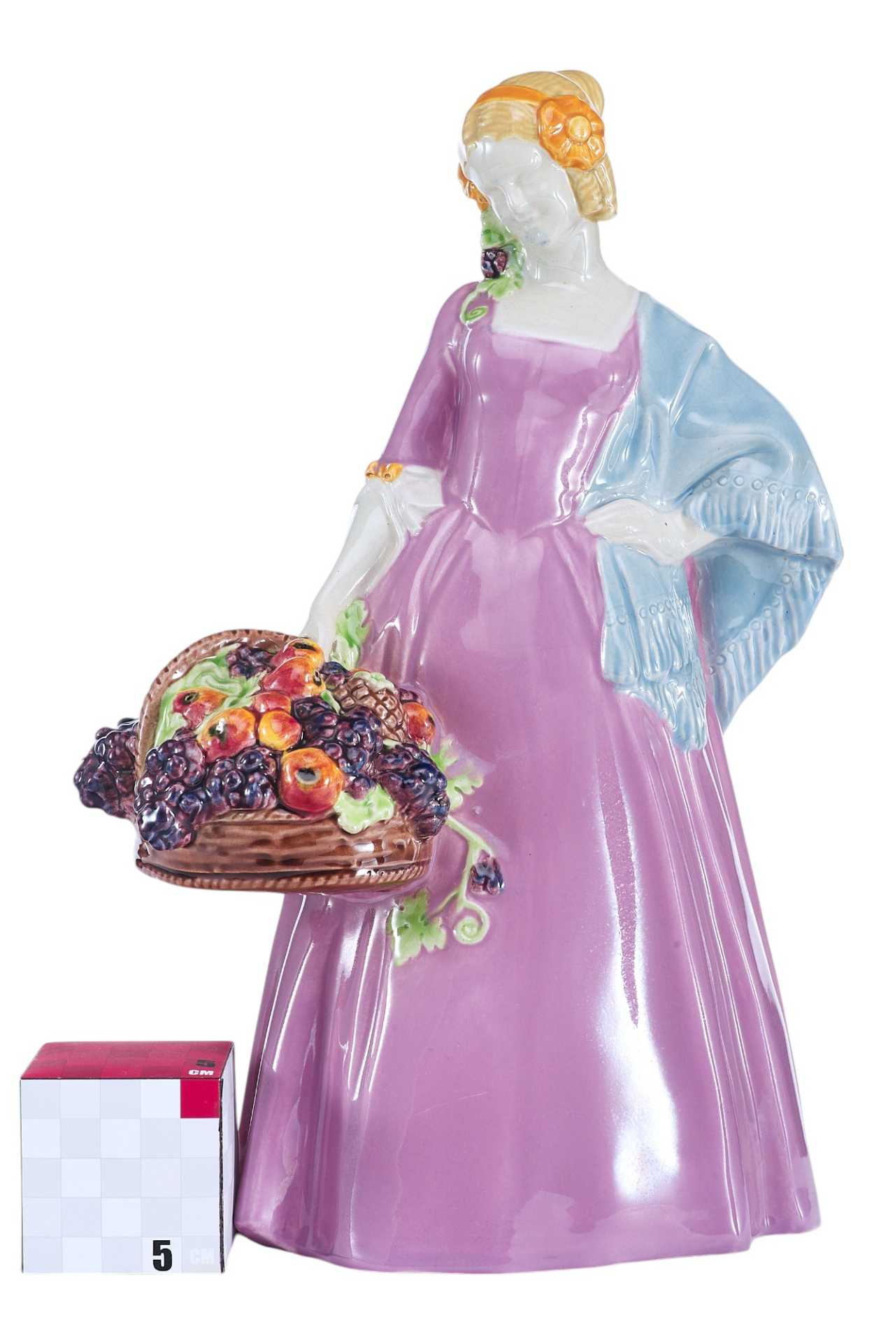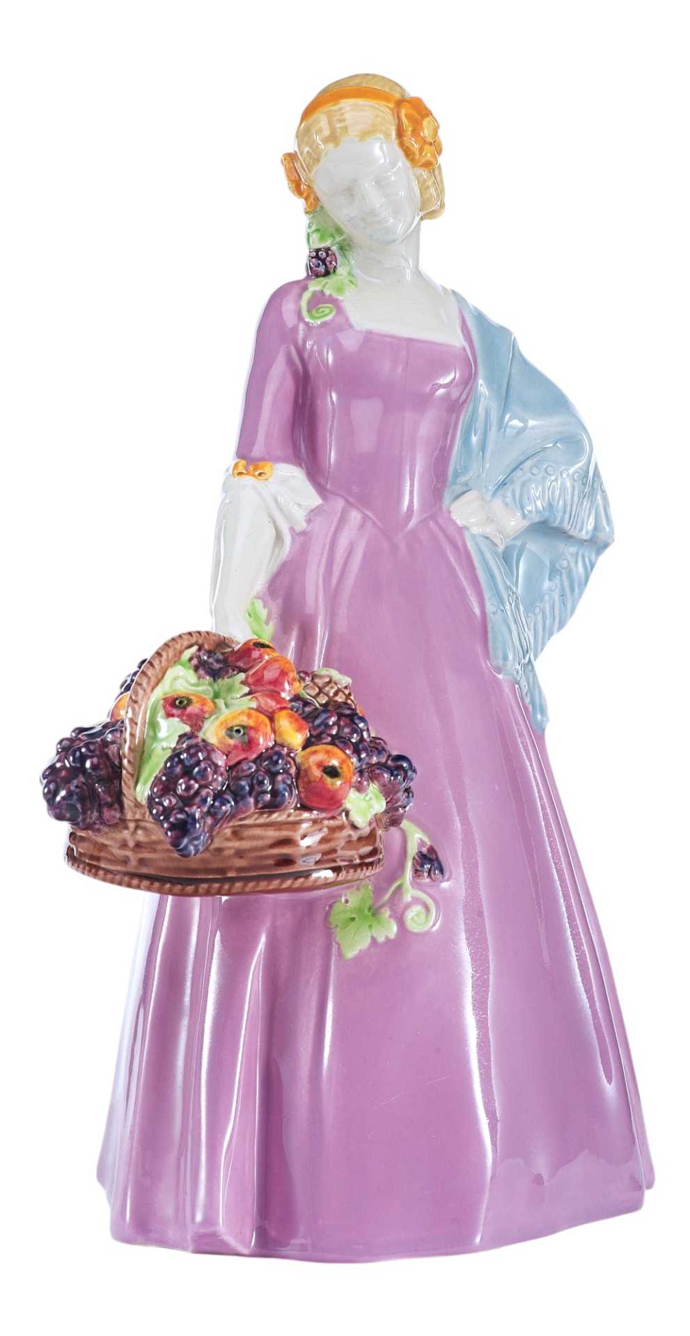 Скульптура женщины в платье полной корзиной свежих фруктов. Эта фигура относится к авторской серии «Сезоны» Эмиля Майера, изображающая молодых женщин в платьях периода середины XIX в. На основании скульптуры фамилия скульптора: Maier.