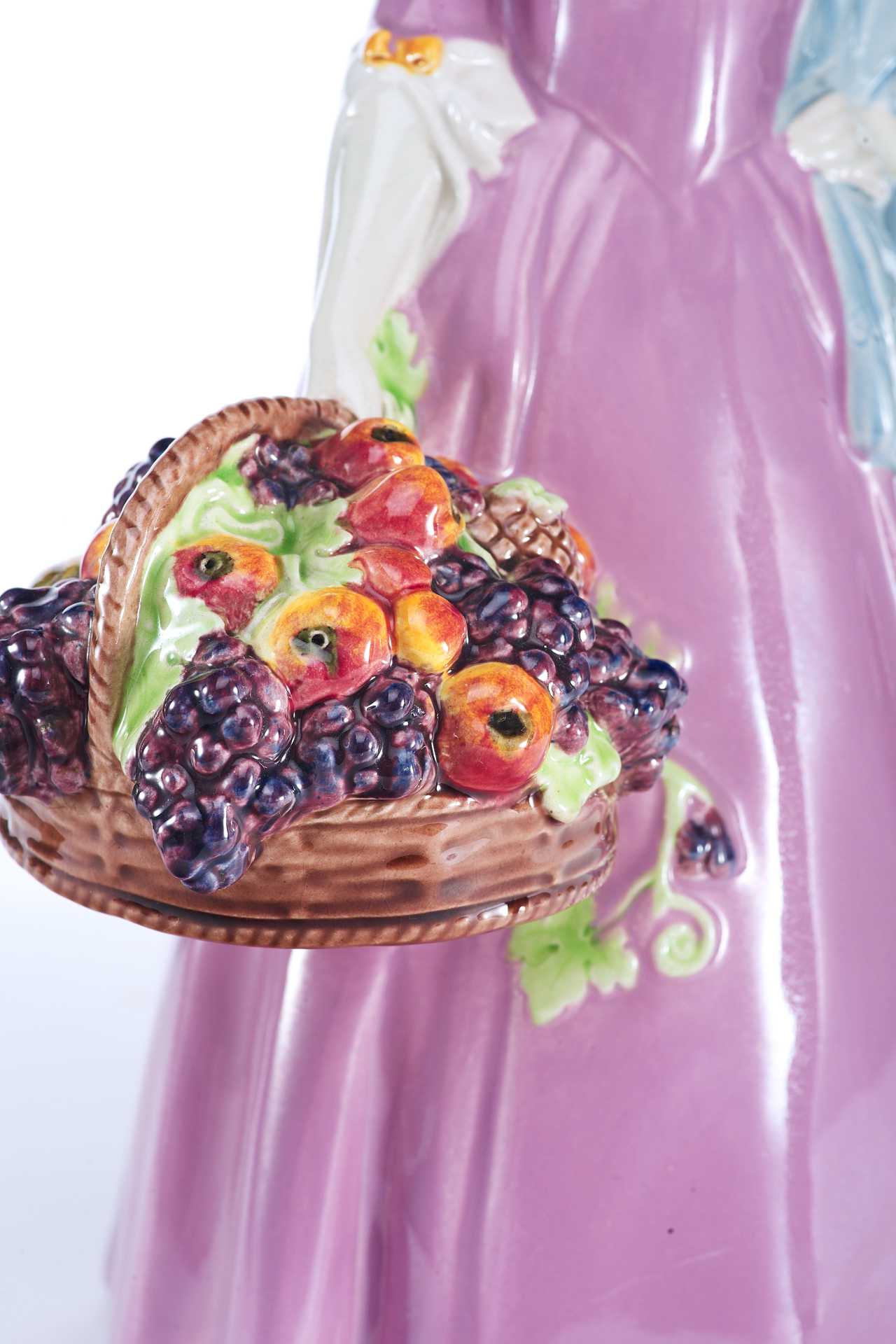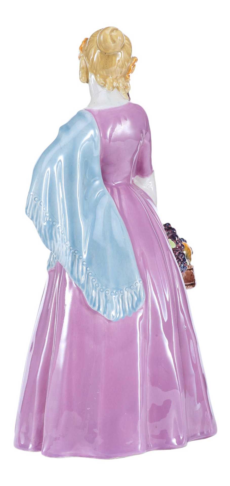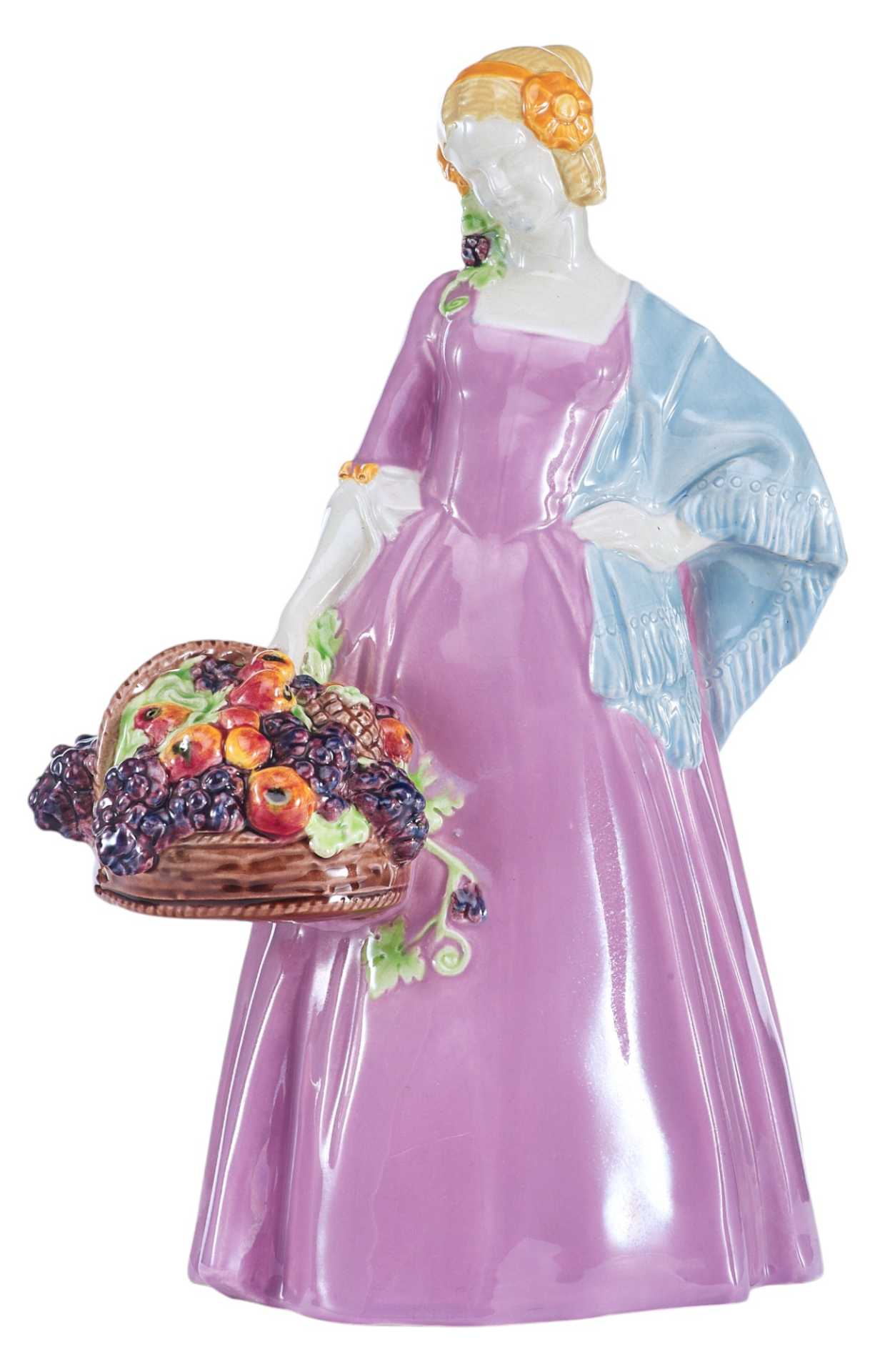 Скульптура женщины в платье полной корзиной свежих фруктов. Эта фигура относится к авторской серии «Сезоны» Эмиля Майера, изображающая молодых женщин в платьях периода середины XIX в. На основании скульптуры фамилия скульптора: Maier.