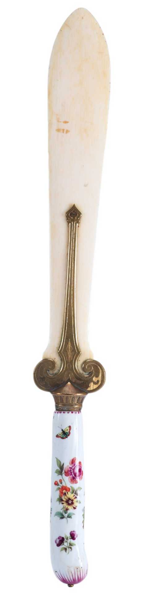 Кабинетный нож для бумаг и писем фарфор, слон. кость Германия XIX в. Н-39 см. Германия Конец XIX века
