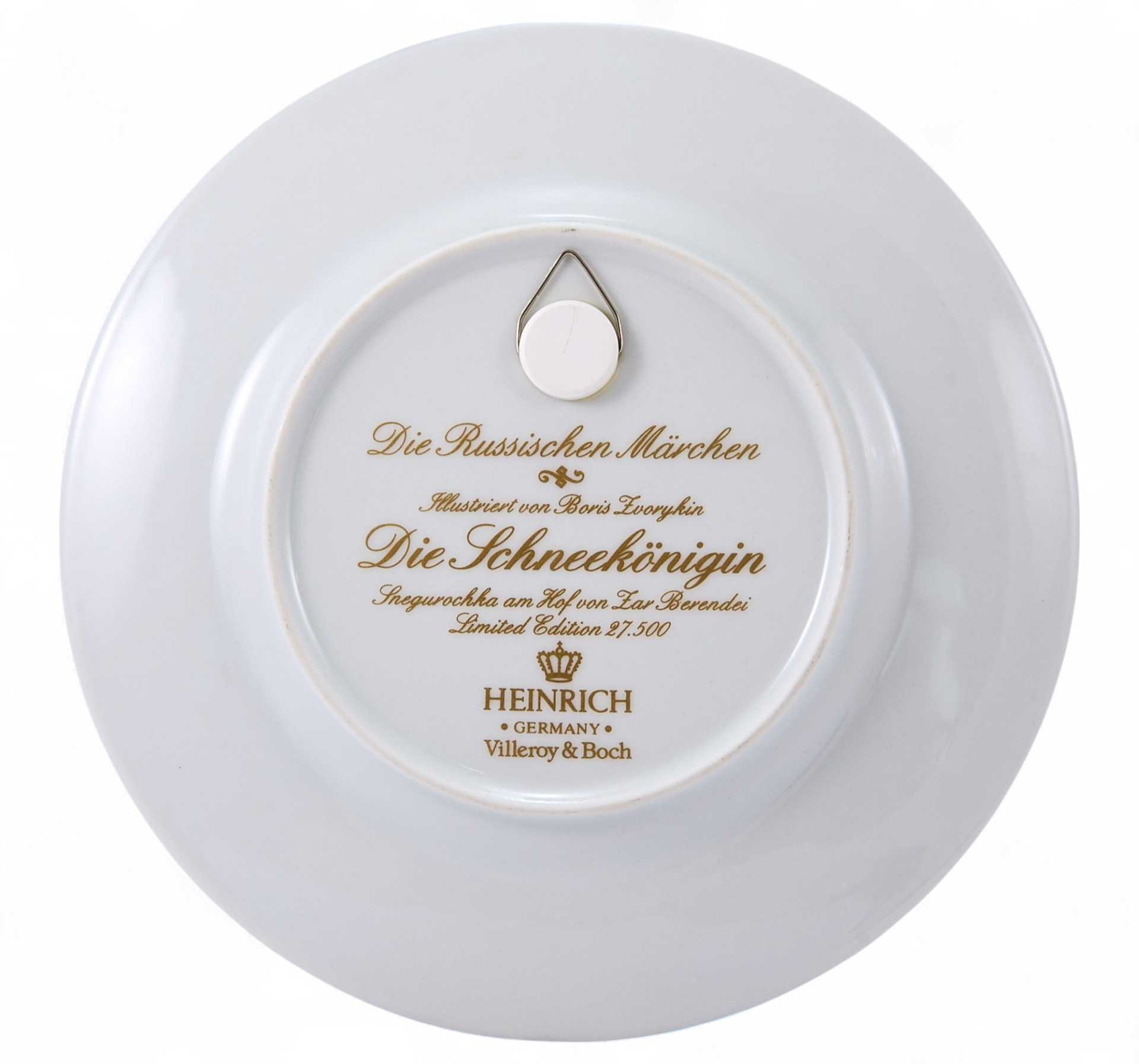 Декоративная тарелка, украшенной иллюстрацией русского художника. Бориса Зворыкина «Снегурочка пред царем Берендеем». На обороте клеймо фарфоровой фабрики Porzellanfabrik Heinrich Poizellan GmbH, прмевявшееся в 1980-х гг. для данной серии декоративных тарелок.