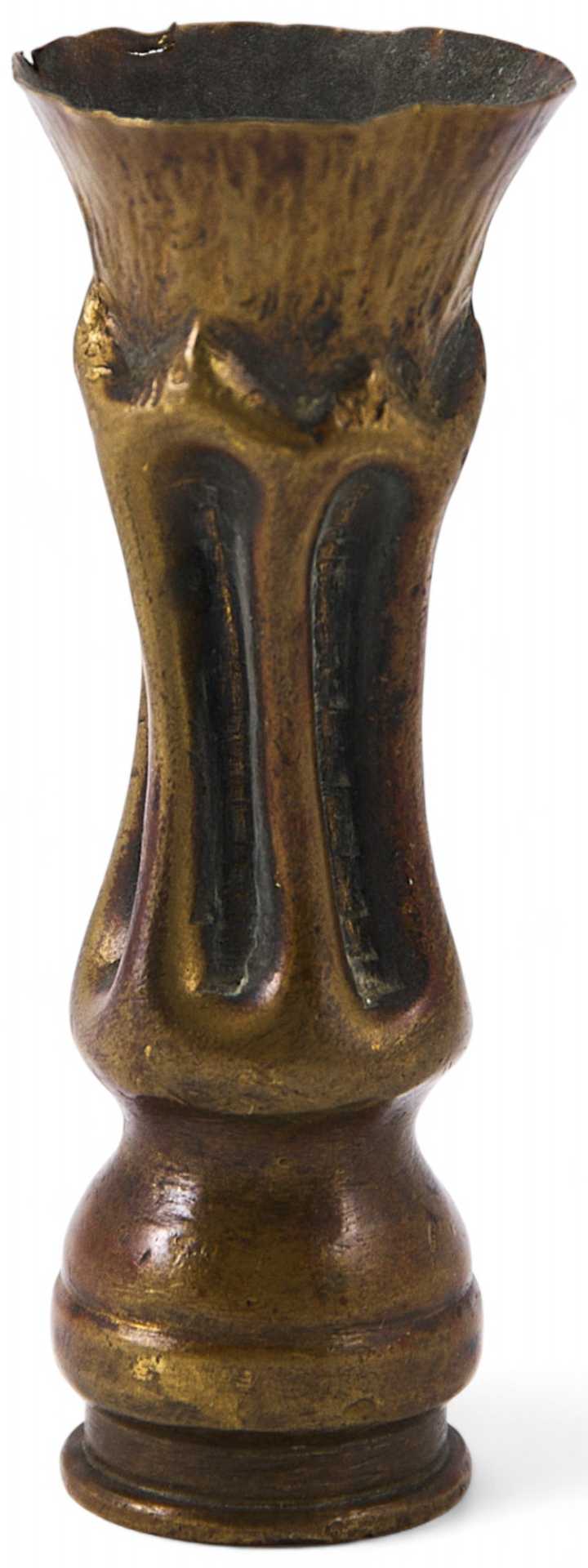 Ваза из гильзы от боевого снаряда для противотанкового ружья (возможно для Solothum S18-100) австрийского производства, заводом Hirtenberger Patronen und Zundhuntchenfabrik Форма вазы представляет собой стреляную гильзу, обработанную в технике выколотки. На клапане гильзы производственные штампы ( тип патрона -10, регистр - Р, калибр - 7/86).