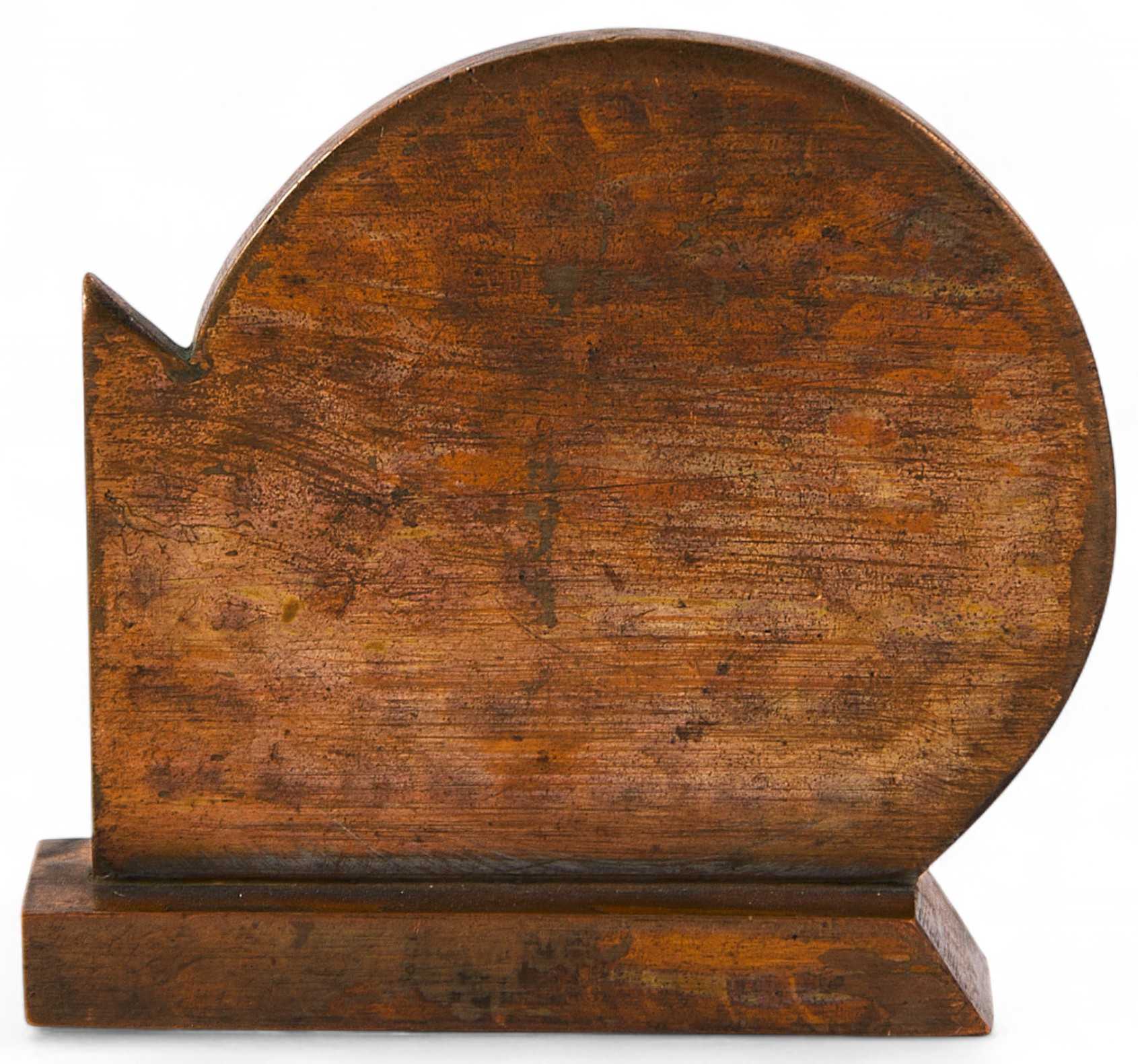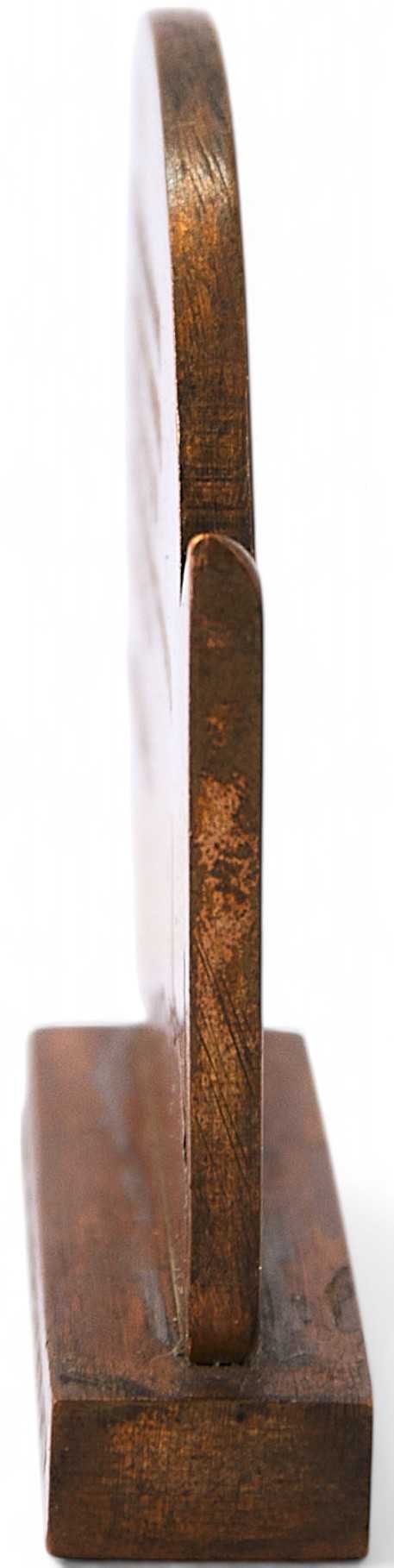 Памятная стела из металла геометризированной формы, совмещающей круг и треугольник. На лицевой стороне надпись: «Совещание работников медной промьшшенности СССР / май 1965 г». На основании: «г. Красноуральск». Оборотная сторона обработана шлифовкой в технике «мороза».