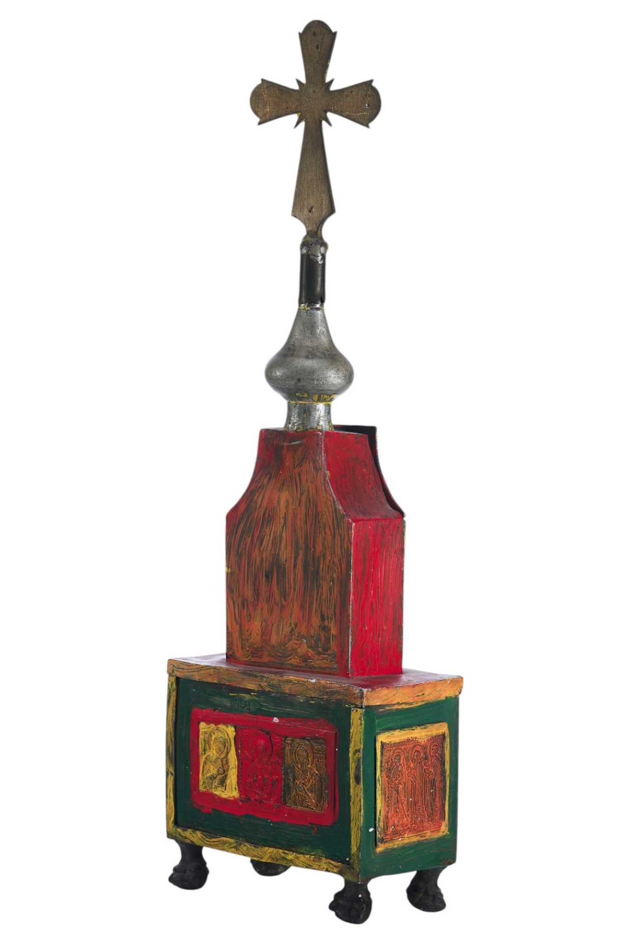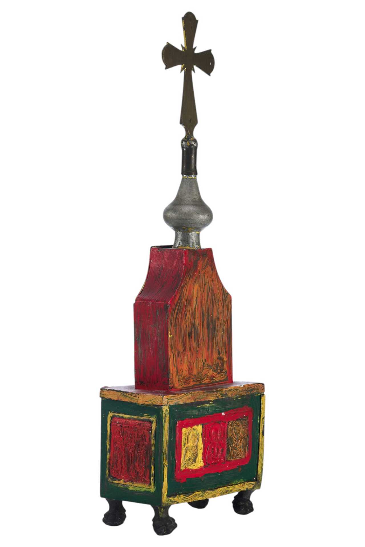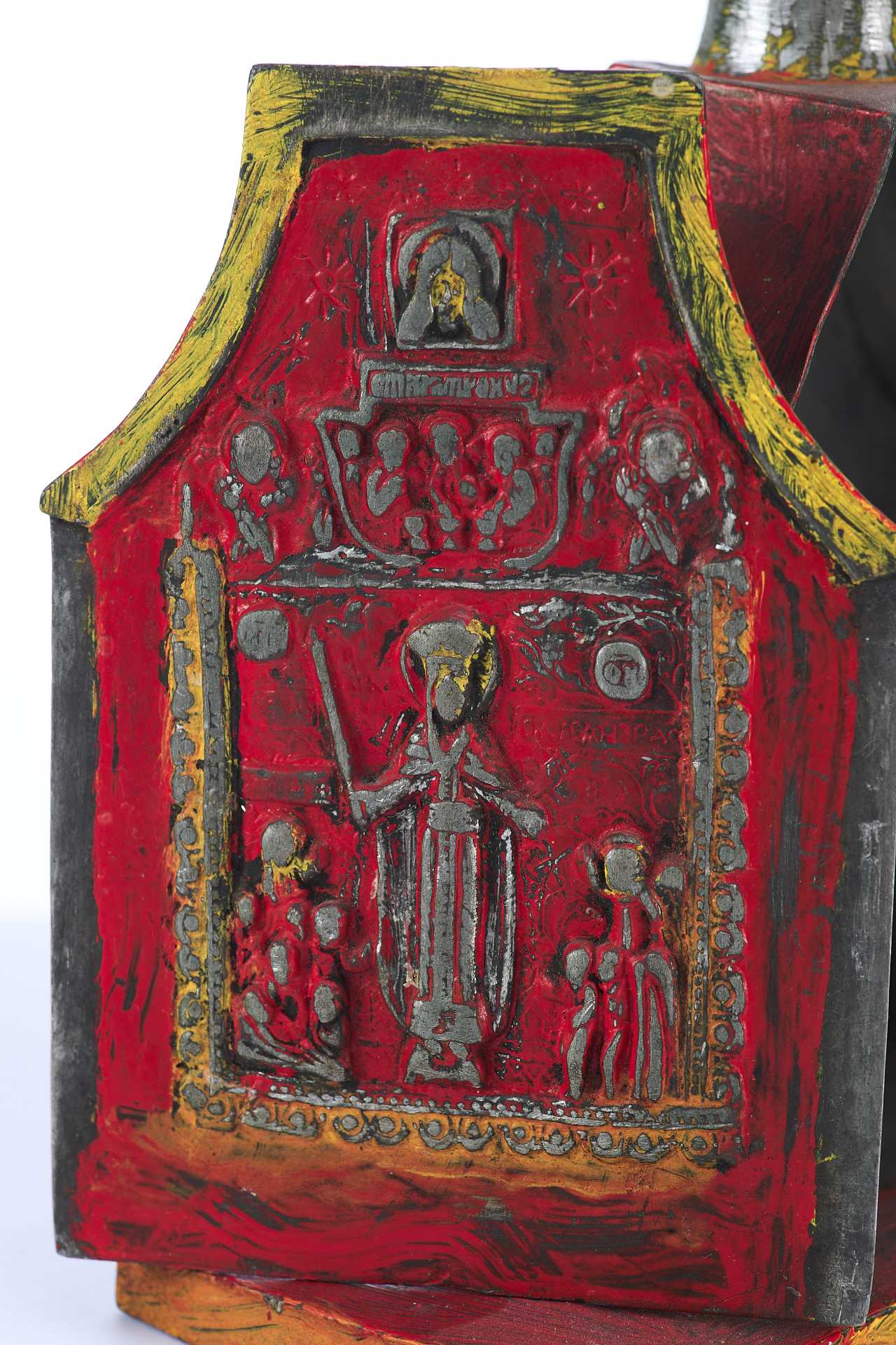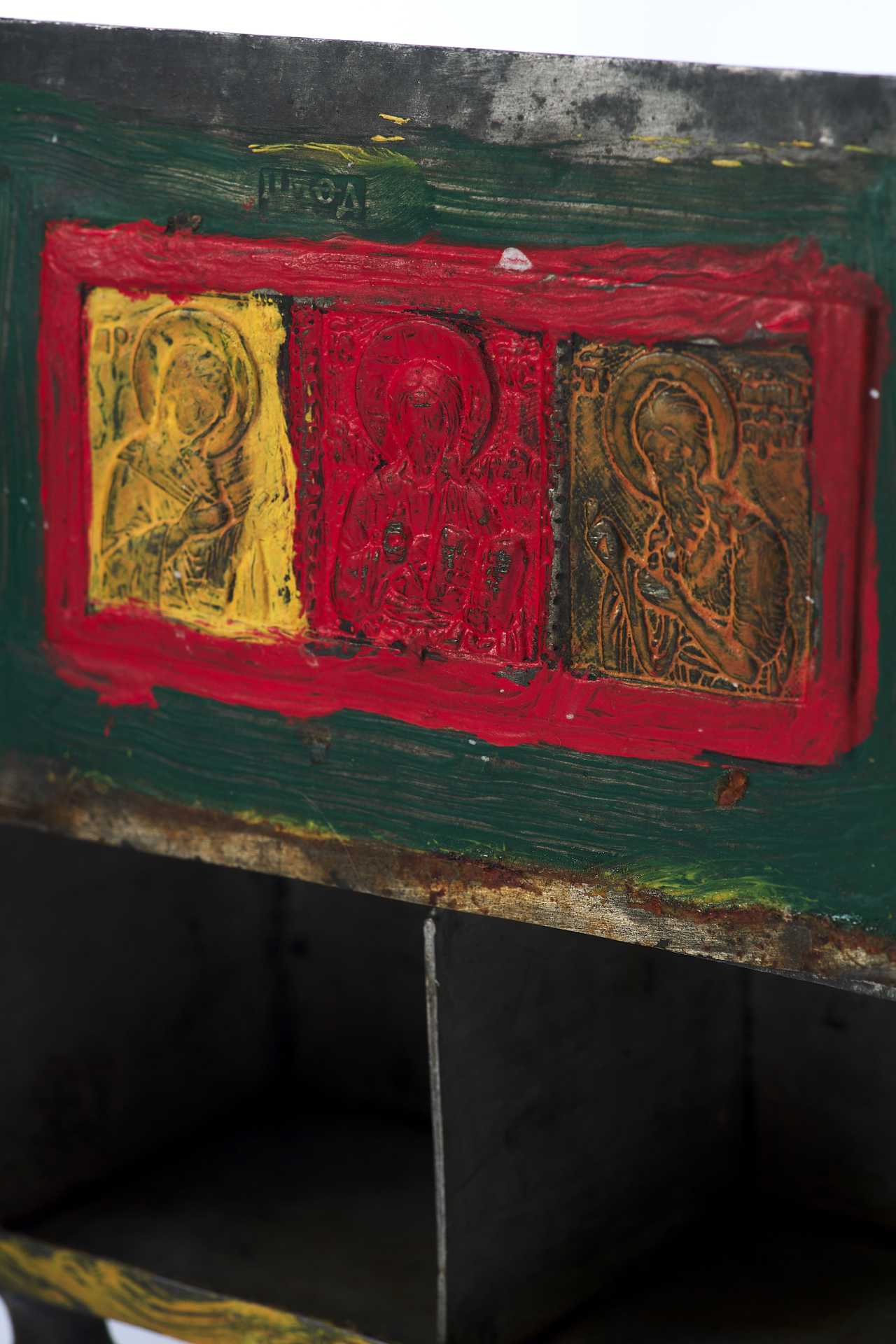 Над изображением Деисуса имеется клеймо "ЦМДФ'" цехового мастера Федора Денисовского. Клеймо подлинное. Ковчег раскрашен масляными красками. Святые Дары - частица мощей Тела Христова, пропитанные Кровью, которые приготавливаются на литургию в Великий Четверг, или, в случае необходимости, и в другие дни. Дары Святые - хлеб и вино, освященные и приготовленные на литургию.