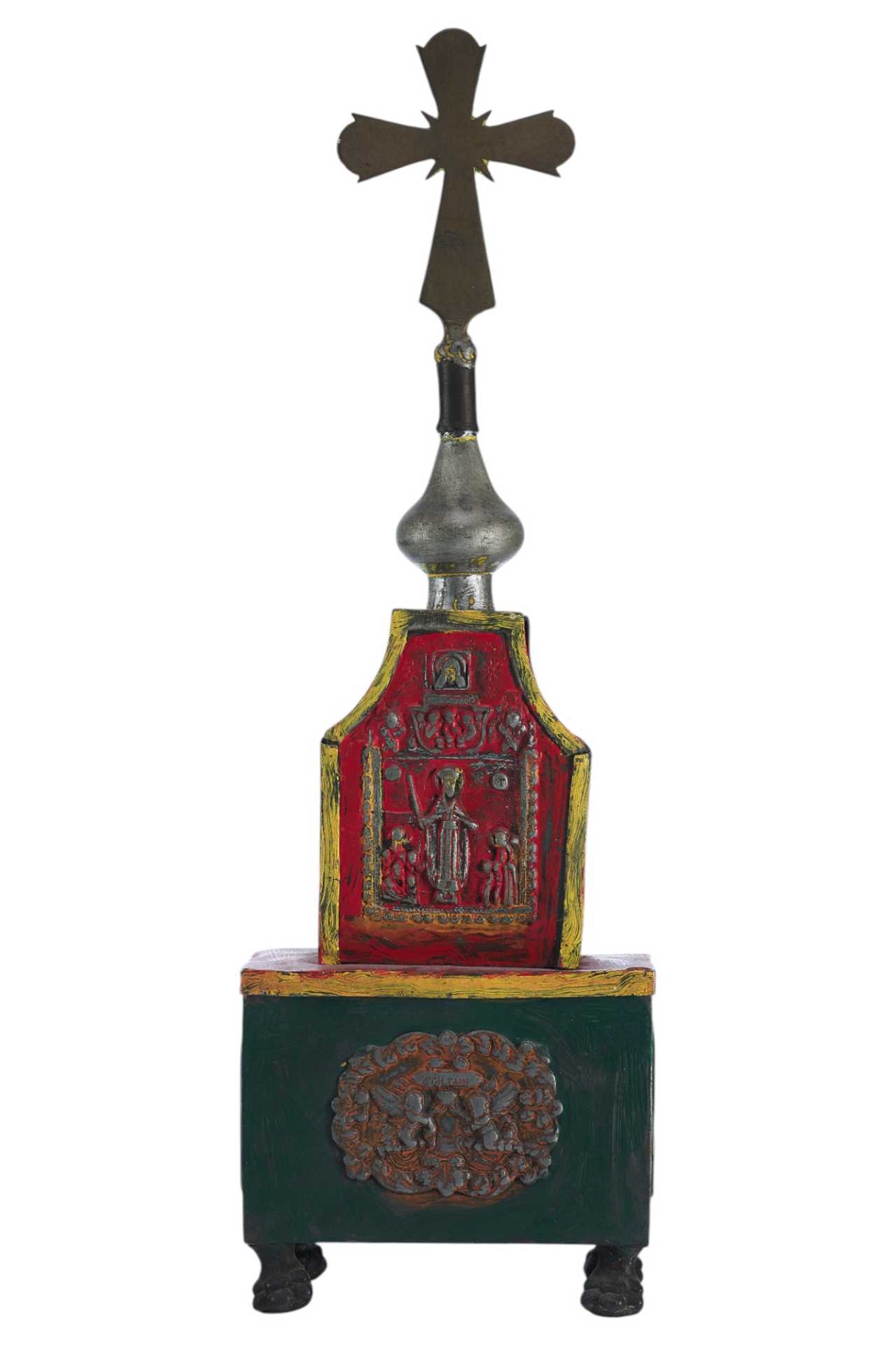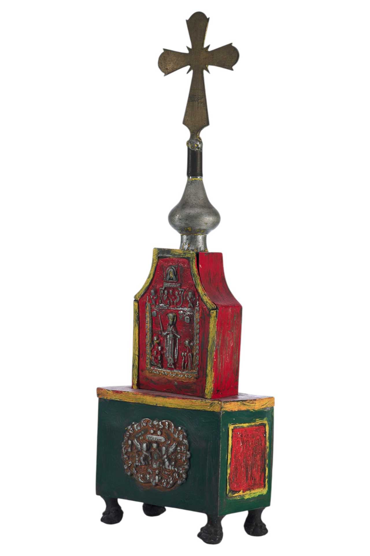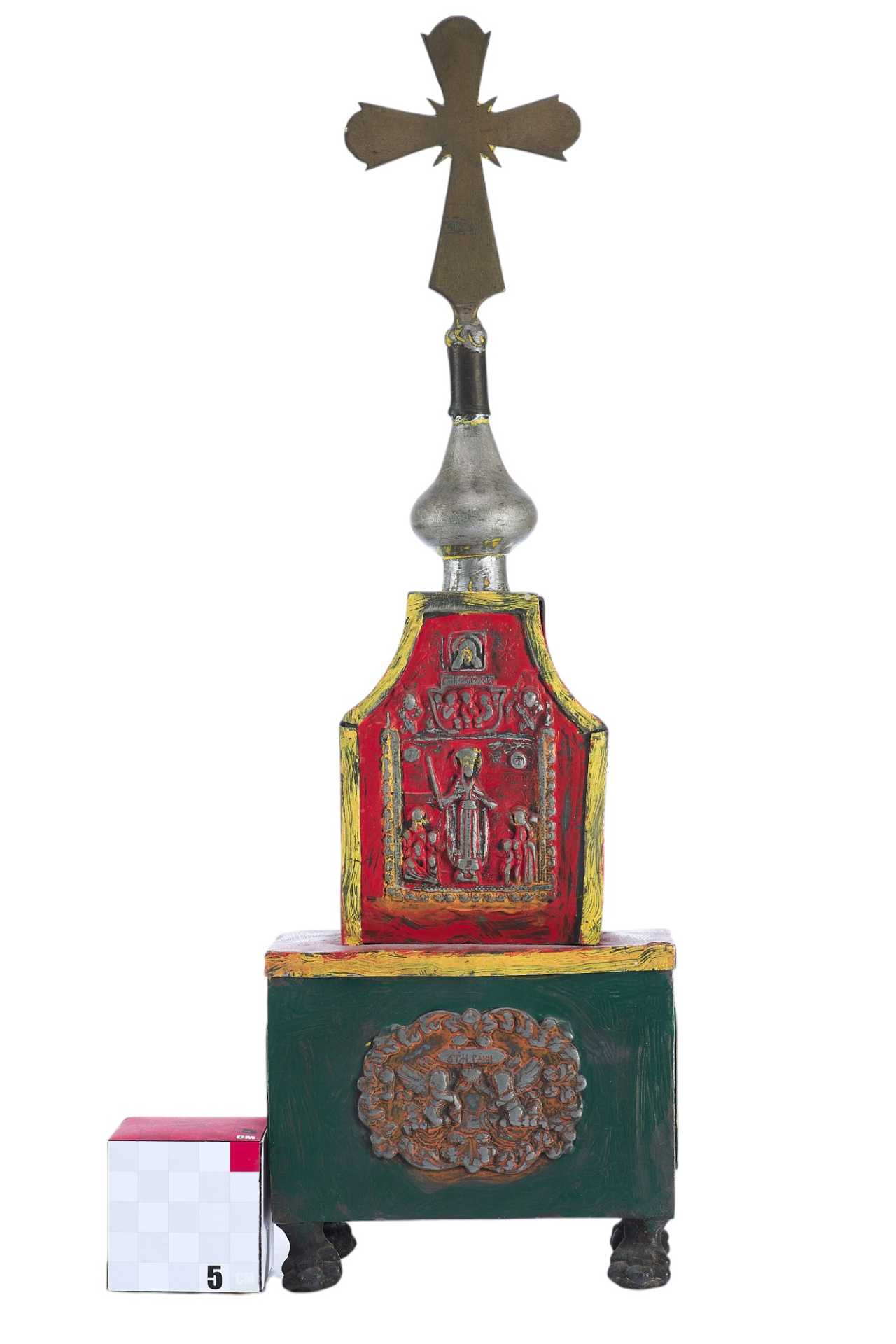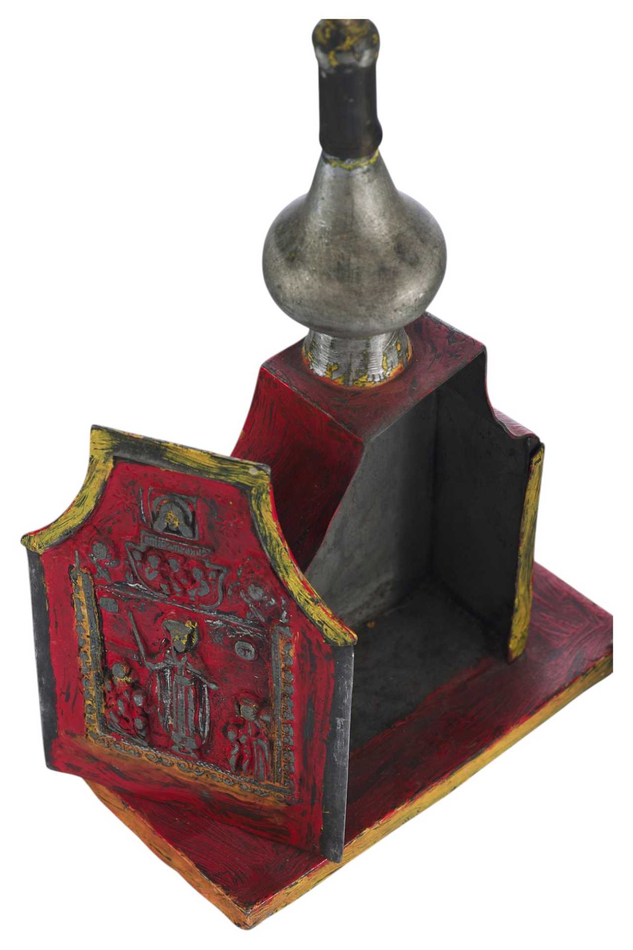 Над изображением Деисуса имеется клеймо "ЦМДФ'" цехового мастера Федора Денисовского. Клеймо подлинное. Ковчег раскрашен масляными красками. Святые Дары - частица мощей Тела Христова, пропитанные Кровью, которые приготавливаются на литургию в Великий Четверг, или, в случае необходимости, и в другие дни. Дары Святые - хлеб и вино, освященные и приготовленные на литургию.