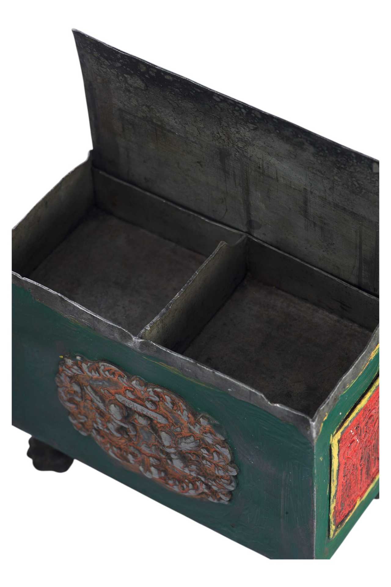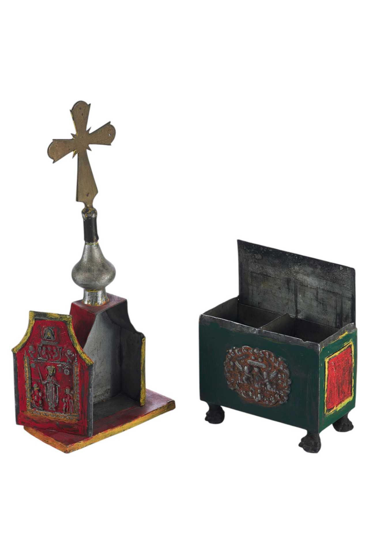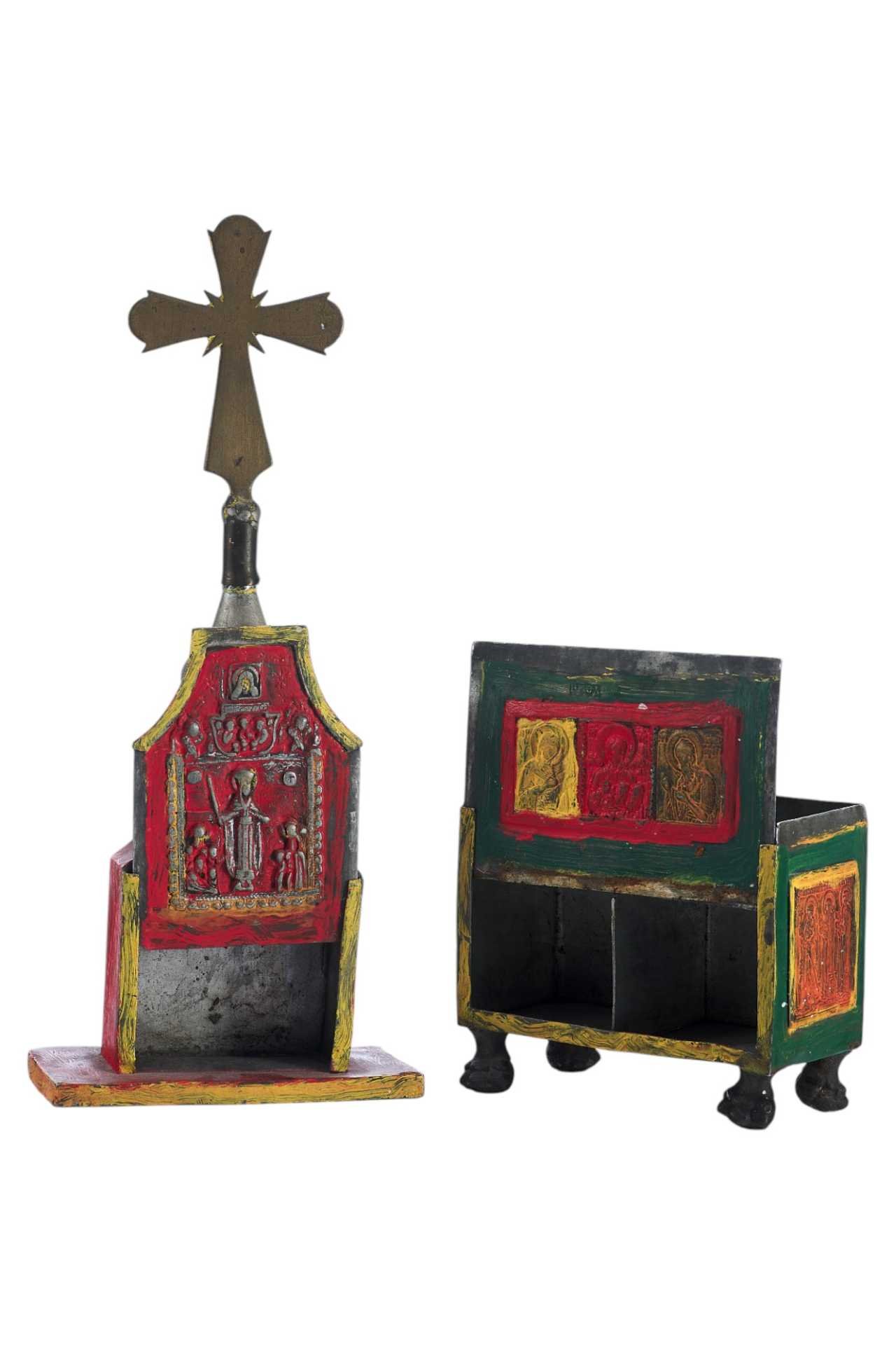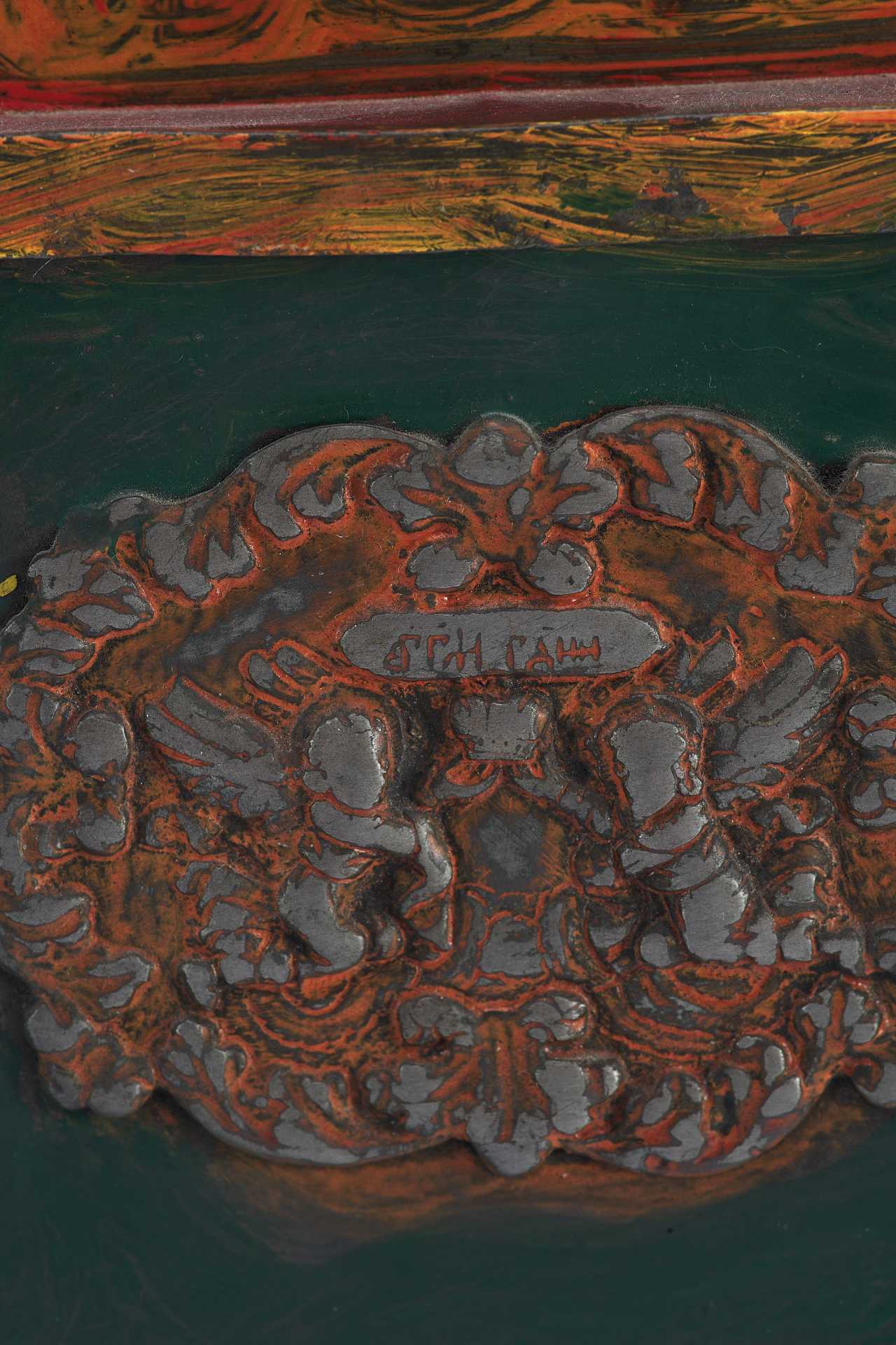 Над изображением Деисуса имеется клеймо "ЦМДФ'" цехового мастера Федора Денисовского. Клеймо подлинное. Ковчег раскрашен масляными красками. Святые Дары - частица мощей Тела Христова, пропитанные Кровью, которые приготавливаются на литургию в Великий Четверг, или, в случае необходимости, и в другие дни. Дары Святые - хлеб и вино, освященные и приготовленные на литургию.
