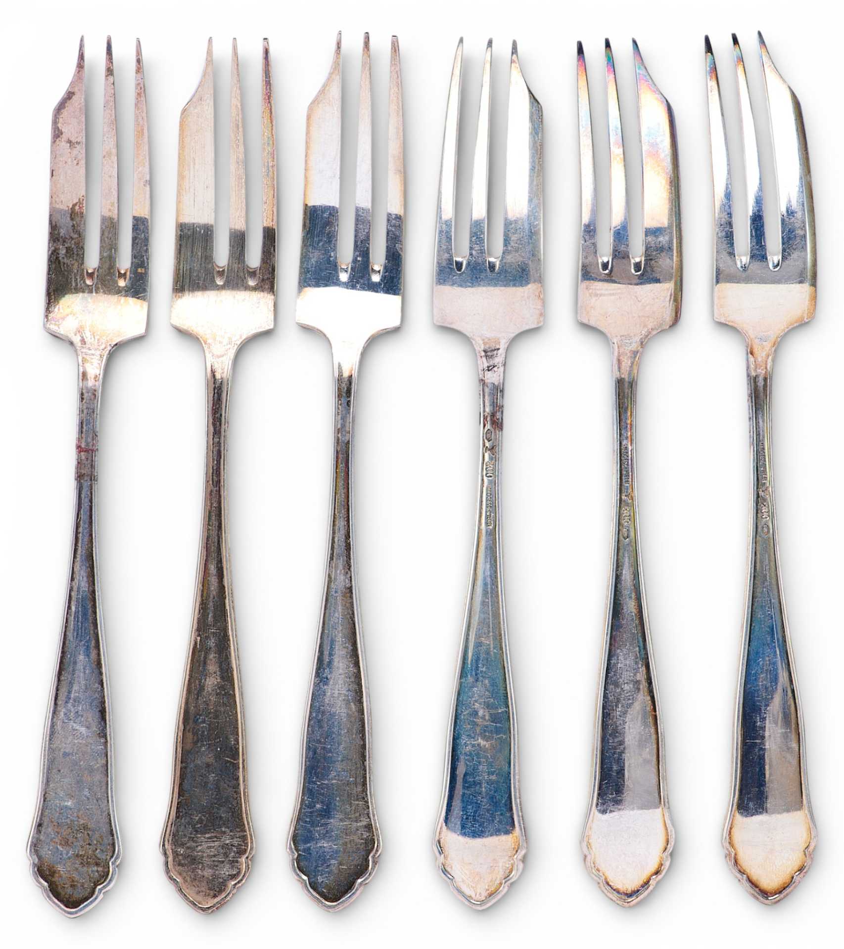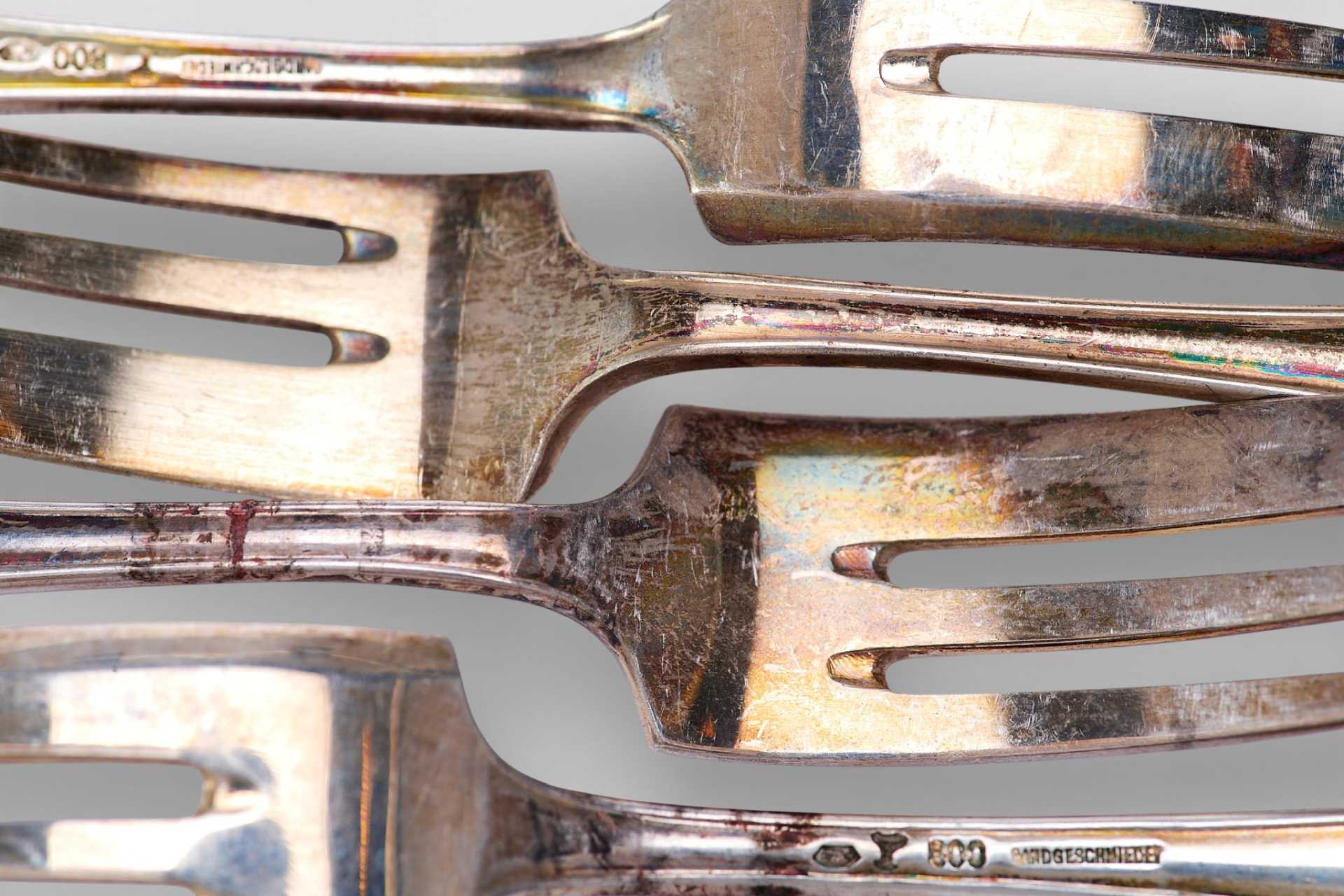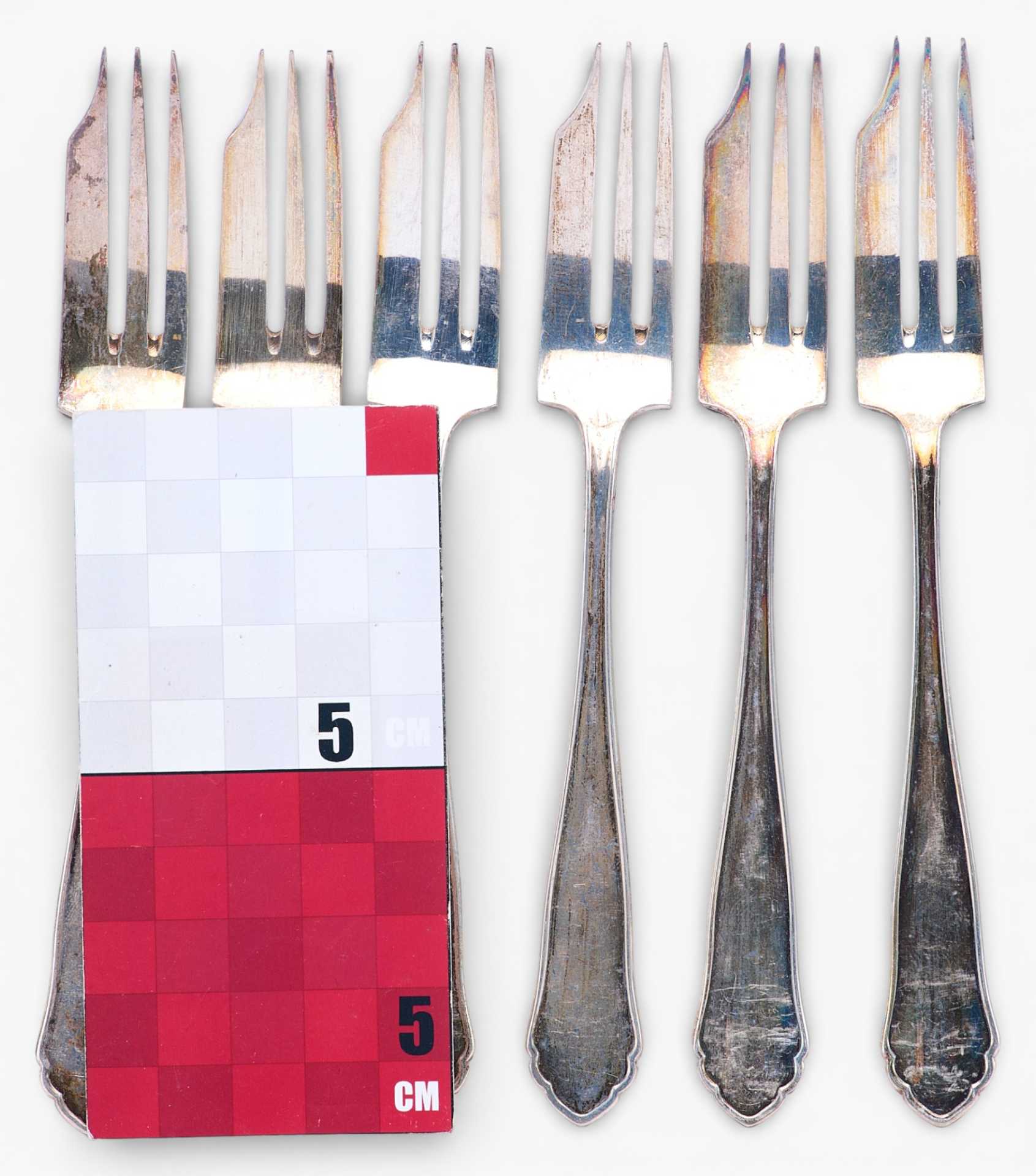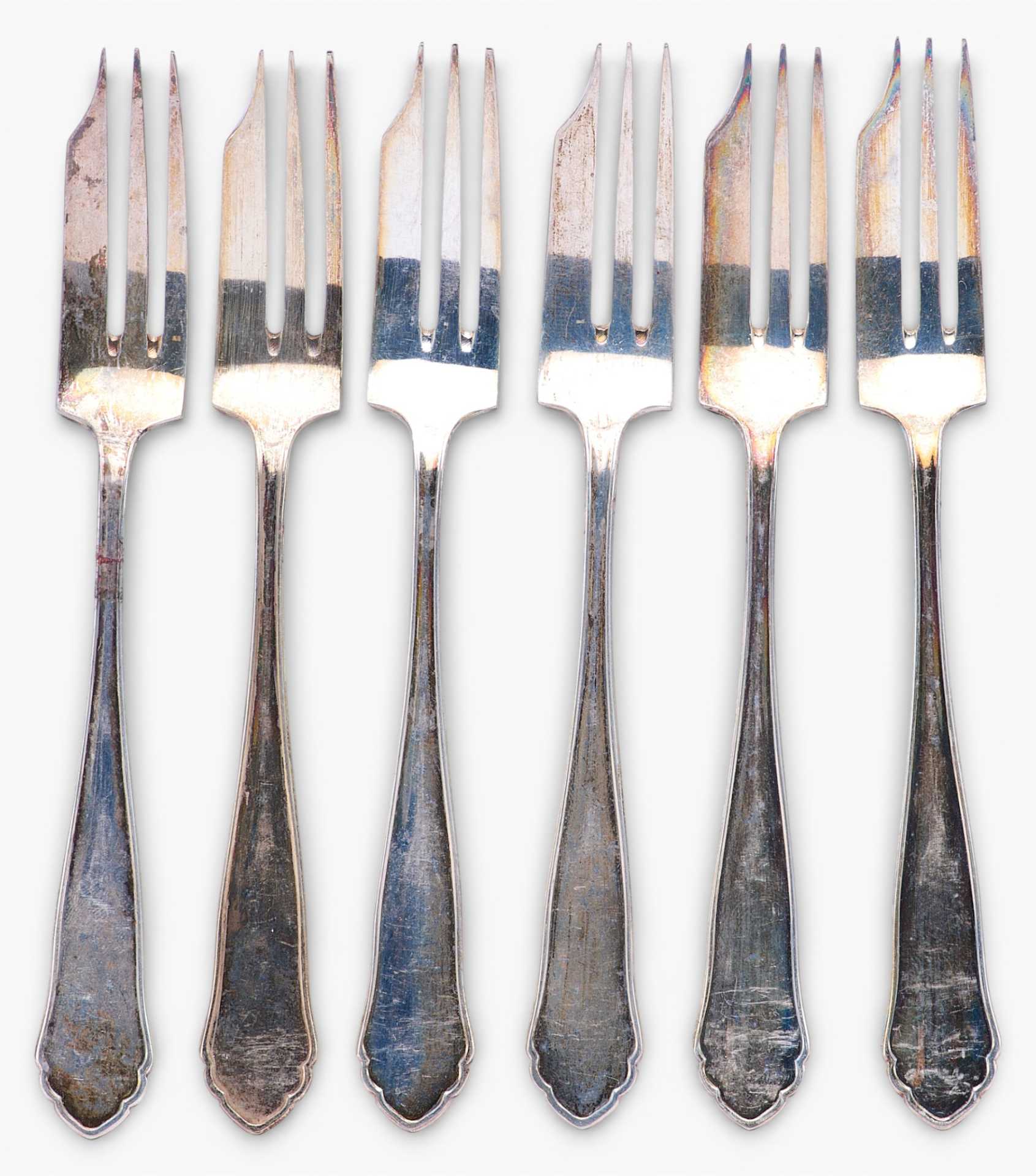 Представлен набор из 6 вилочек, предназначенных для включения в сервировку к таким горячим закускам как блины,