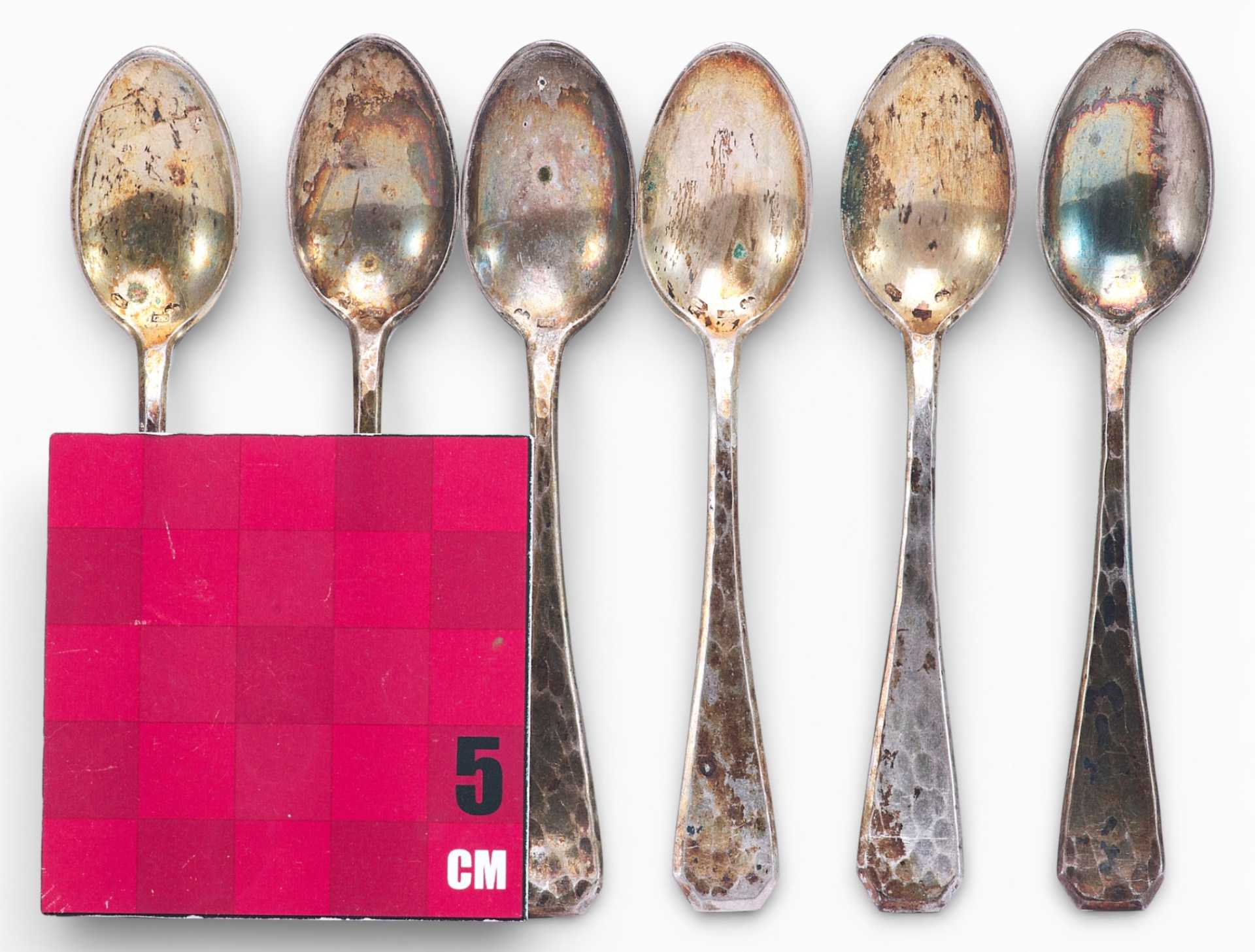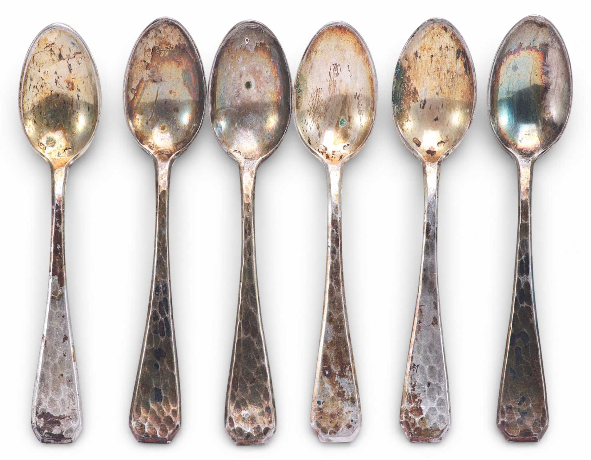 Представлен набор из шести серебряных кофейных ложечек.