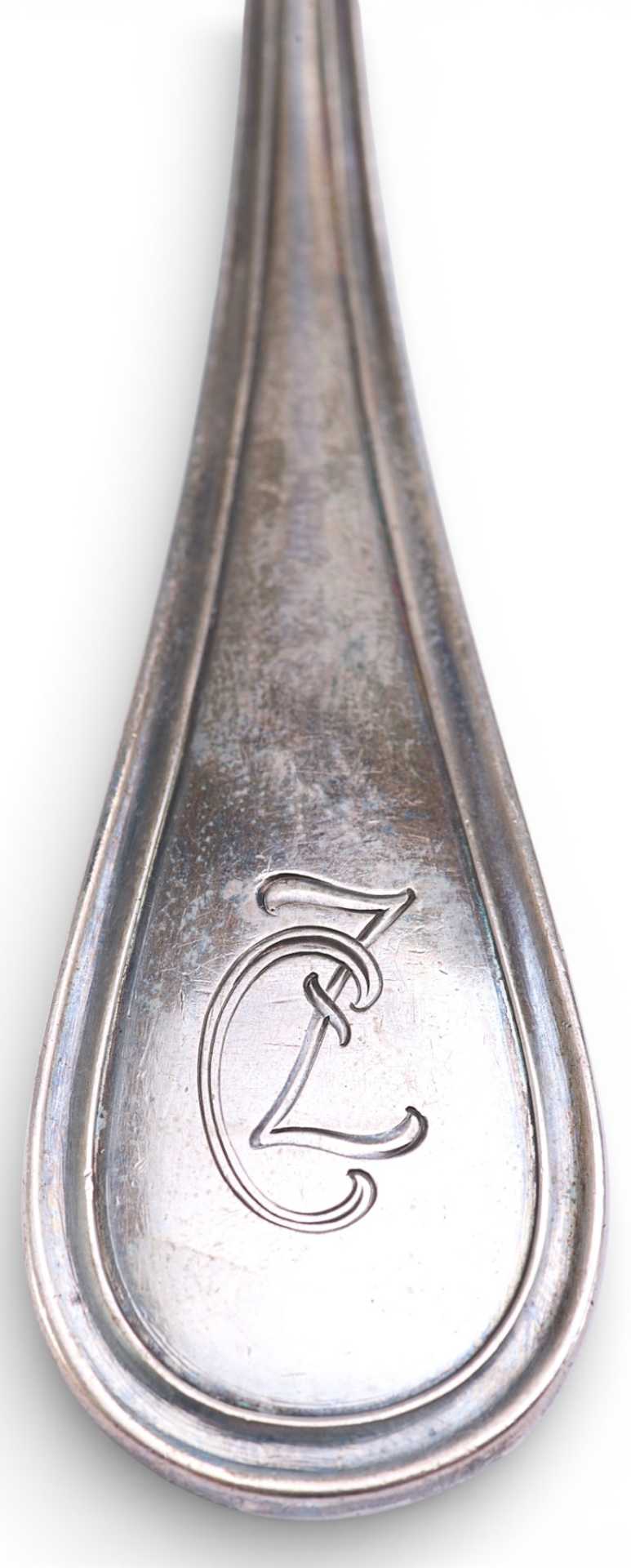 Клейма подлинные. Их наличие, а также состояние материала позволяет установить, что салатная ложка была изготовлена во Франции, в первой половине XX века.