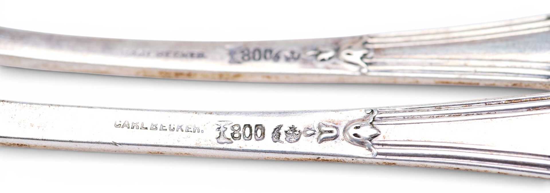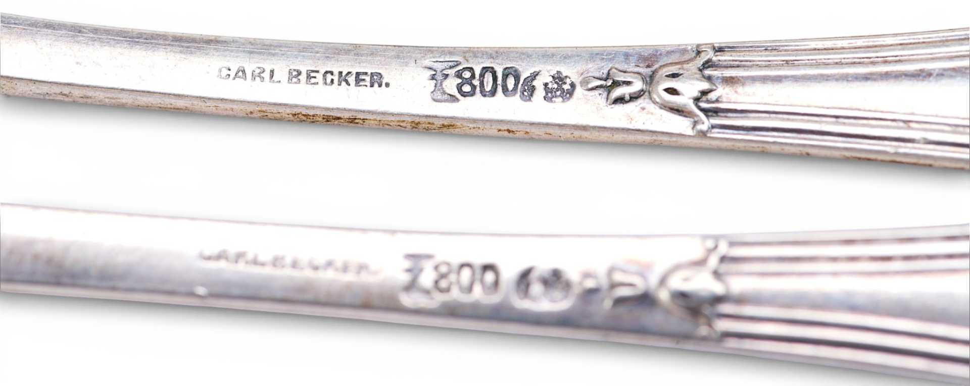 Клейма подлинные. Их наличие позволяет установить, что набор был изготовлен в Германии, на фабрике «Carl Becker», в первой половине XX века.