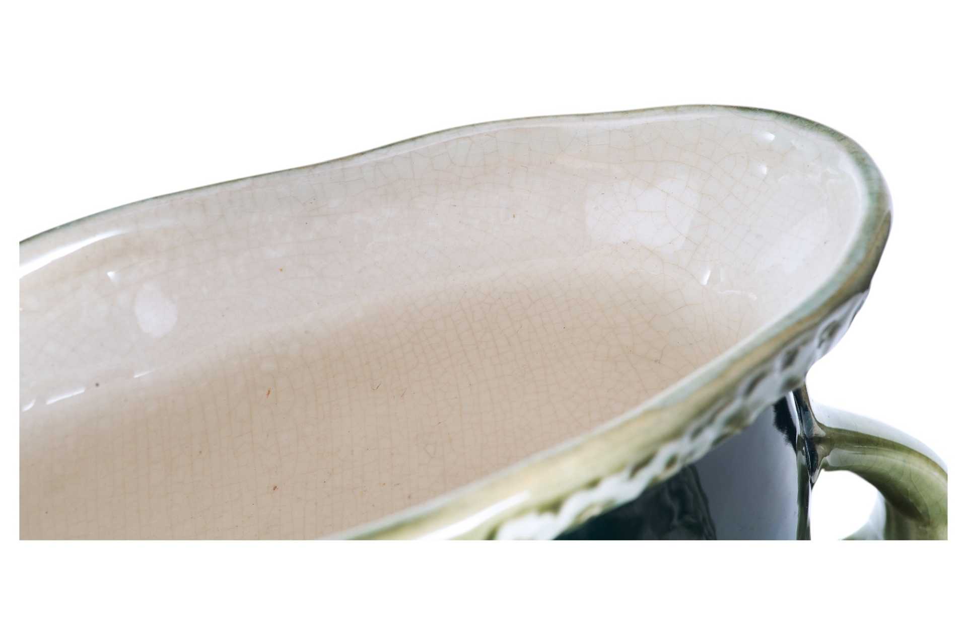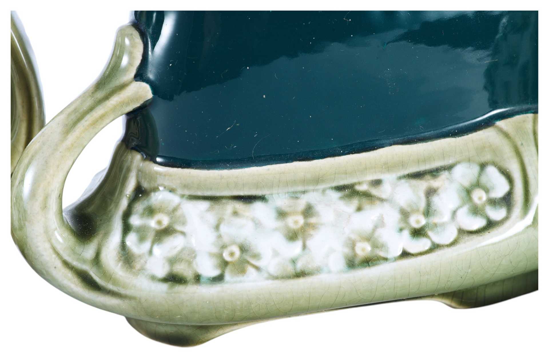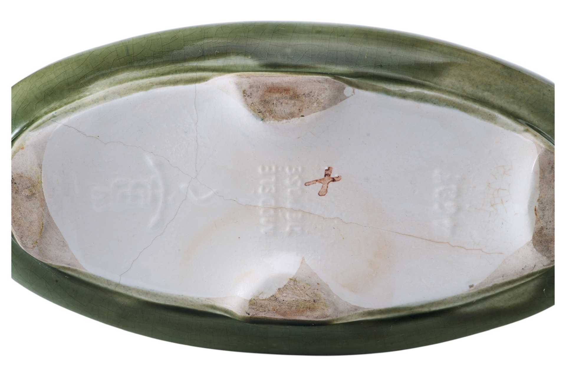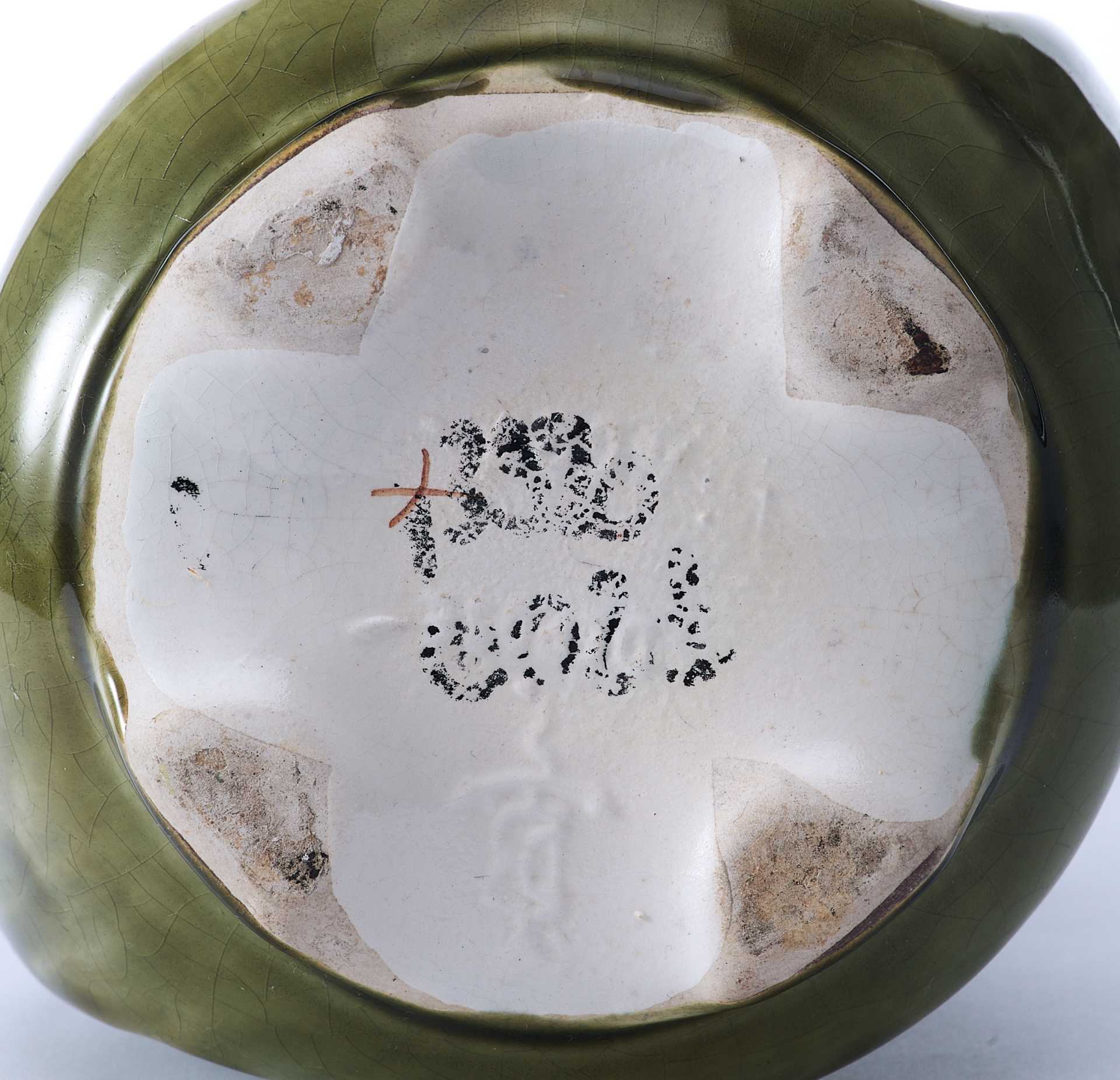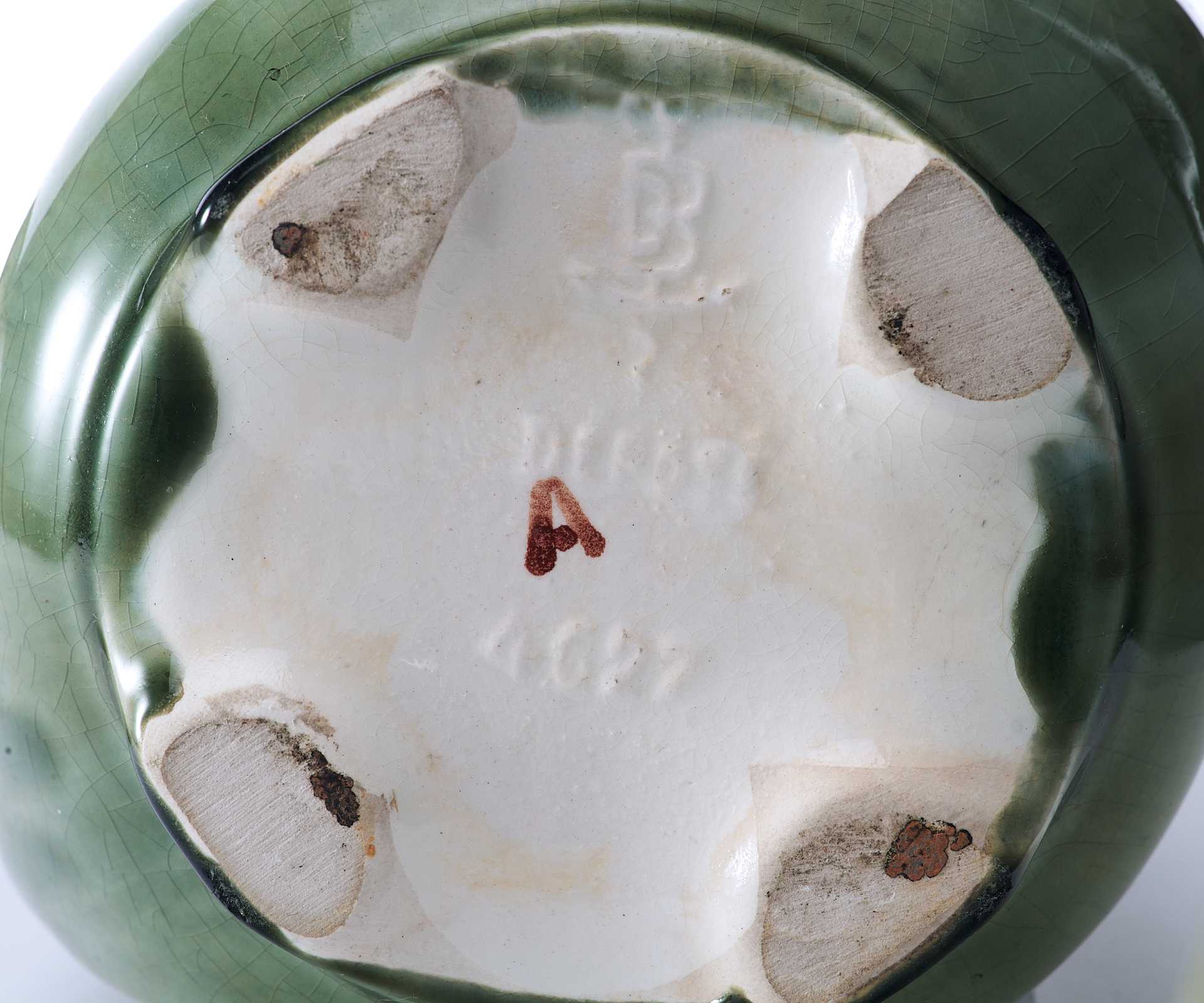 На предметах имеется клеймо «в тесте» неизвестной французской фабрики по производству художественной майолики, производственный номер - 4627, и штамп: «Modele Depose». В конце XIX века, в связи с нарастающим влиянием