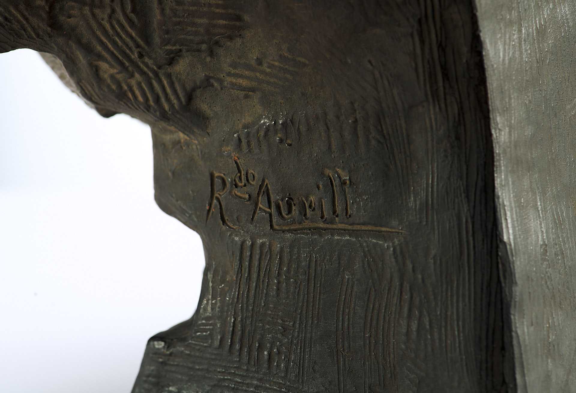 На скульптуре имеется авторская подпись «R do Aurili». Richard Aurili (1834 — около 1914) — итальянский скульптор. До 1890 г. работал в Бельгии, затем перебрался в Париж, где ежегодно участвовал на выставках в Салонах Академии искусств во Франции. Известен своими произведениями на тему женских бюстов и гладиаторов, из керамики, мрамора или бронзы.