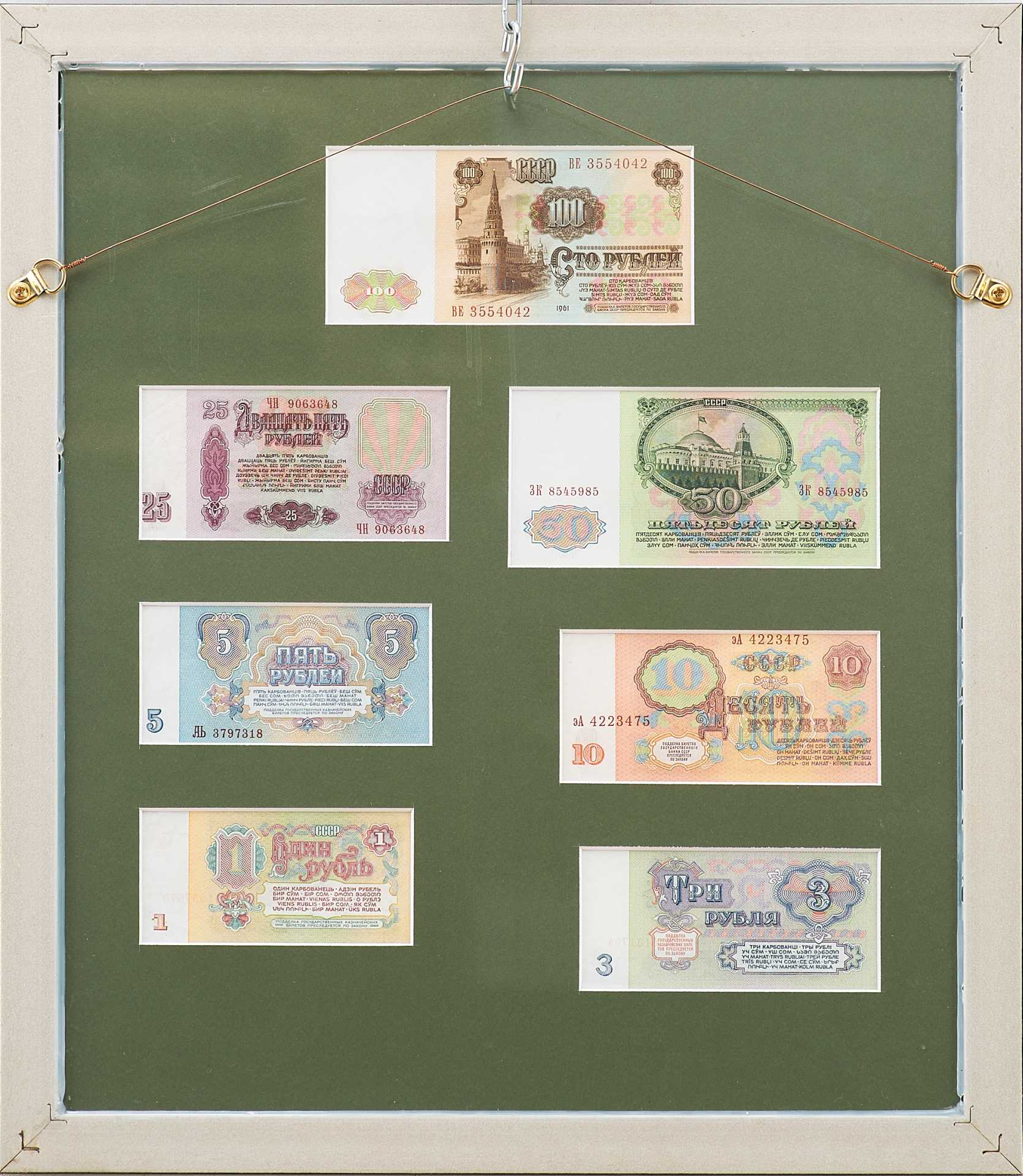 В современных условиях такие банкноты имеют коллекционную ценность, зависящую от года выпуска по серии и степени сохранности. Представленная плакетка — это тщательно подобранный образец советской денежной системы, интересный как с историко-нумизматической точки зрения, так и как атрибут эпохи позднего социализма.