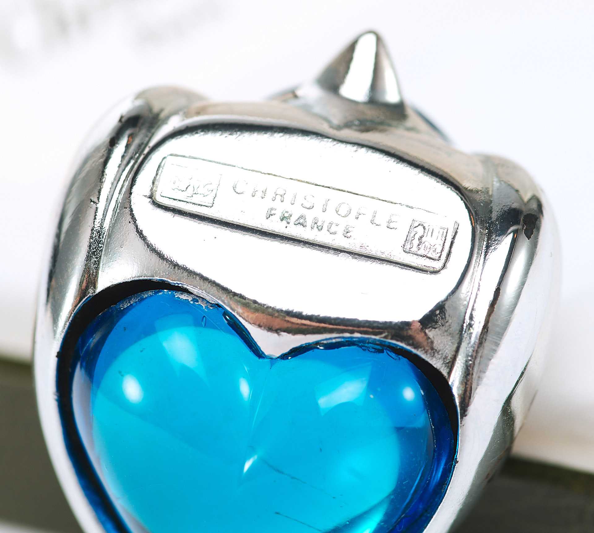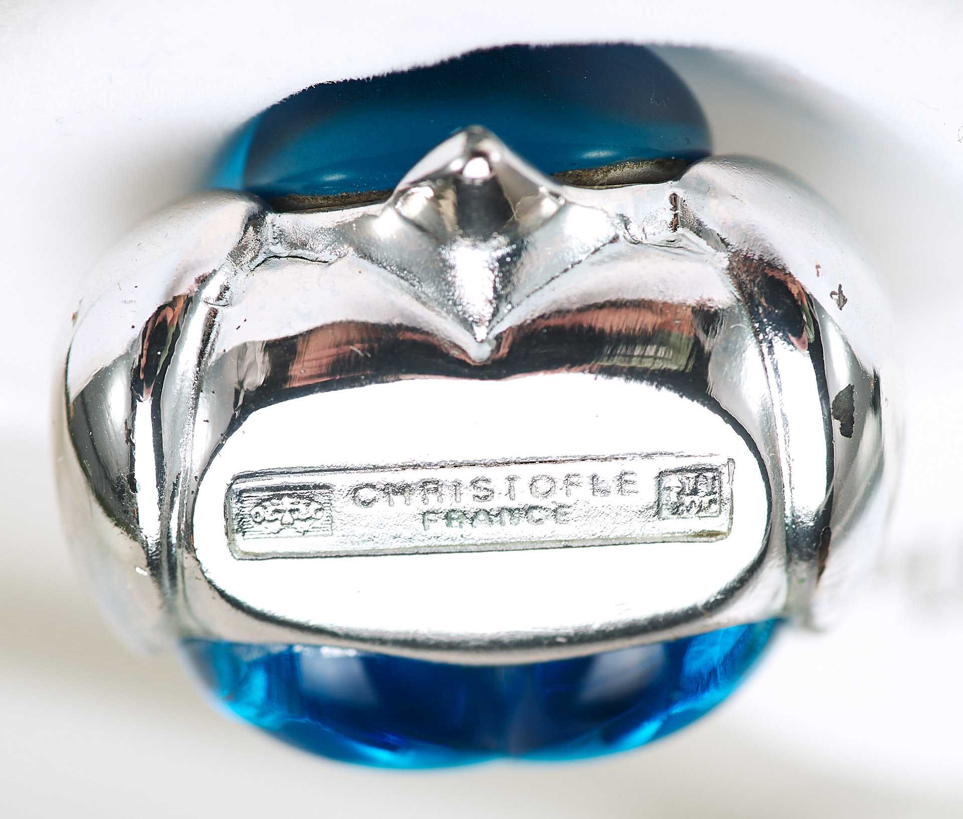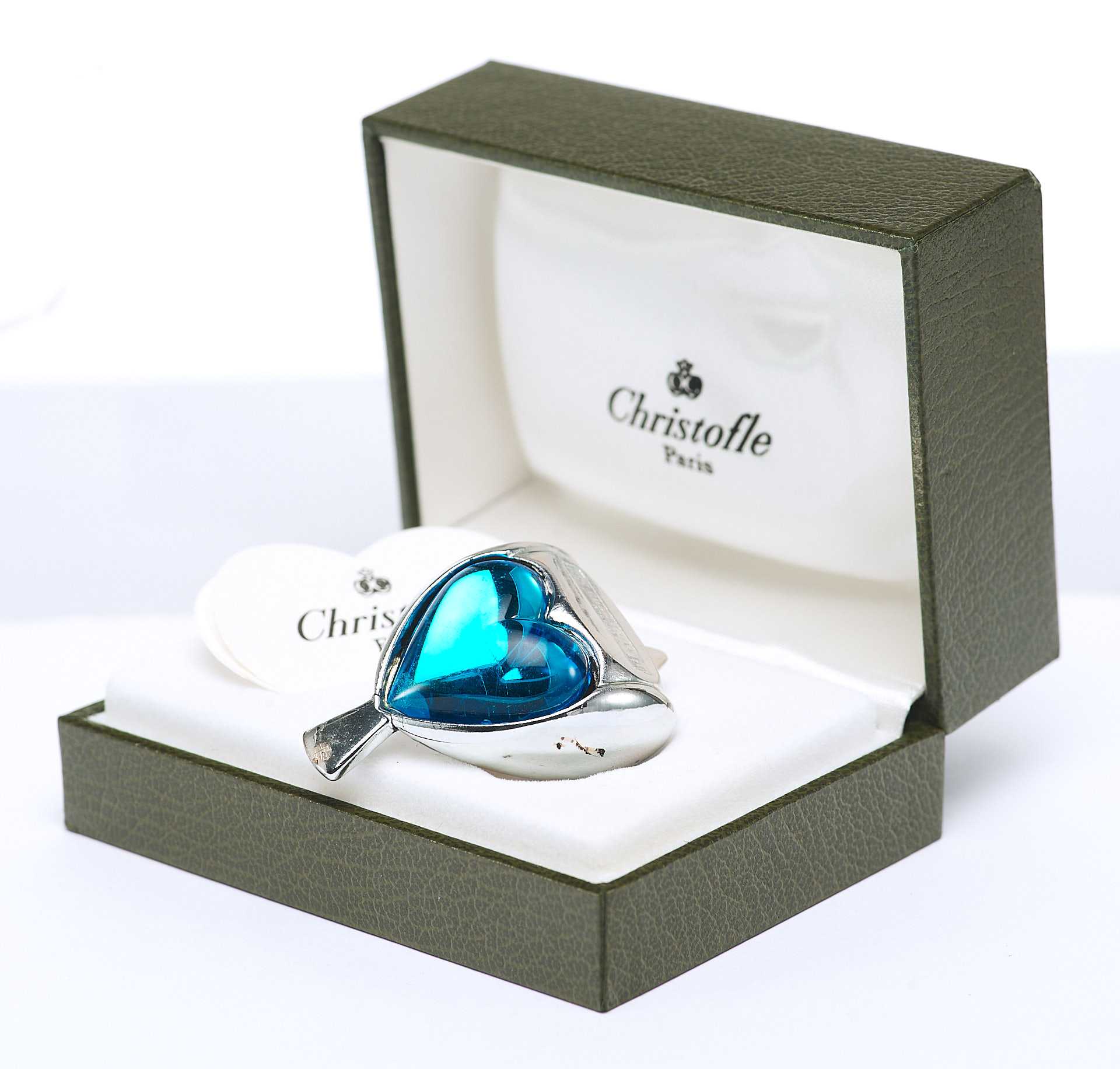На белой атласной подкладке верхней крышки футляра штамп: Christofíle & Сіе. На изделии штамп в прямоугольном шильдике — Christoffle France. CHRISTOFLE.