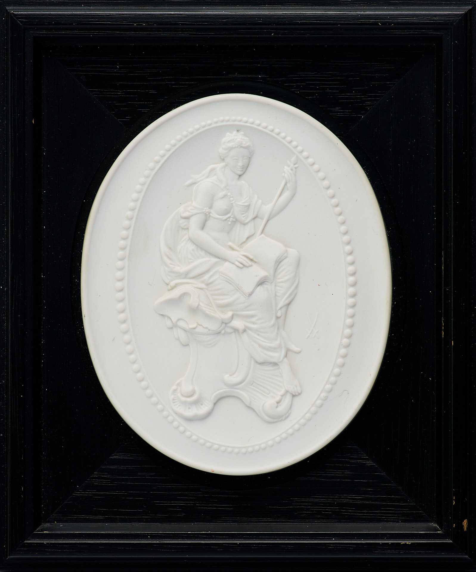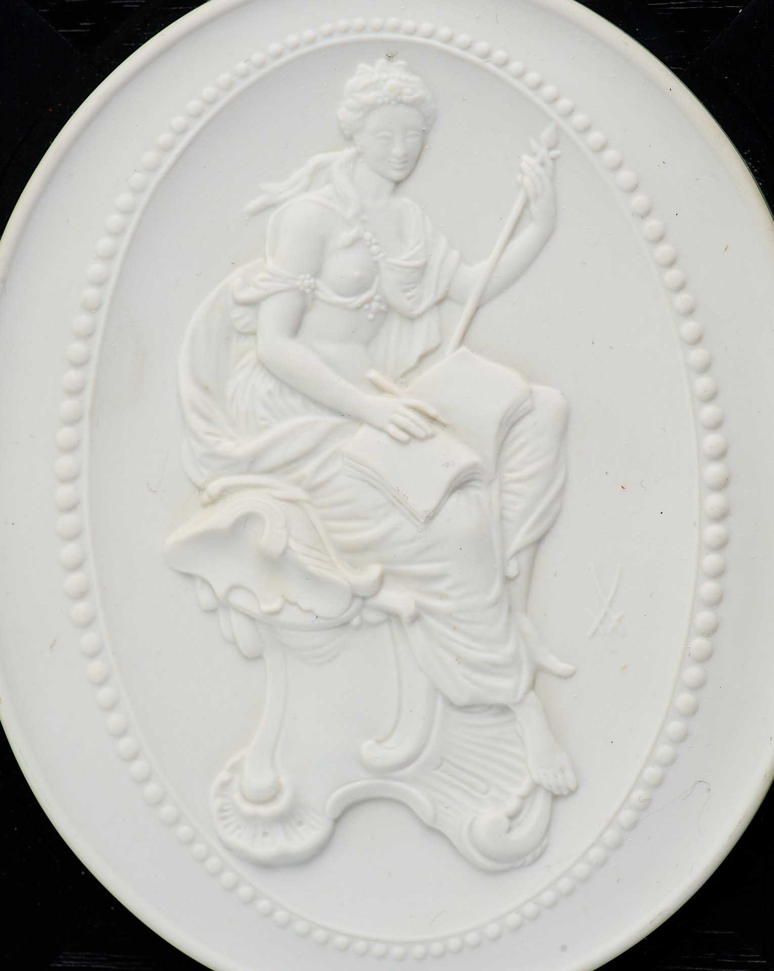 Скульптурный фарфоровый рельеф, изображающий древнегреческую Каллиопу, покровительницу эпической поэзии, науки и философии, скопированную со скульптуры, сделанной в 1745 г. Иоганном Иоахимом Кендлером, главным